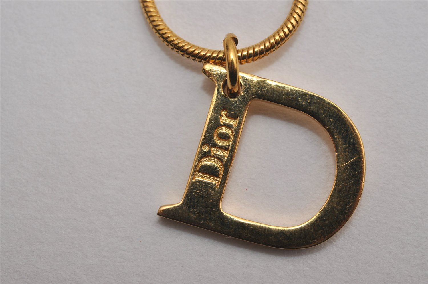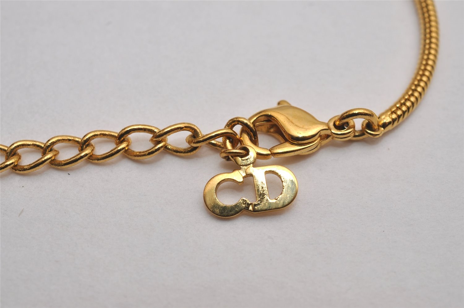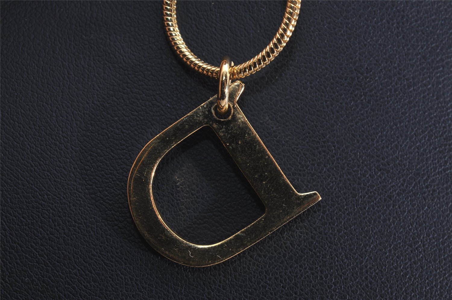 | Authentic Christian Dior Gold Tone Chain Pendant Necklace CD | |