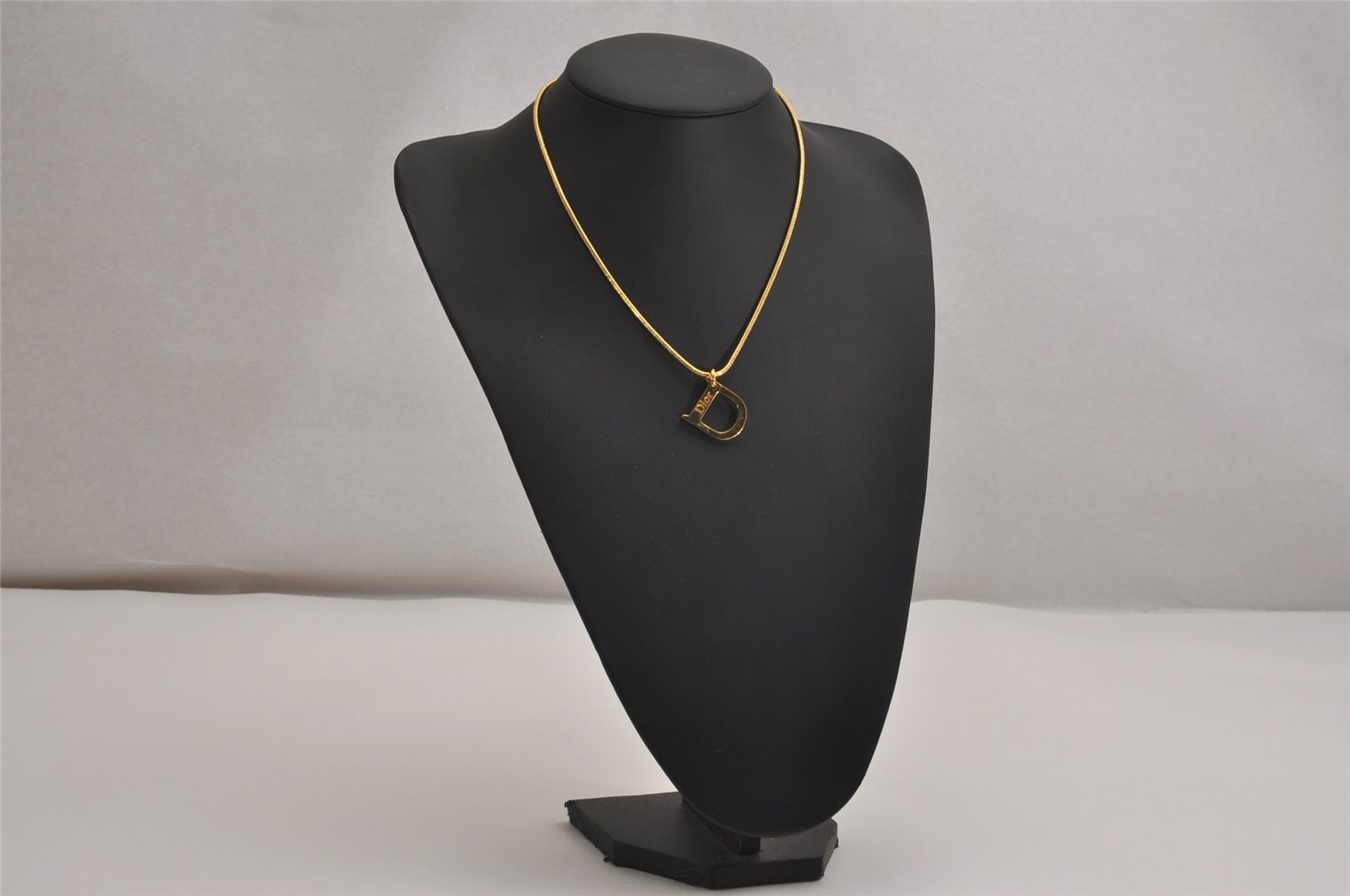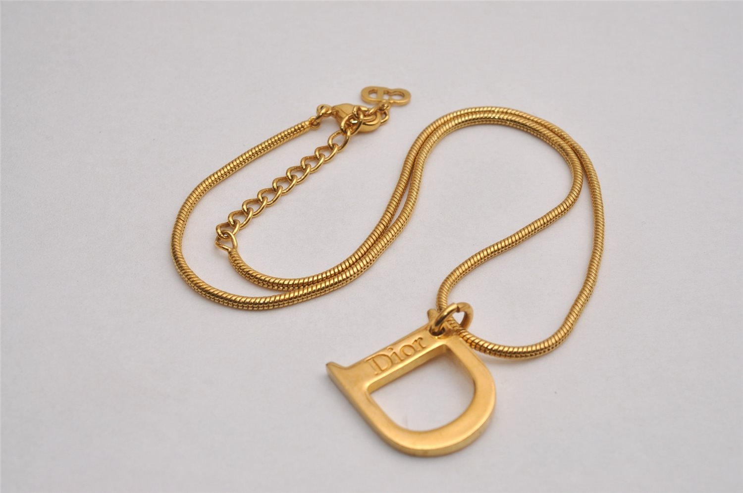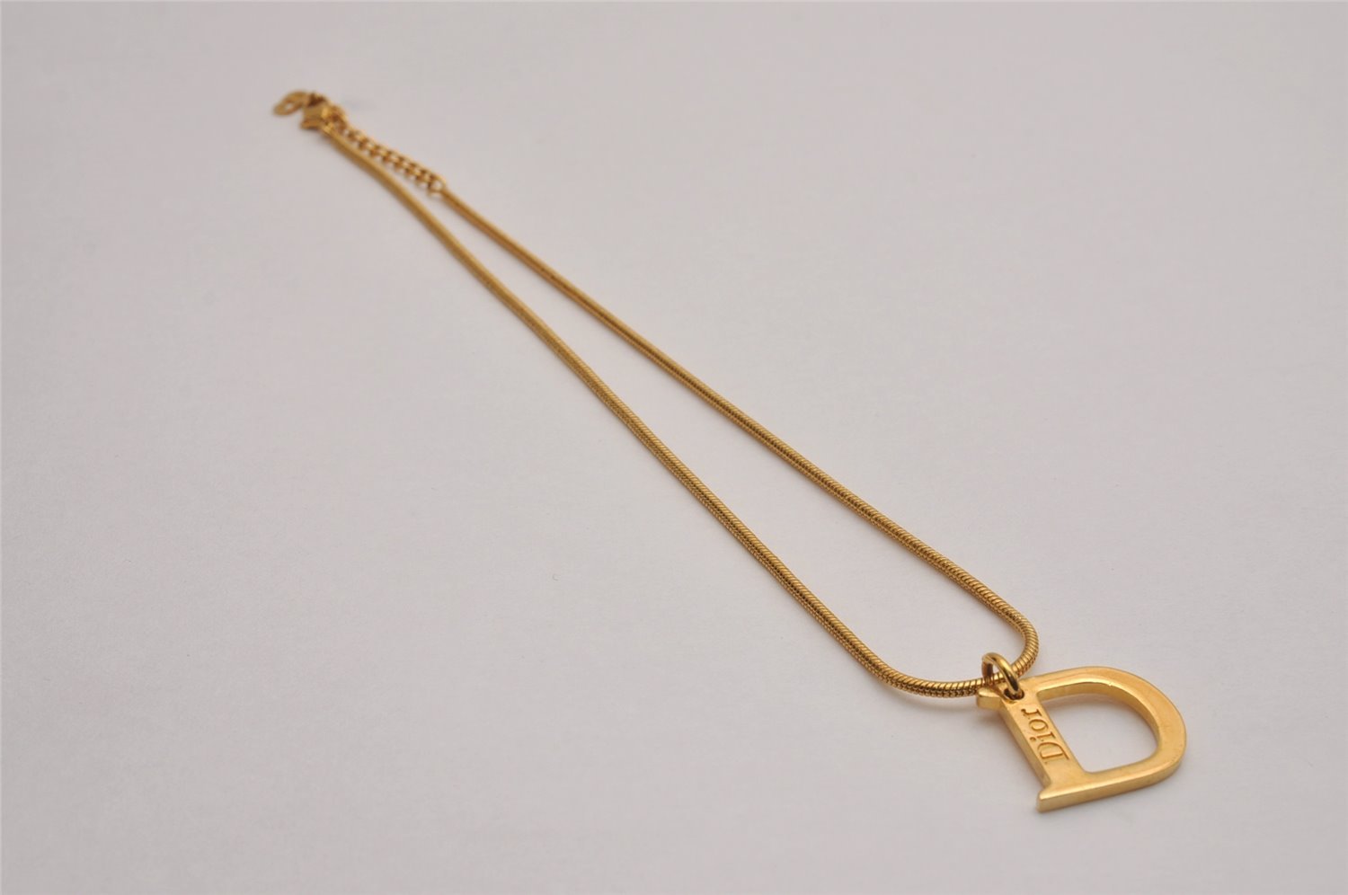 | Authentic Christian Dior Gold Tone Chain Pendant Necklace CD | |