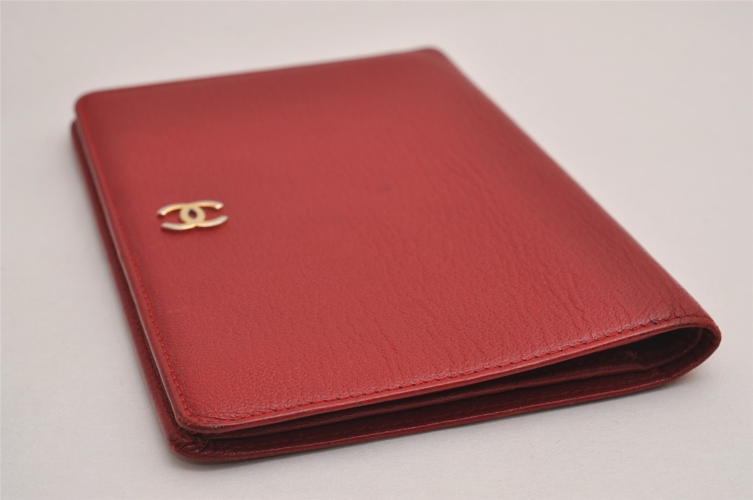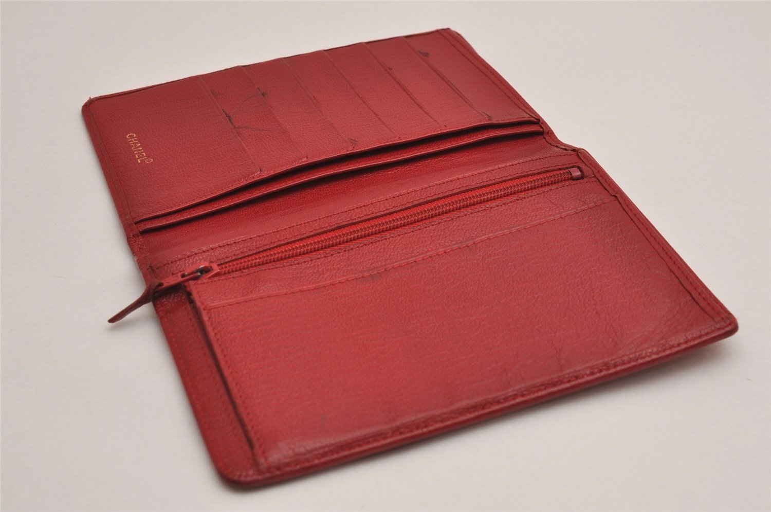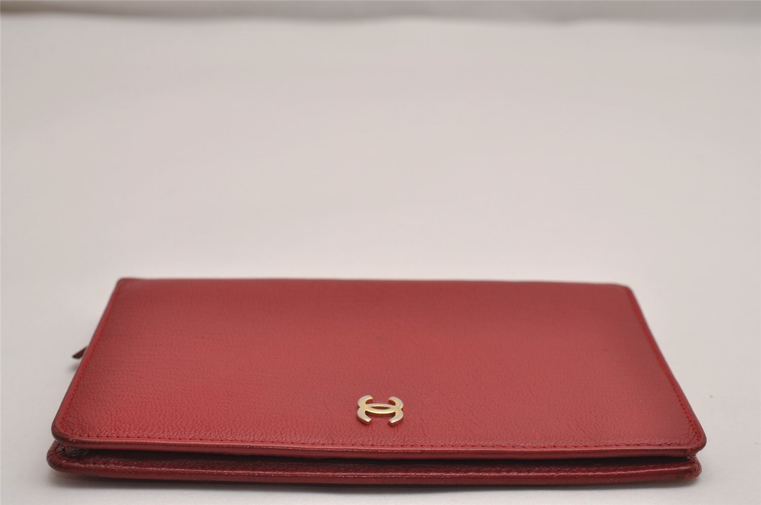 | Authentic CHANEL Vintage Calf Skin Bifold Wallet Purse Red CC Logo | |