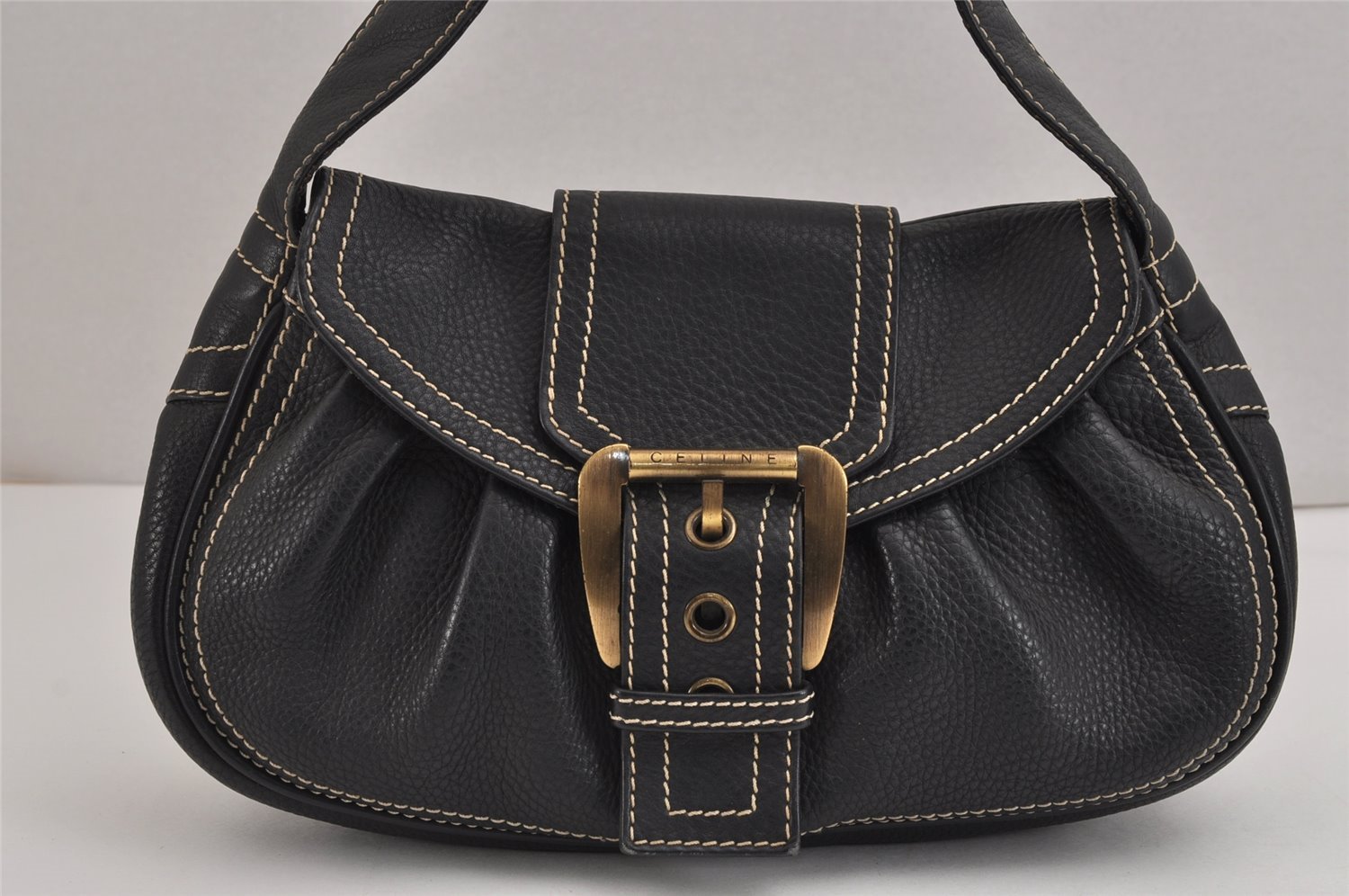 | Authentic CELINE Vintage Shoulder Hand Bag Purse Leather Black | |
