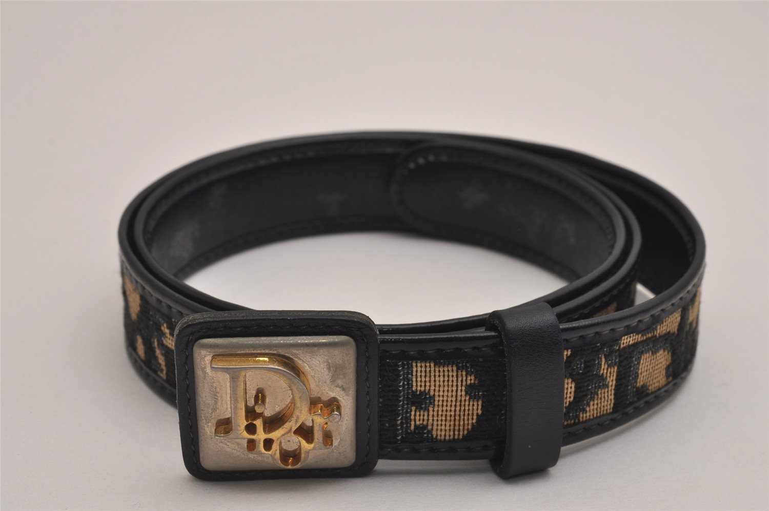 | Authentic Christian Dior Trotter Belt Canvas Leather 24.8-29.7" Black | |