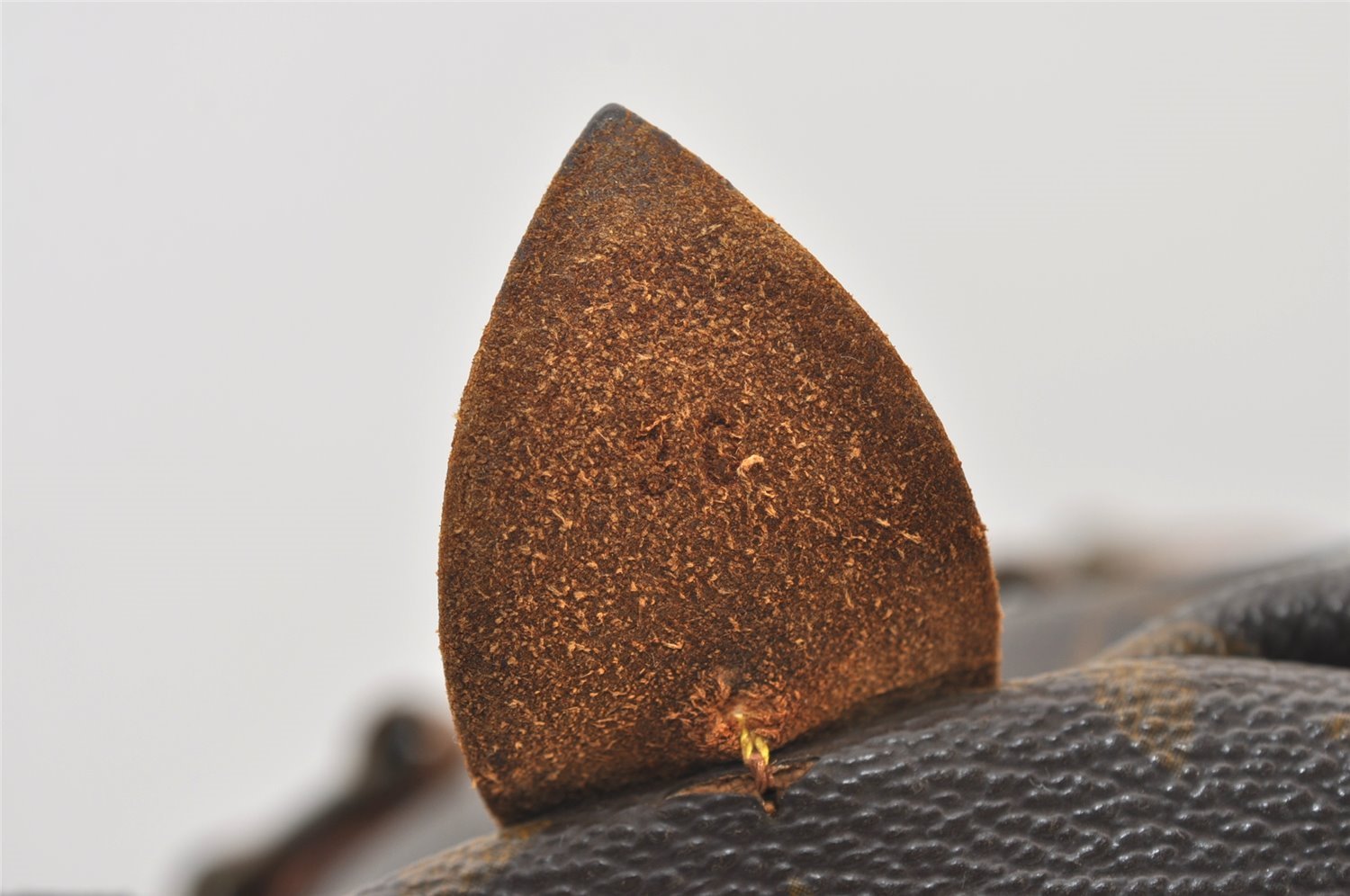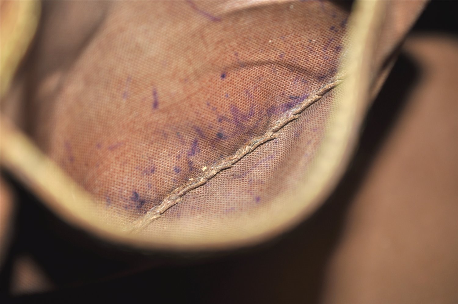 | Others | One part of the fabric on the inner side is torn and frayed.Inside pocket edge leather is a little torn.One part of the leather is heavily suntanned and get stiff.Inside pocket of the bag has a little pen trace. |