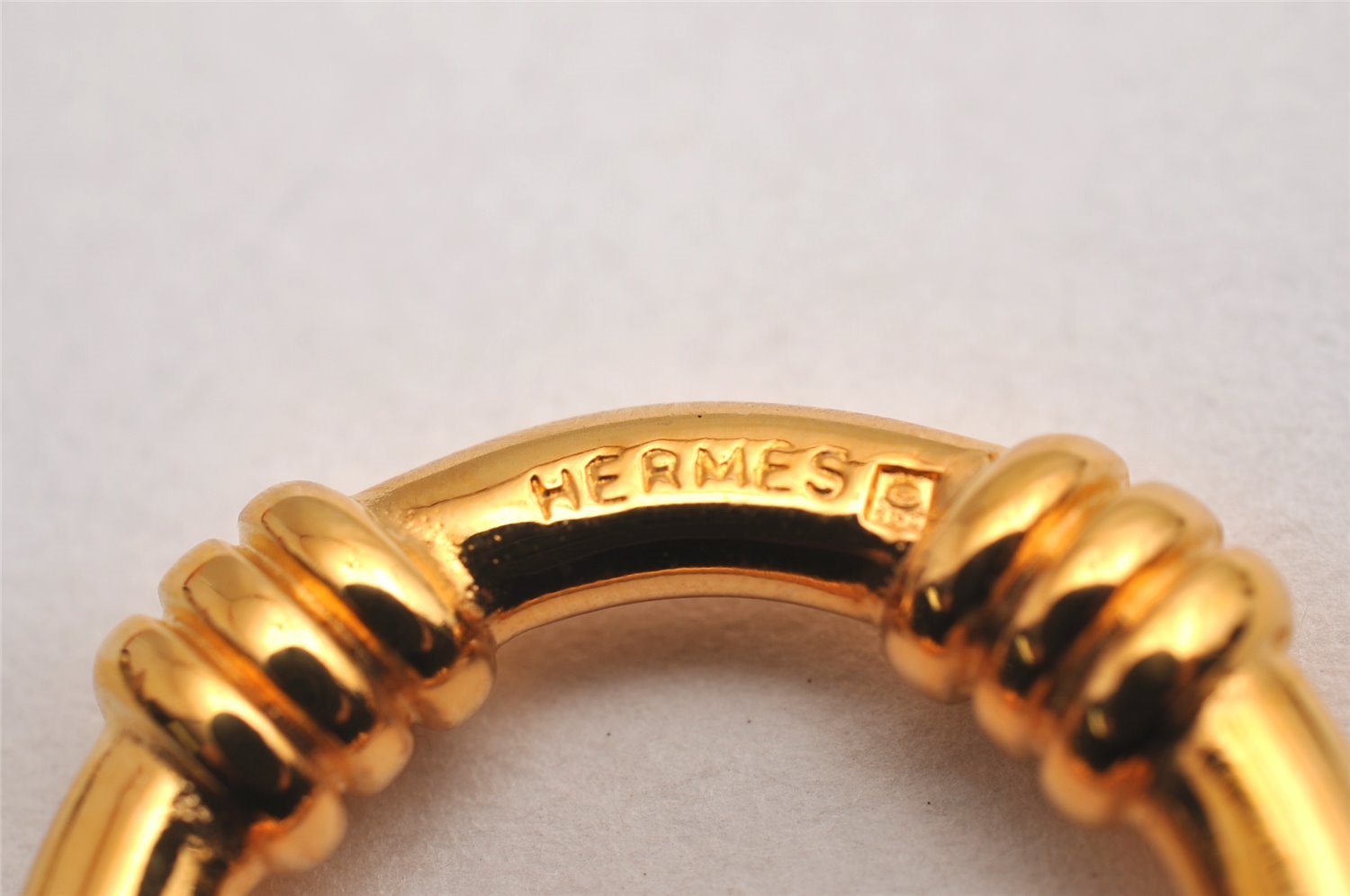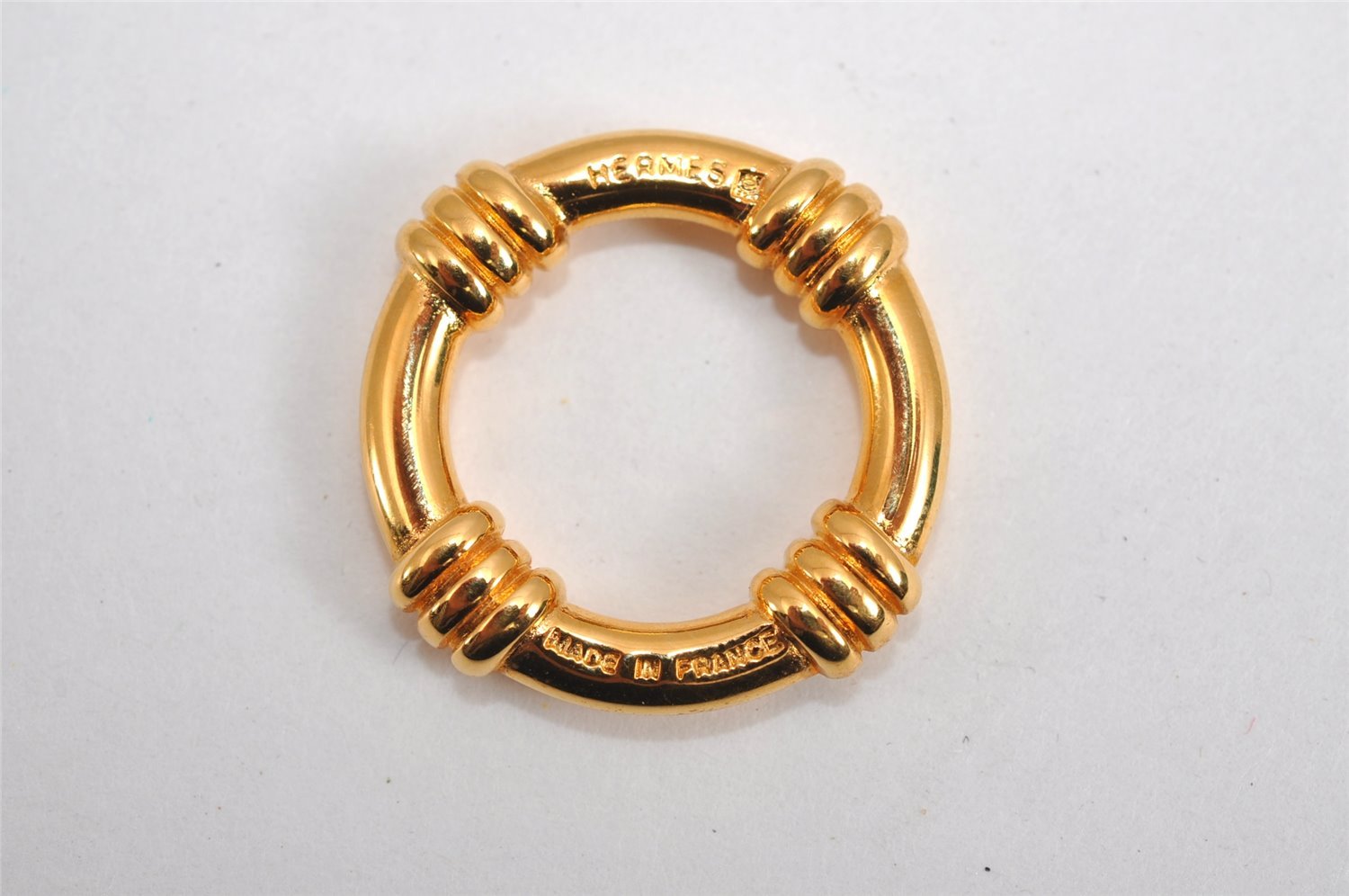 | Authentic HERMES Scarf Ring Bouee Circle Design Gold Tone Box | |