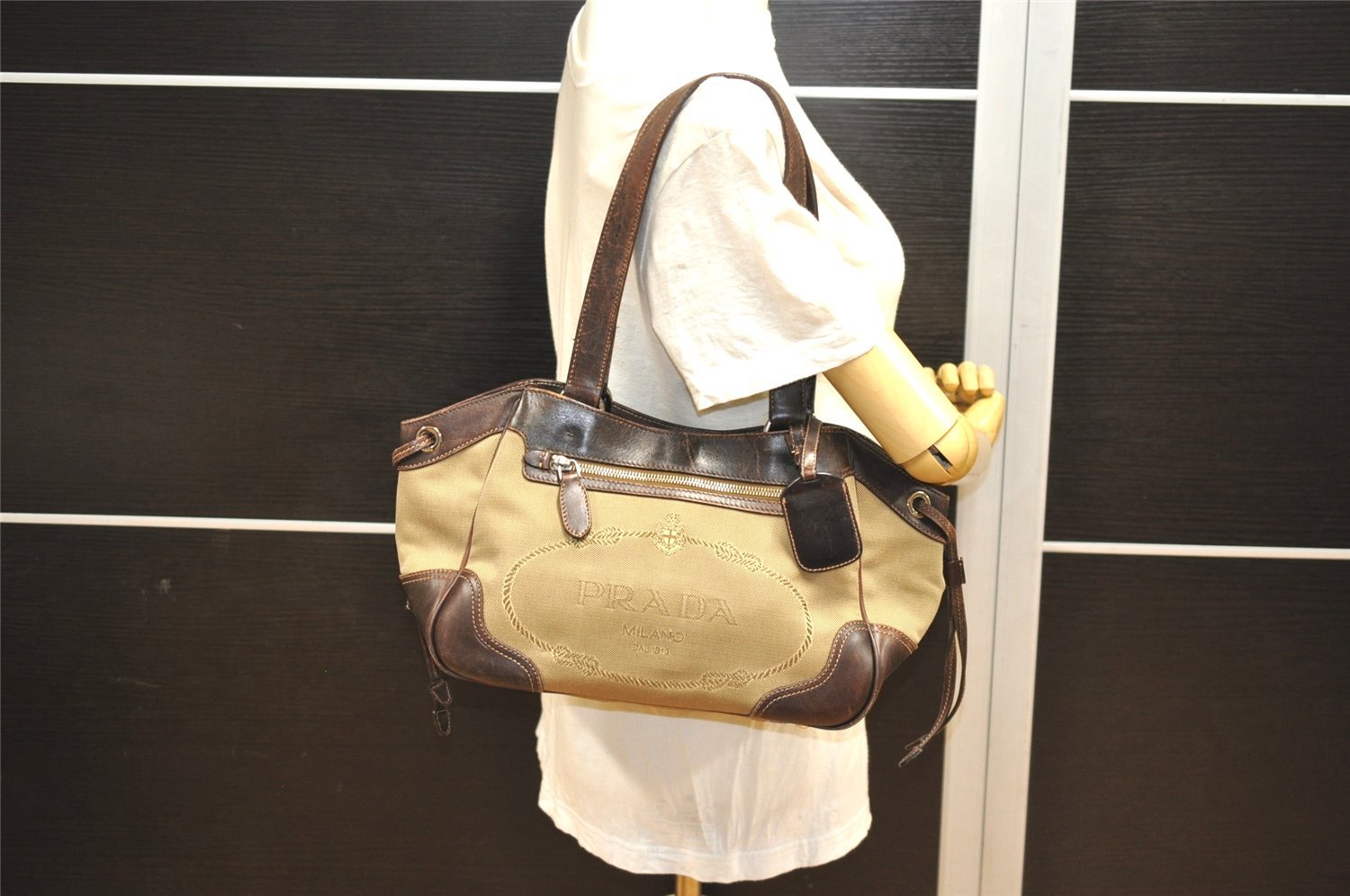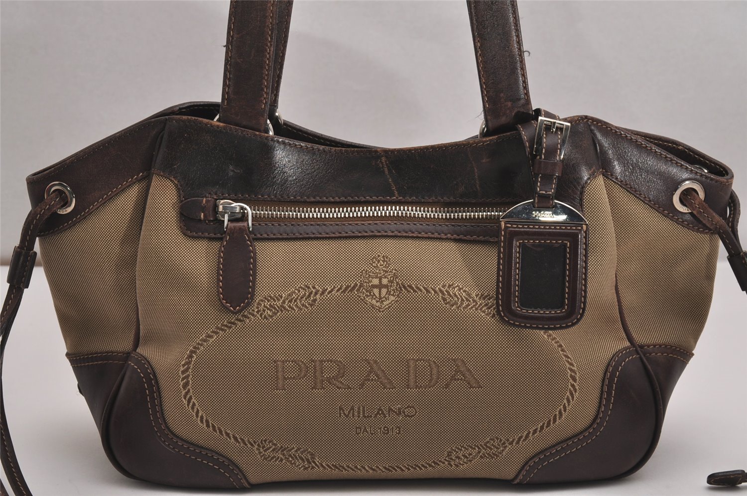 | Authentic PRADA Canvas Leather Shoulder Hand Bag Purse Brown | |
