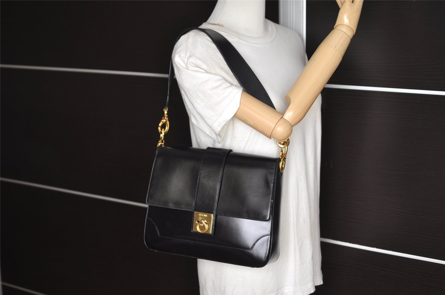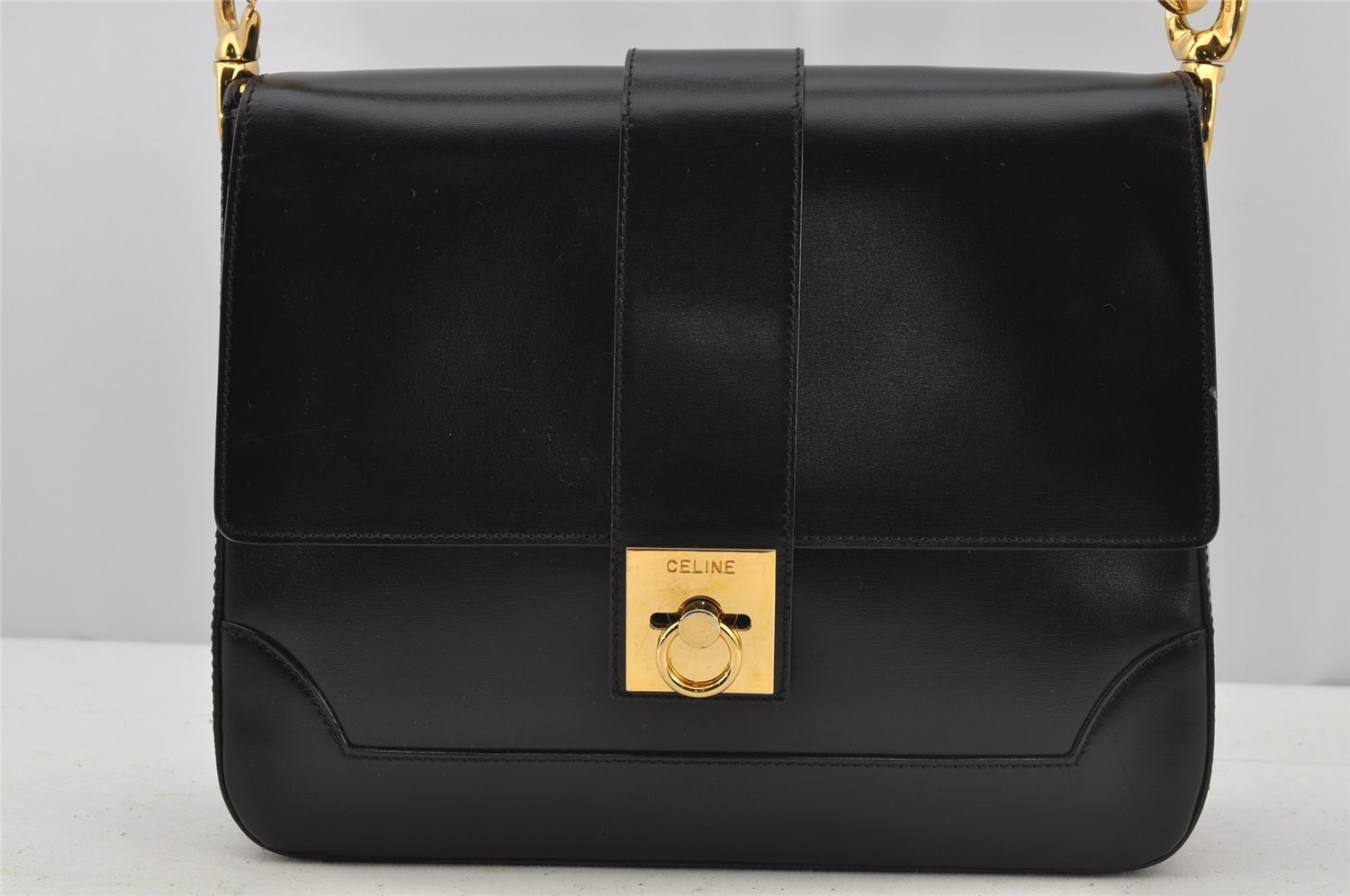| Authentic CELINE Vintage Shoulder Hand Bag Purse Leather Black | |