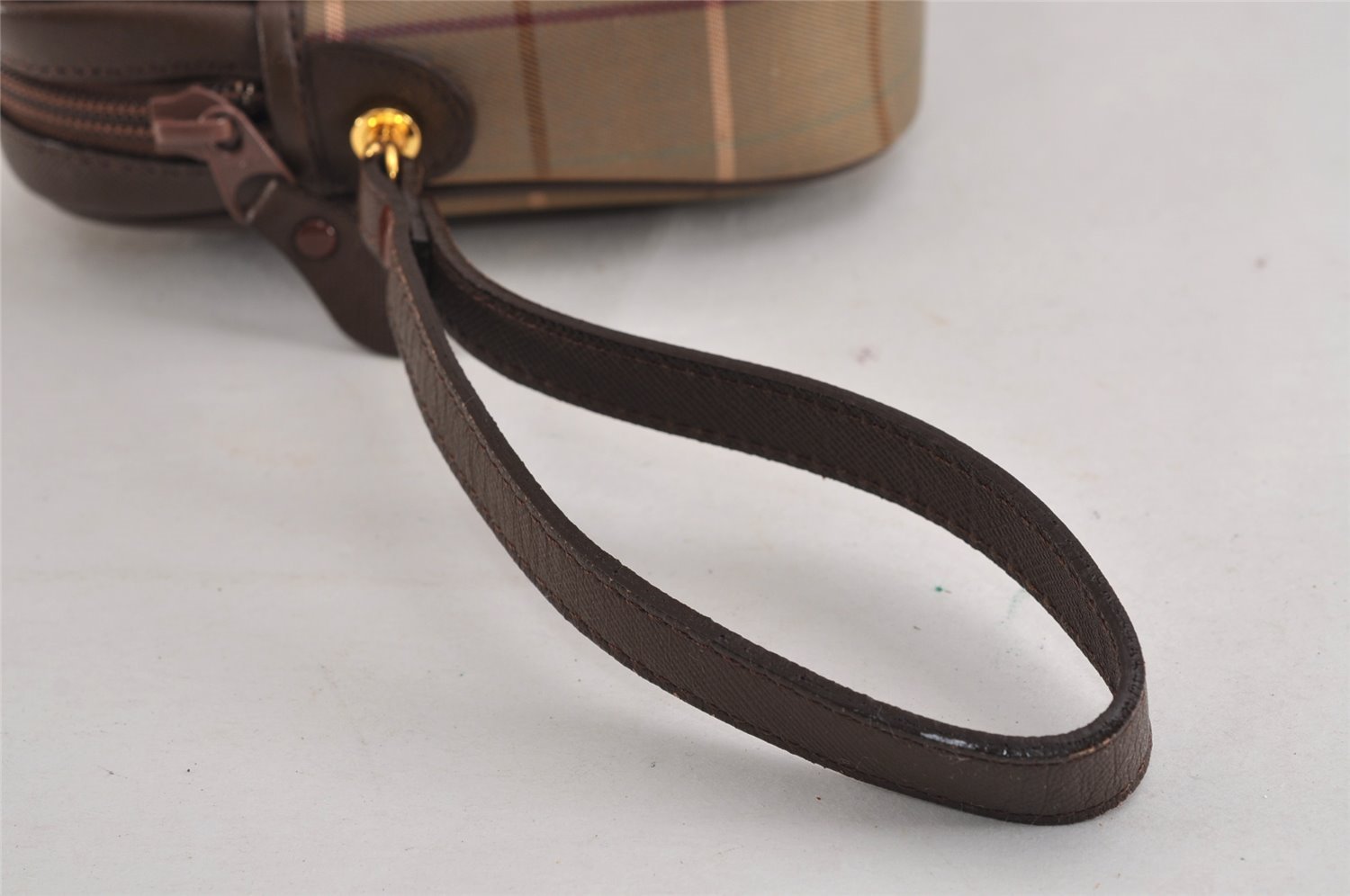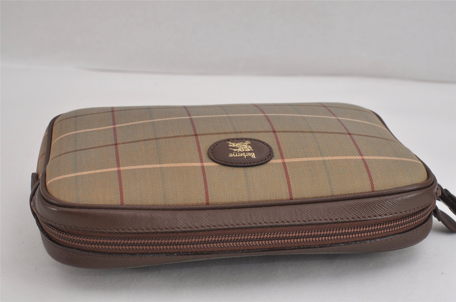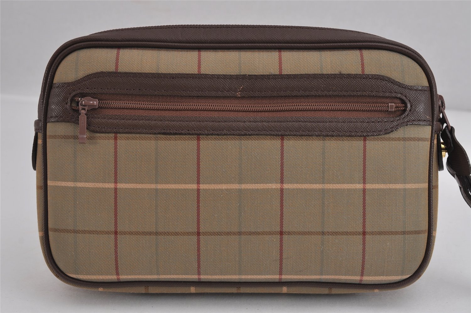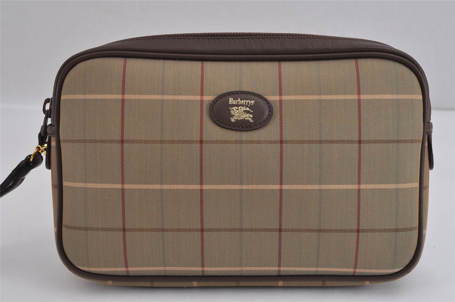 | Authentic Burberrys Vintage Check Canvas Leather Clutch Hand Bag Khaki | |