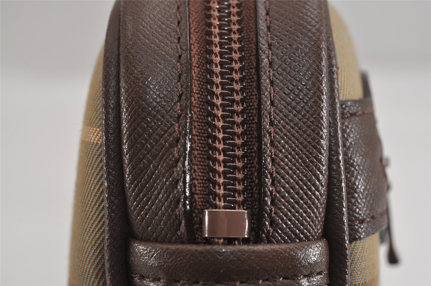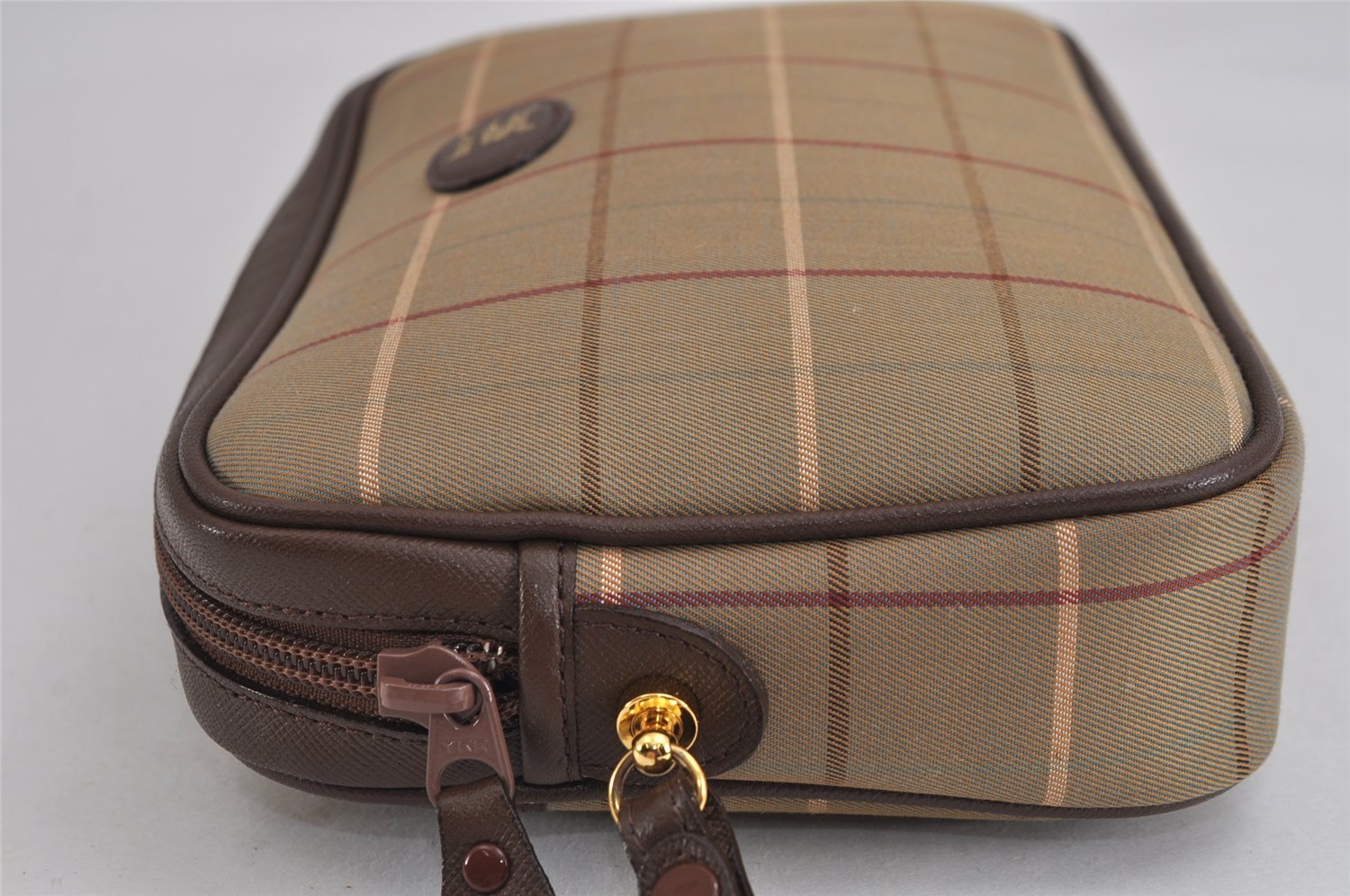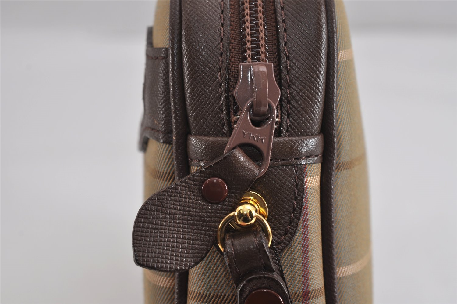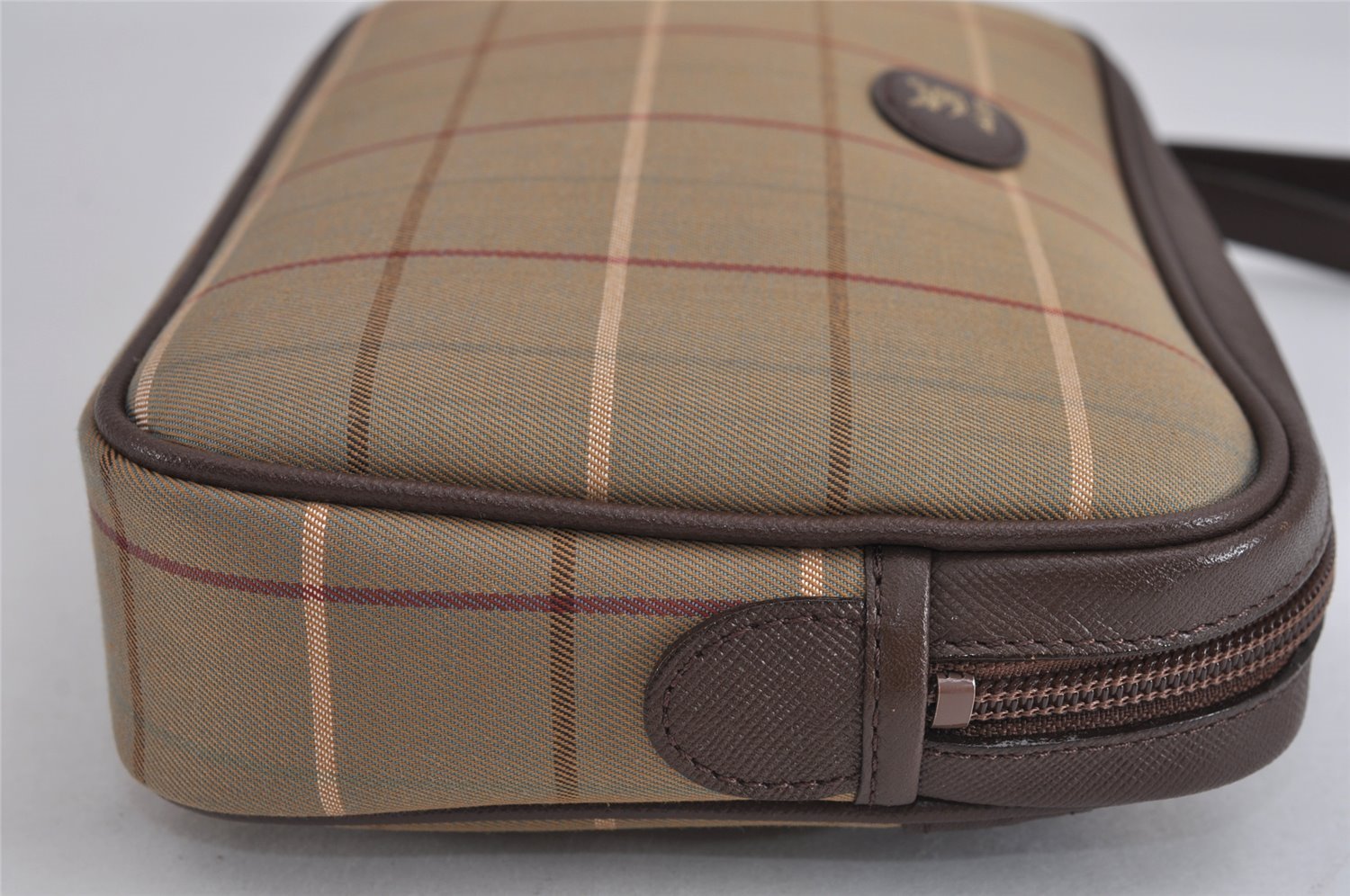 | Authentic Burberrys Vintage Check Canvas Leather Clutch Hand Bag Khaki | |