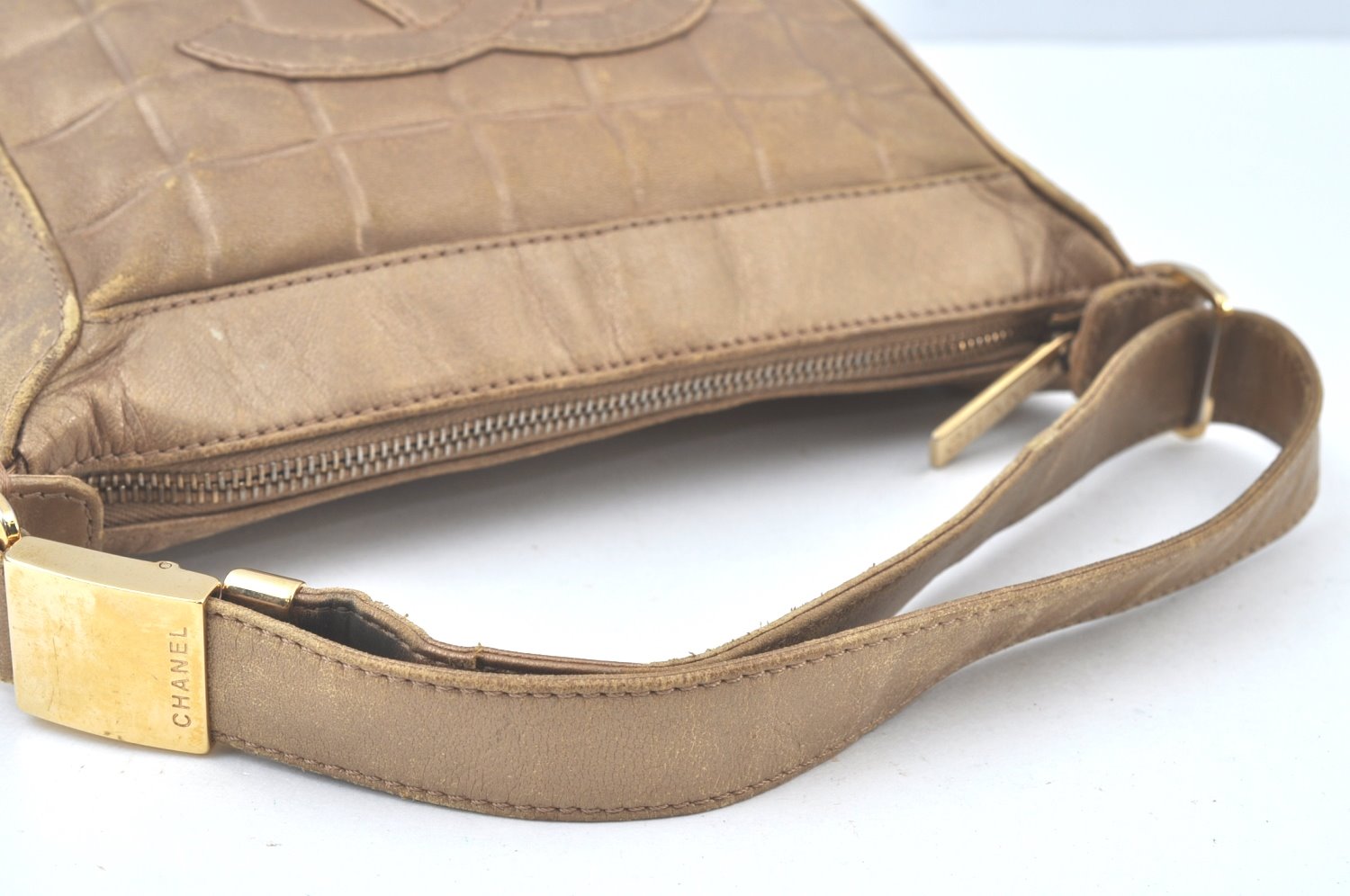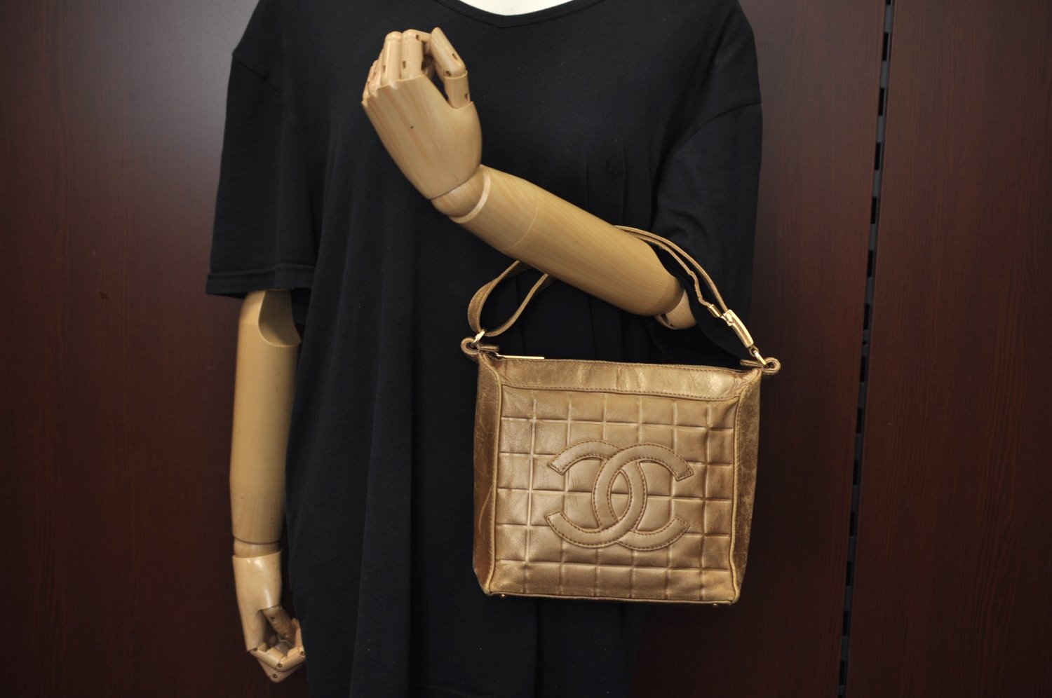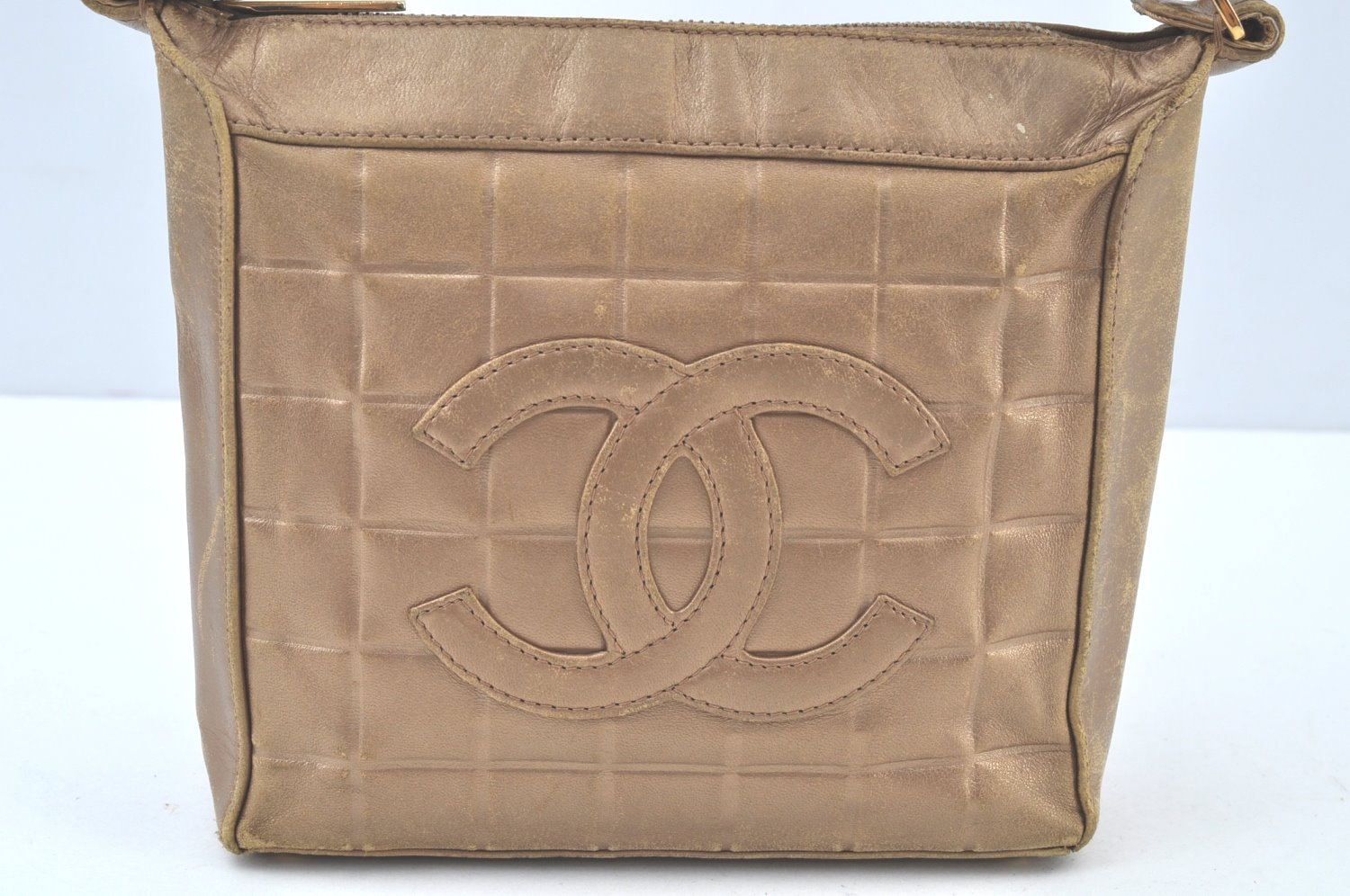 | Authentic CHANEL Chocolate Bar Calf Skin CC Logo Shoulder Hand Bag Gold | |