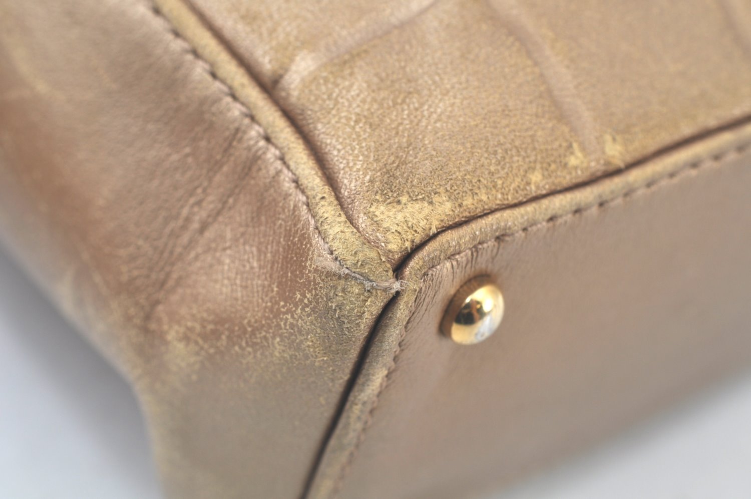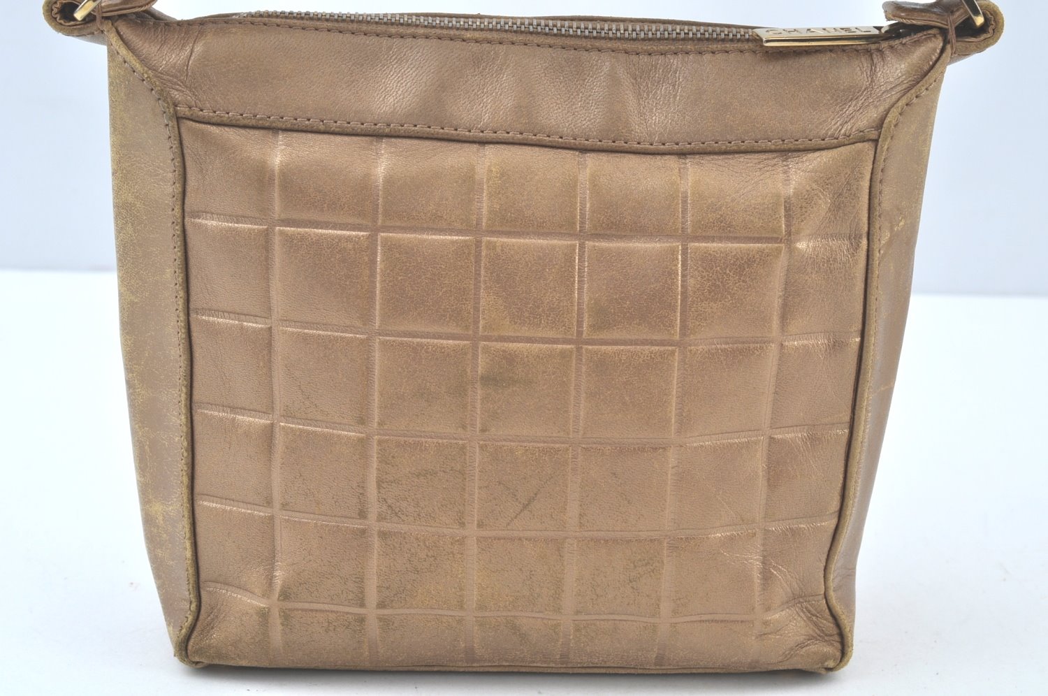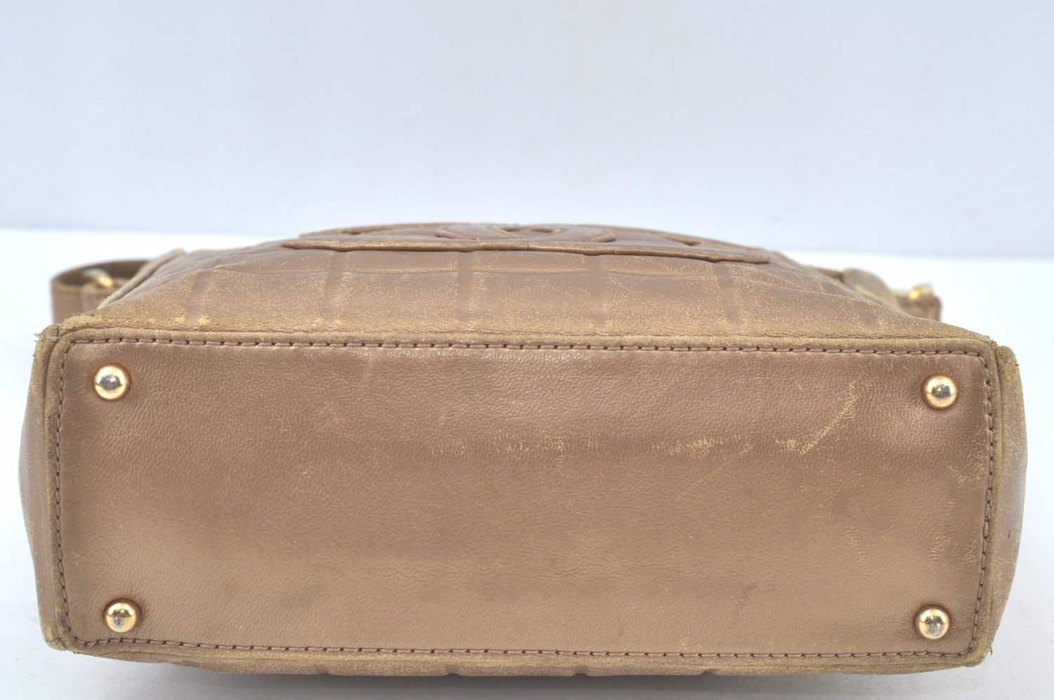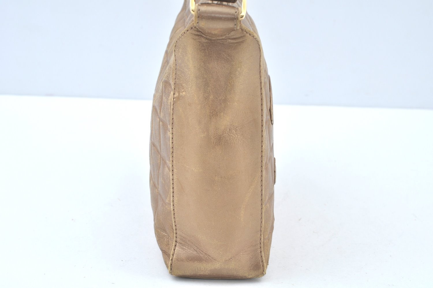 | Authentic CHANEL Chocolate Bar Calf Skin CC Logo Shoulder Hand Bag Gold | |