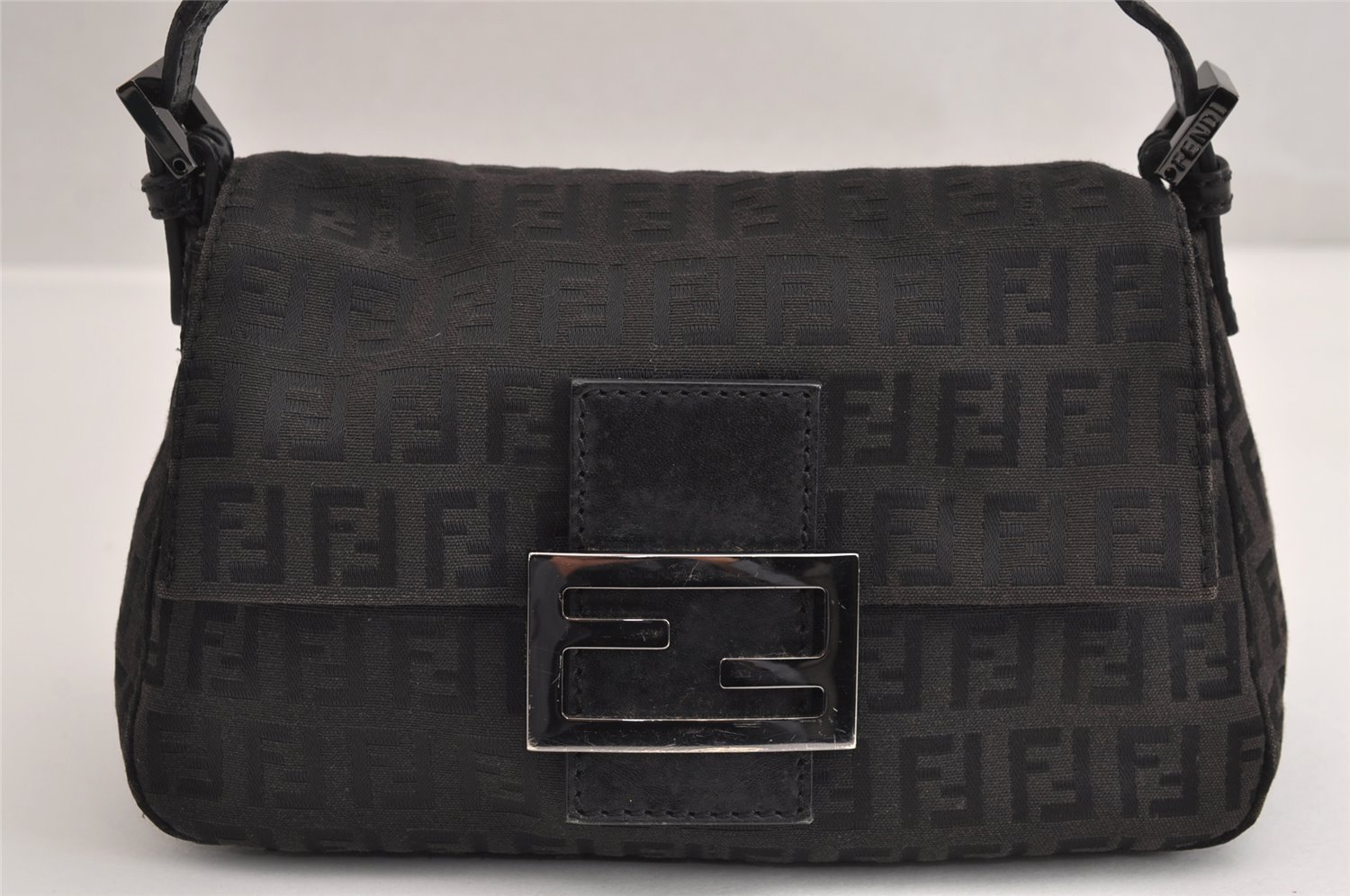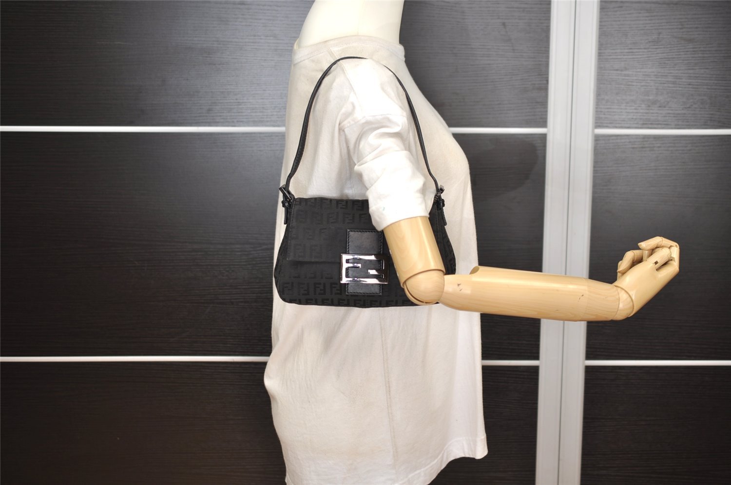 | Authentic FENDI Zucchino Mamma Baguette Shoulder Bag Canvas Leather Black | |