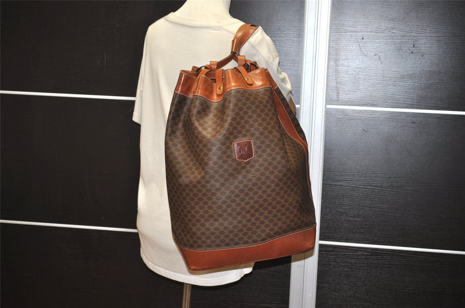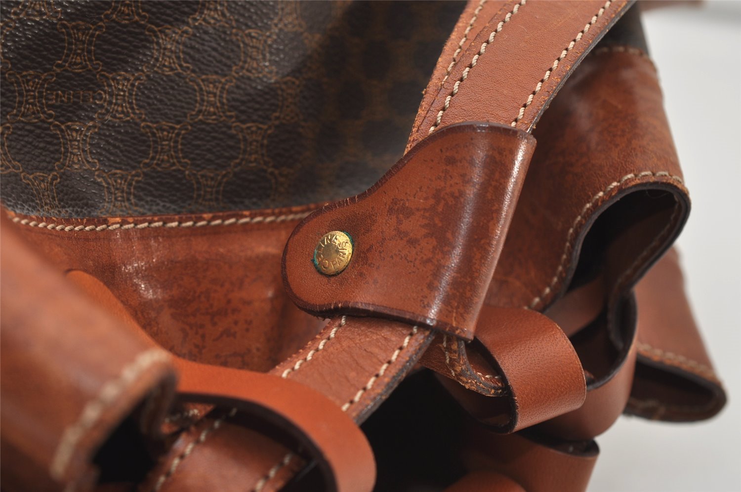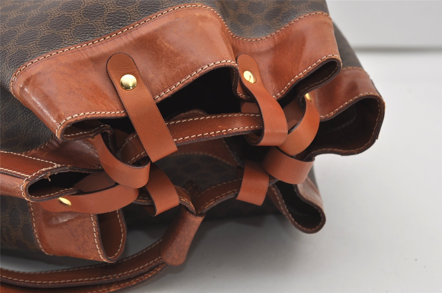 | Authentic CELINE Macadam Blason Pattern Drawstring bag PVC Leather Brown | |