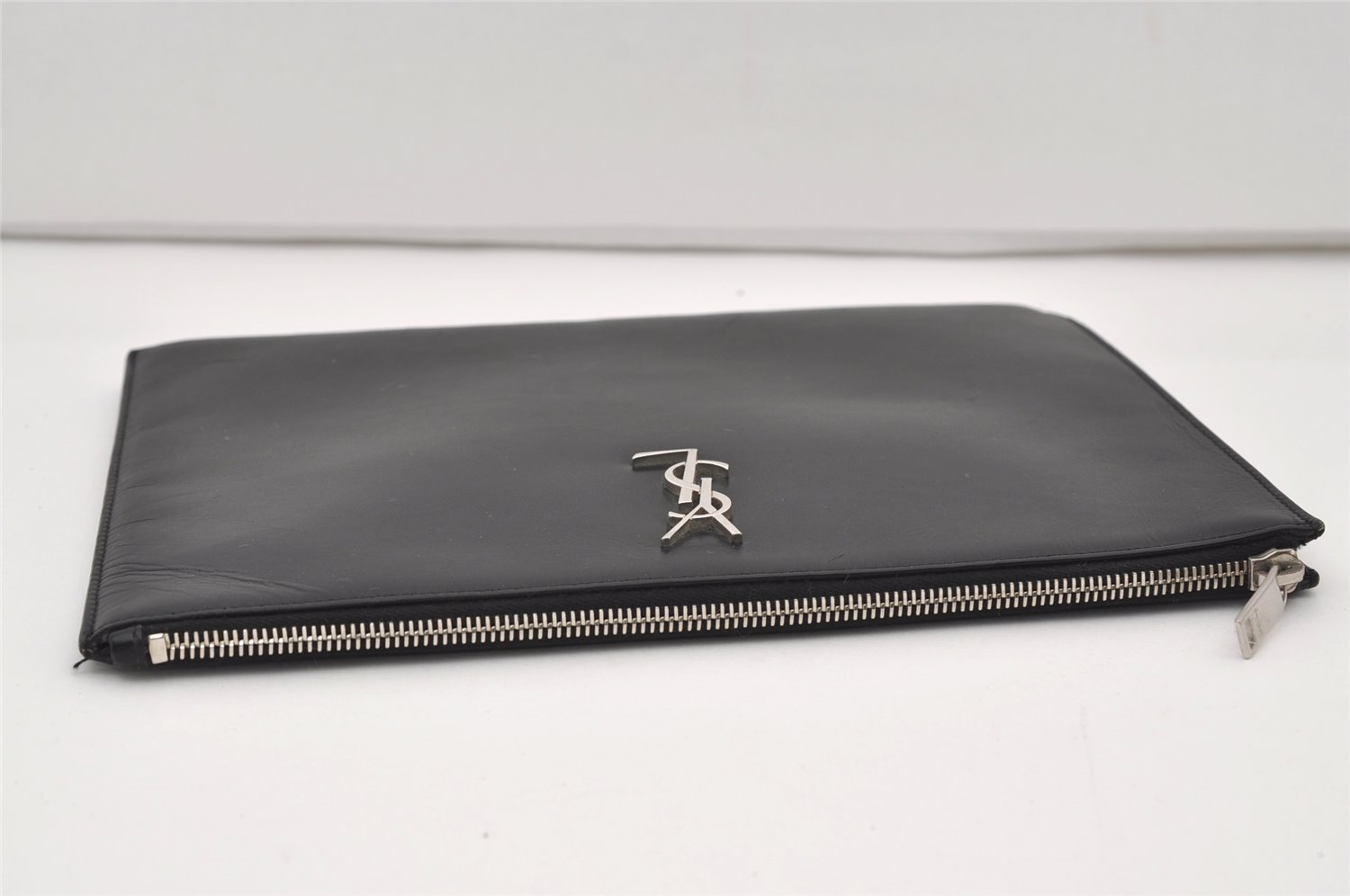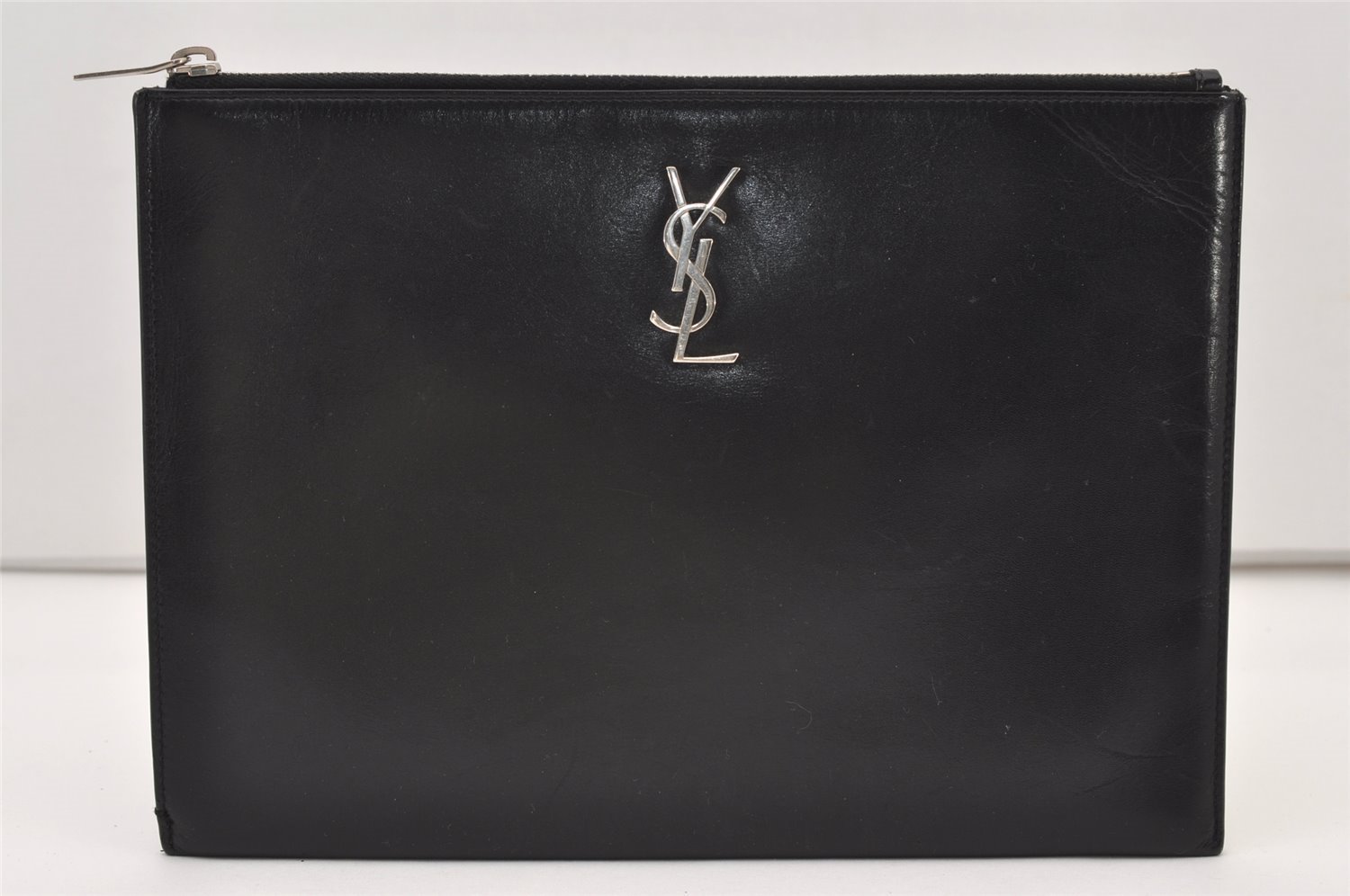 | Authentic YVES SAINT LAURENT Clutch Hand Bag Purse Leather ALM453249 Black | |