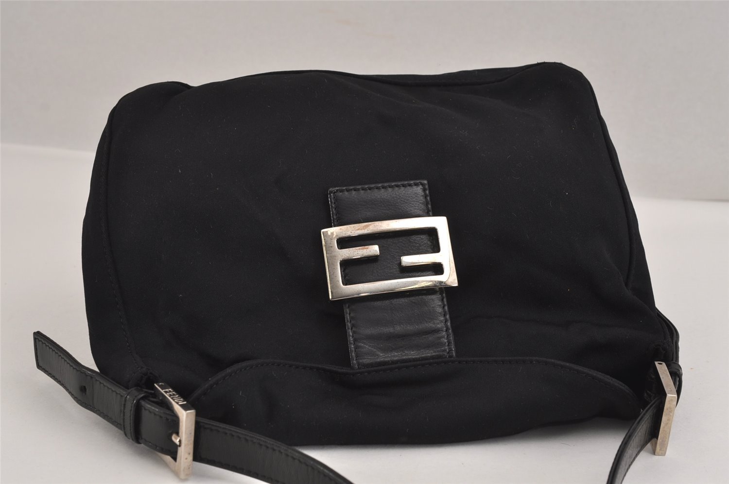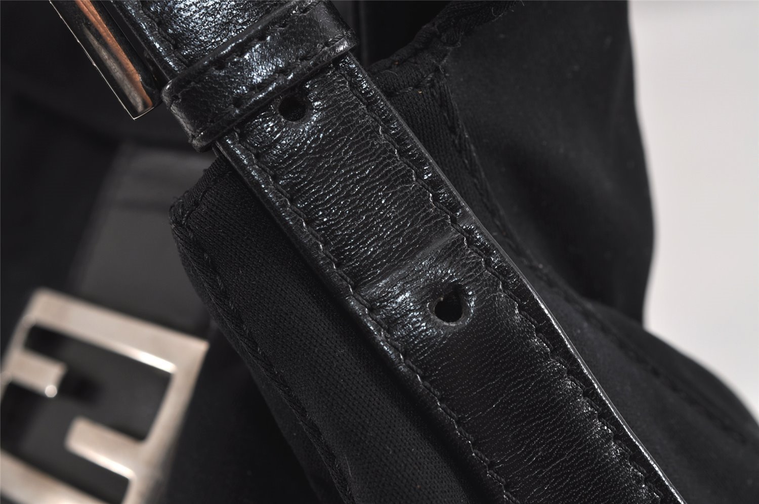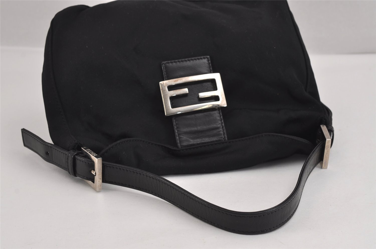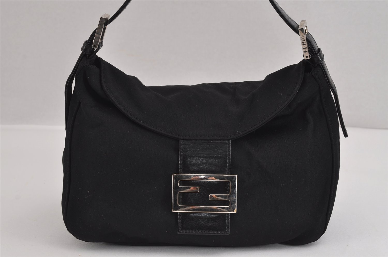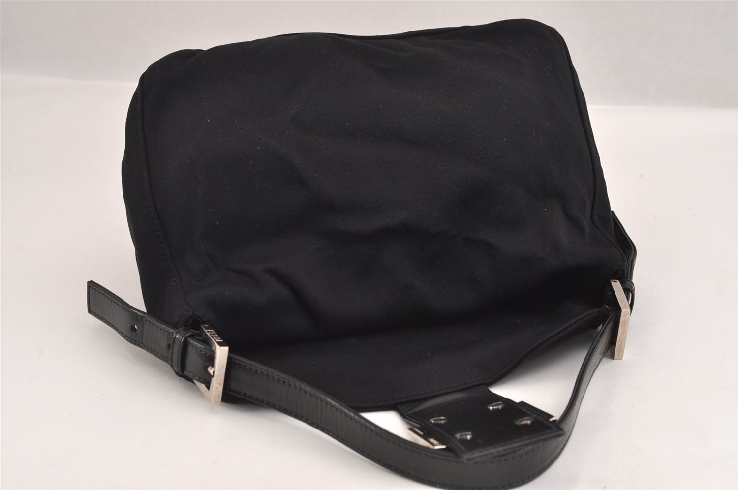 | Authentic FENDI Vintage Shoulder Hand Bag Purse Jersey Leather Black Junk | |