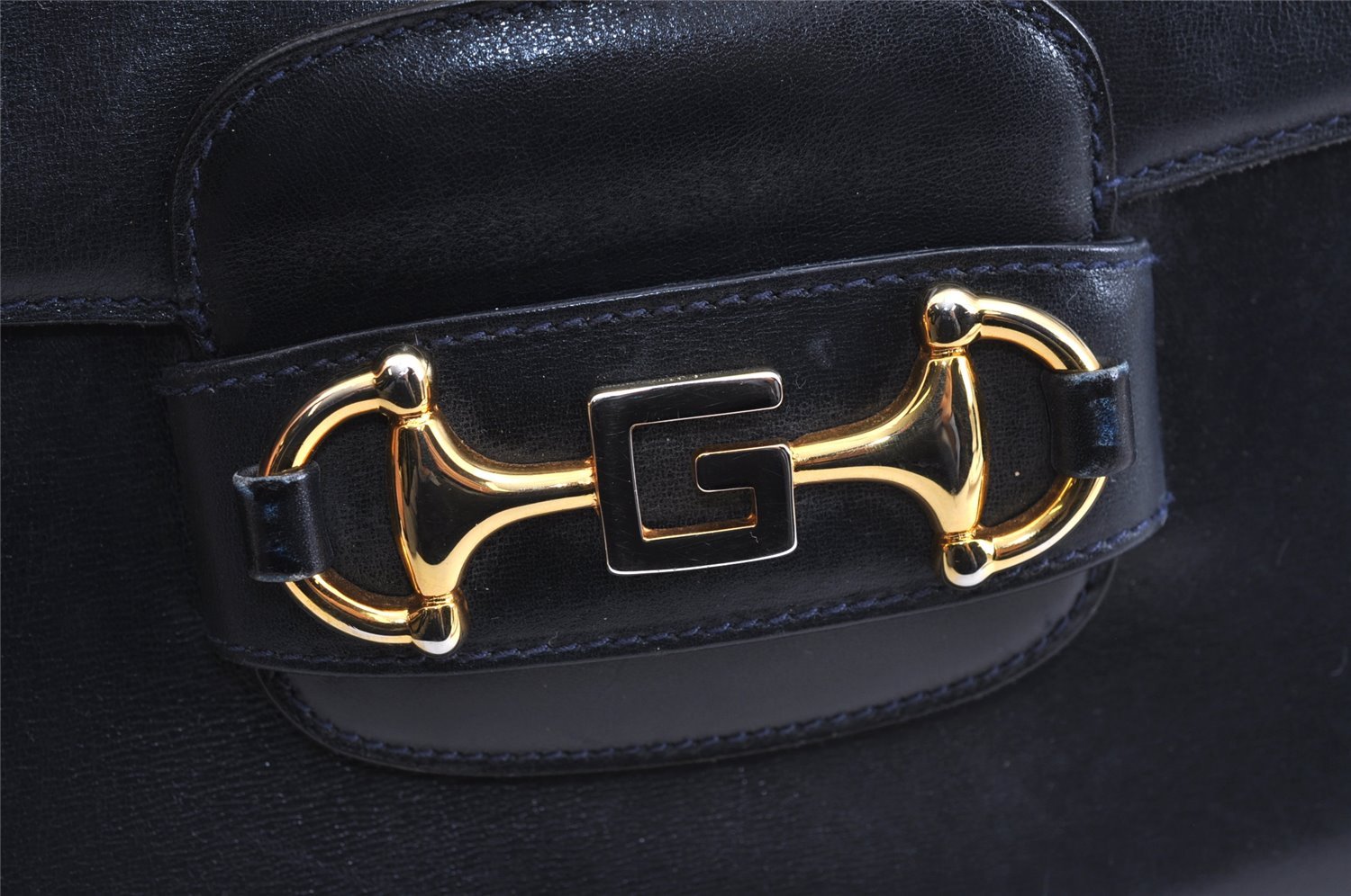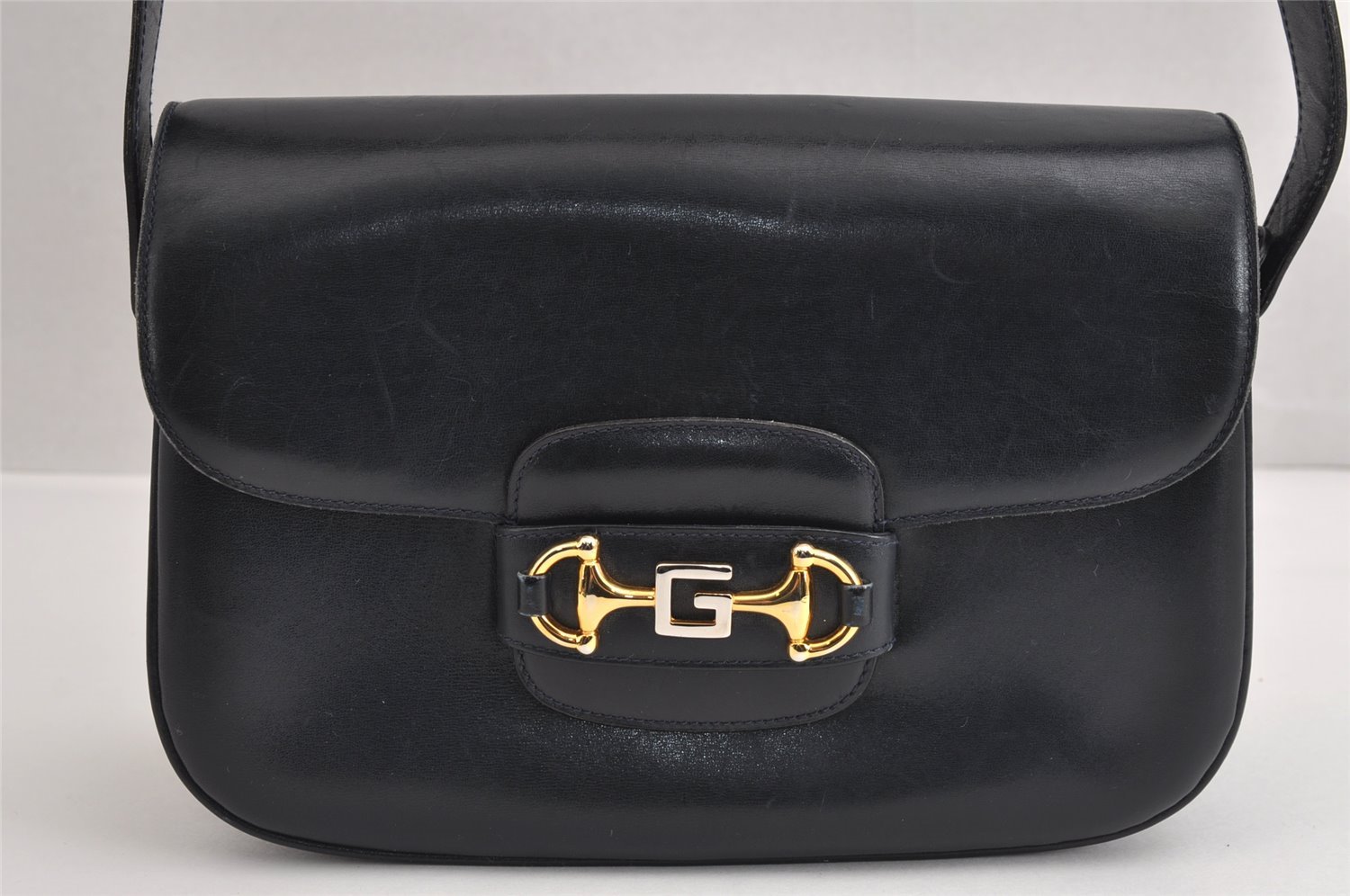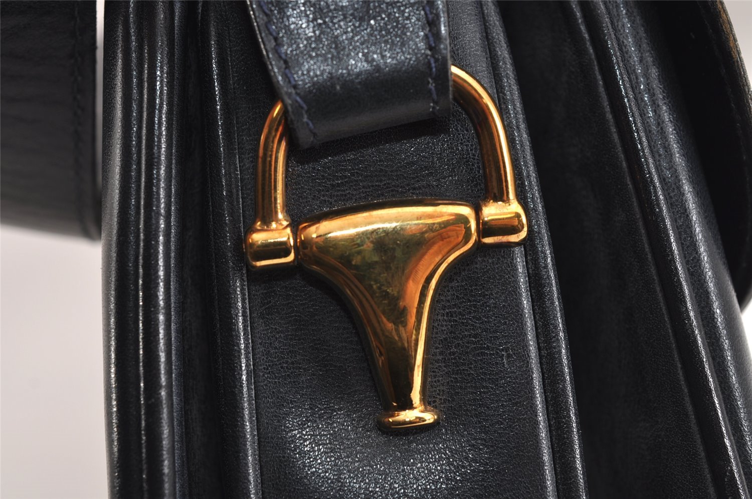 | Authentic GUCCI Horsebit Shoulder Cross Body Bag Purse Leather Navy Blue | |