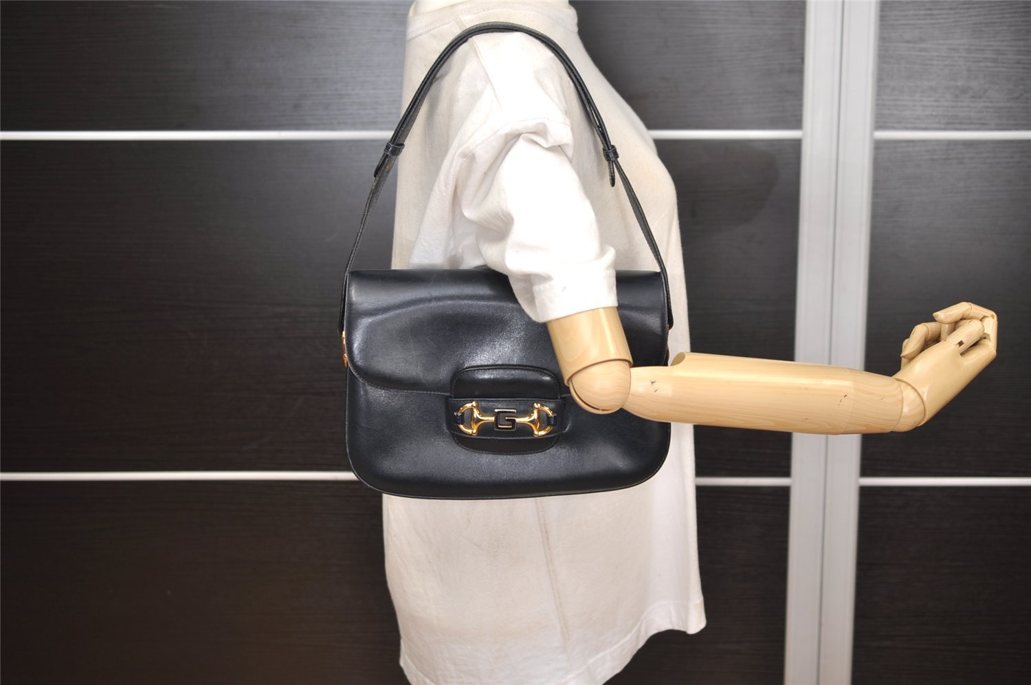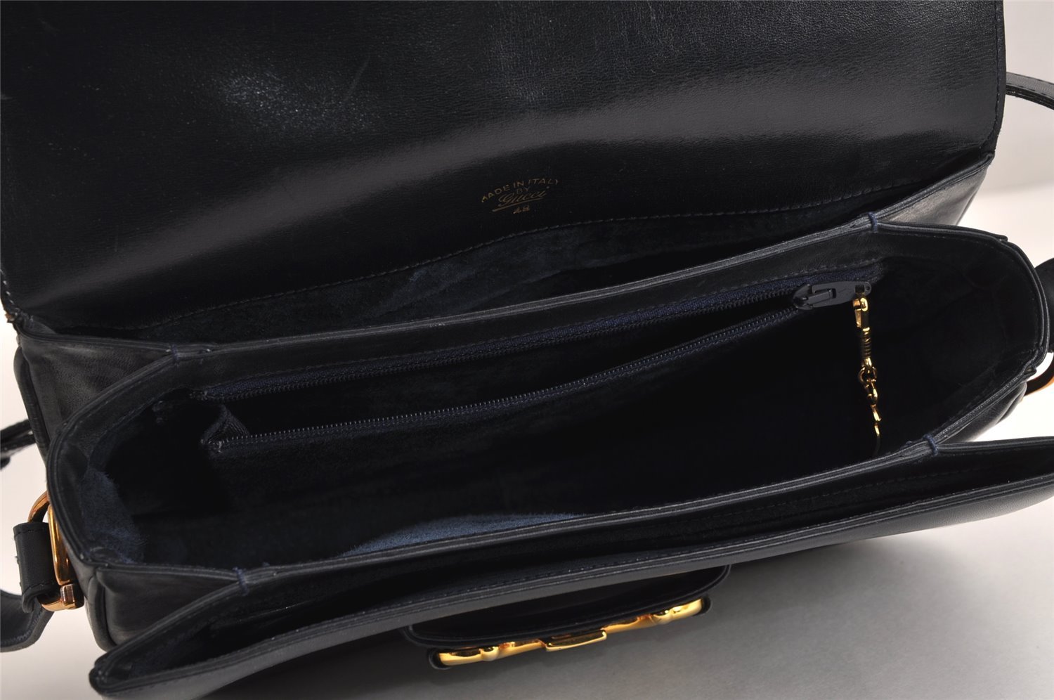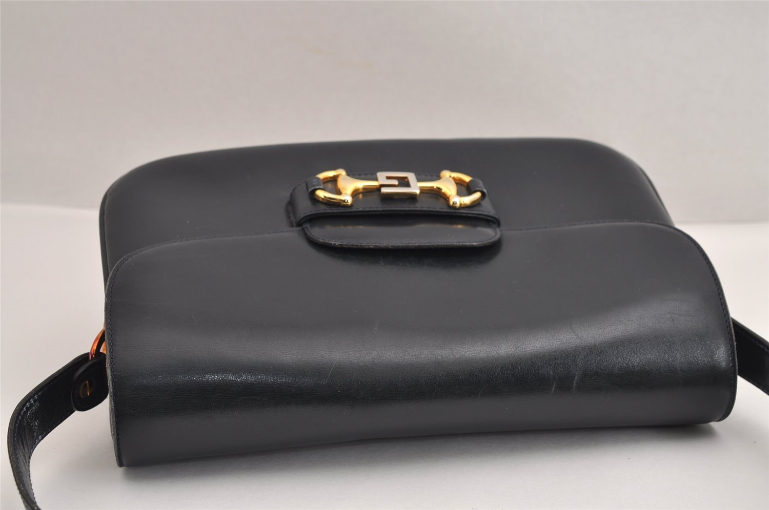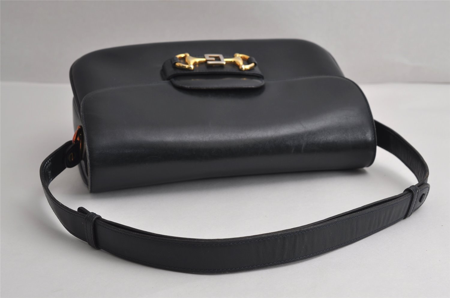 | Authentic GUCCI Horsebit Shoulder Cross Body Bag Purse Leather Navy Blue | |