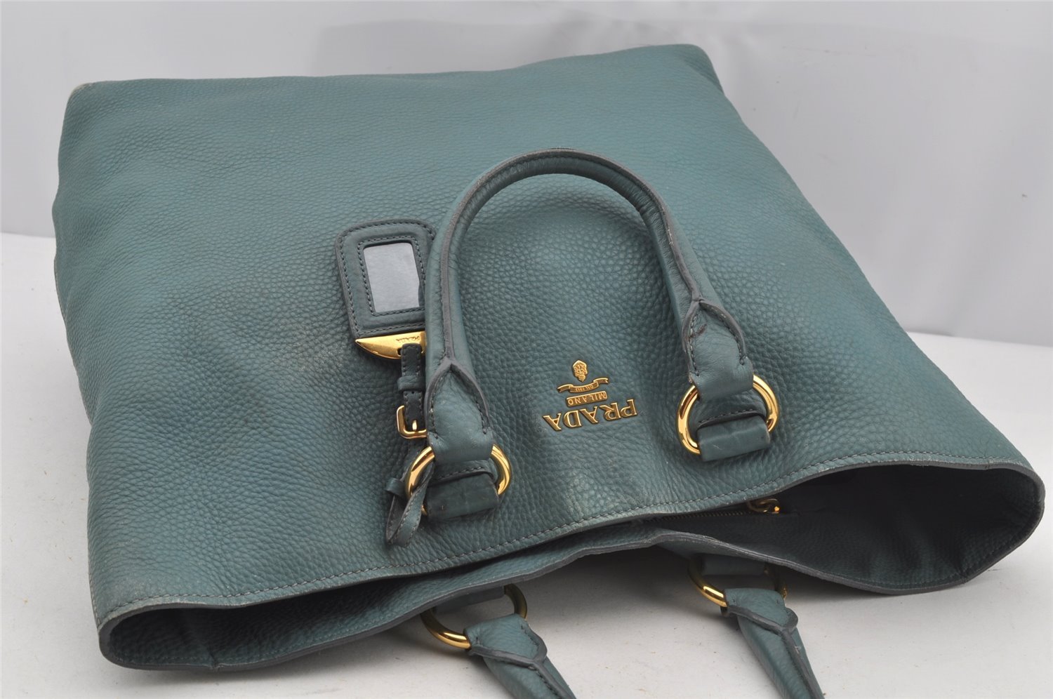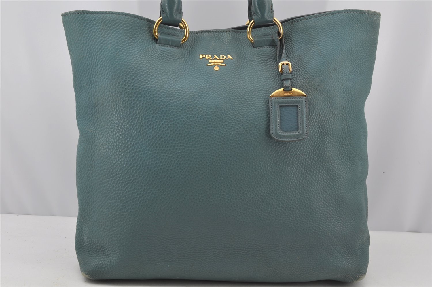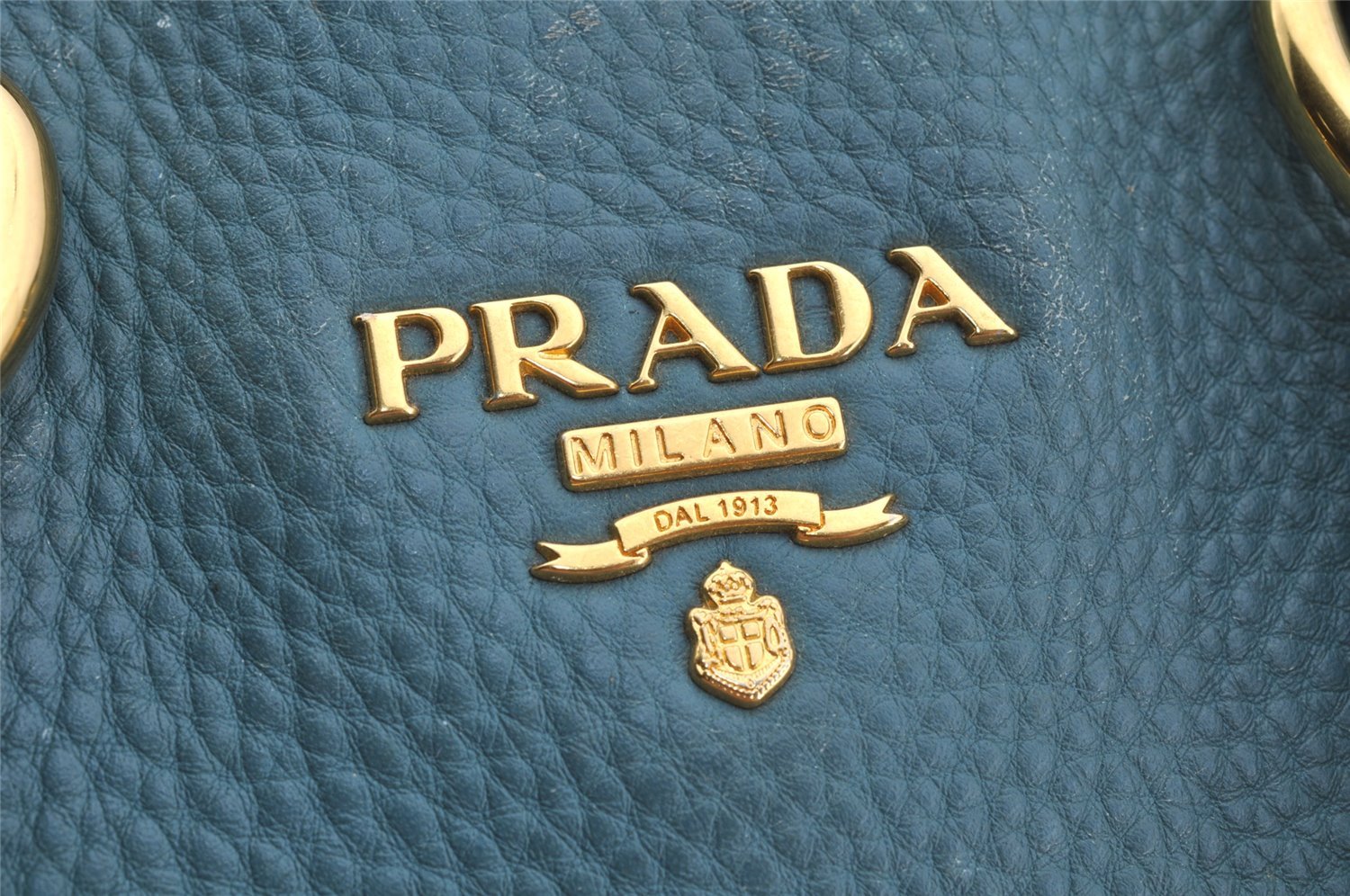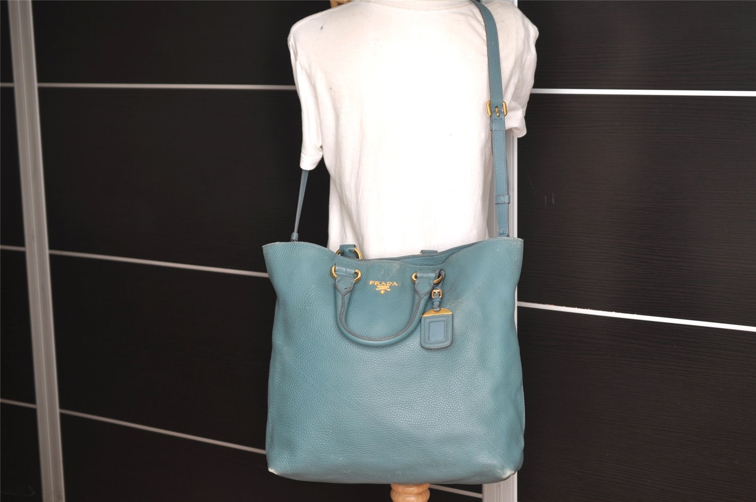 | Authentic PRADA Vintage Leather 2Way Shoulder Tote Bag Blue | |