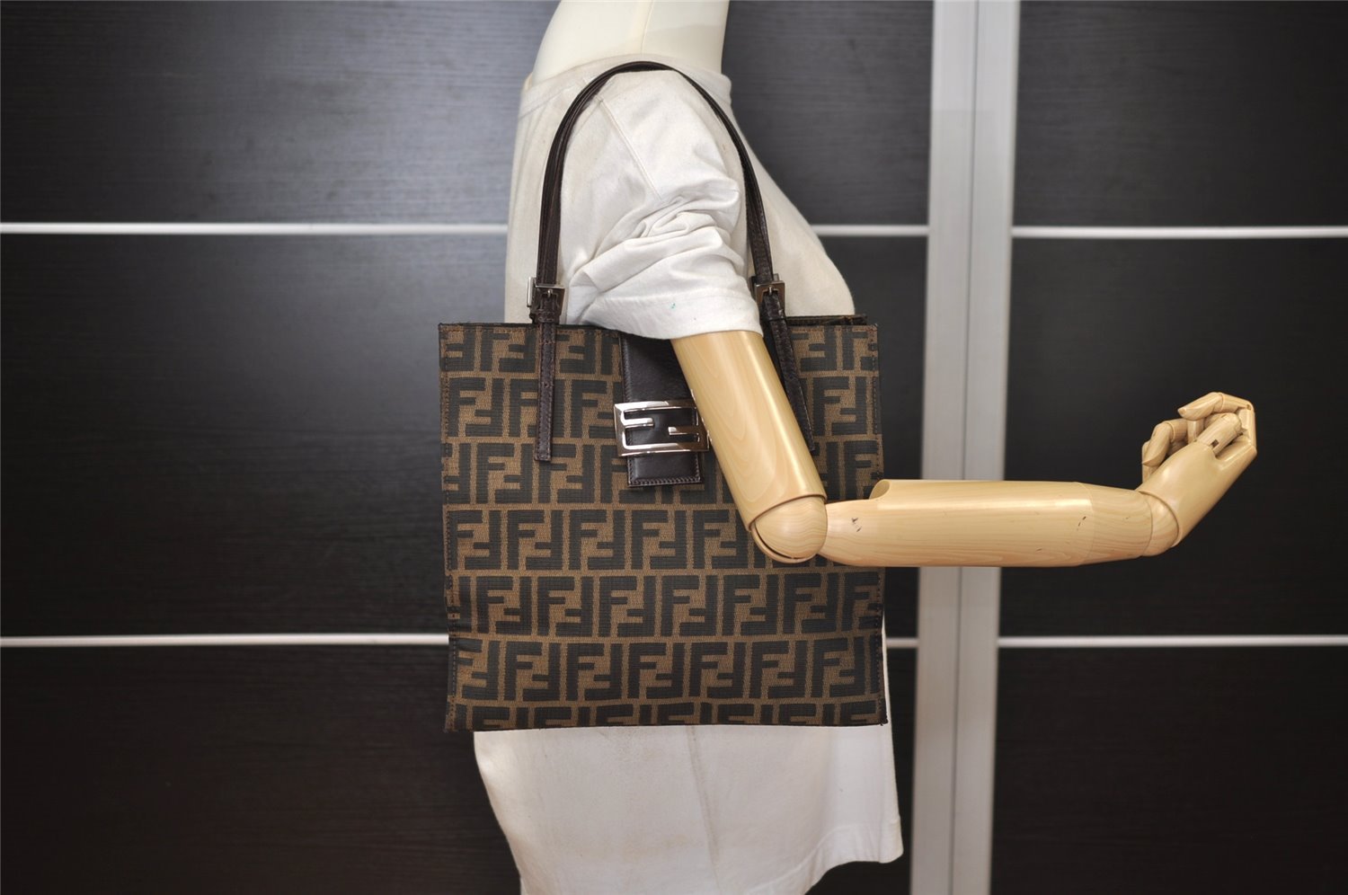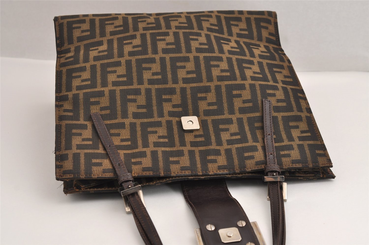 | Authentic FENDI Vintage Zucca Shoulder Tote Bag Purse Canvas Leather Brown | |