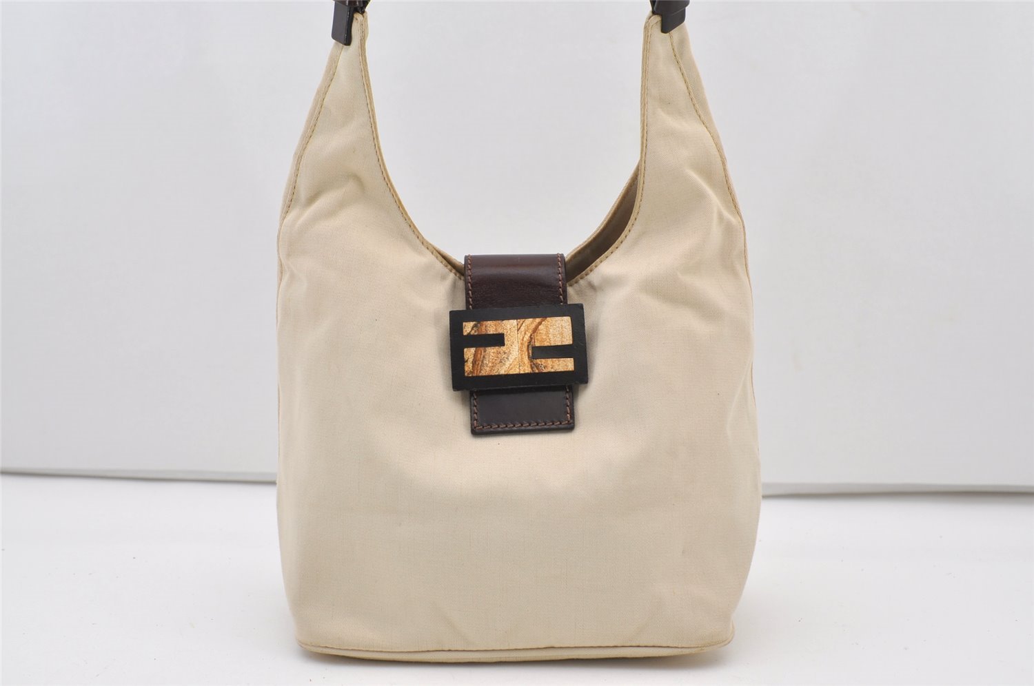 | Authentic FENDI Vintage Shoulder Hand Bag Purse Canvas Leather Beige | |