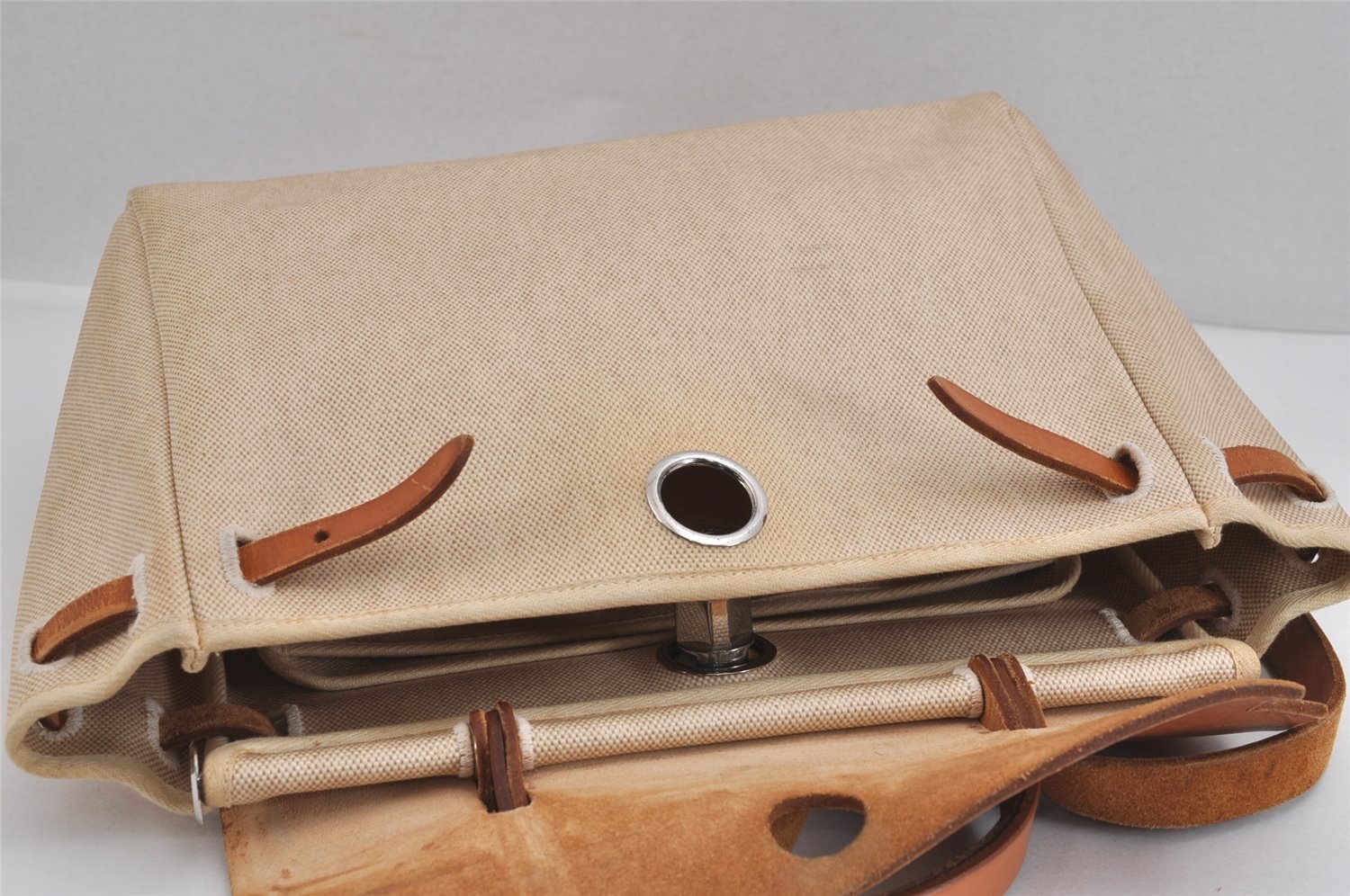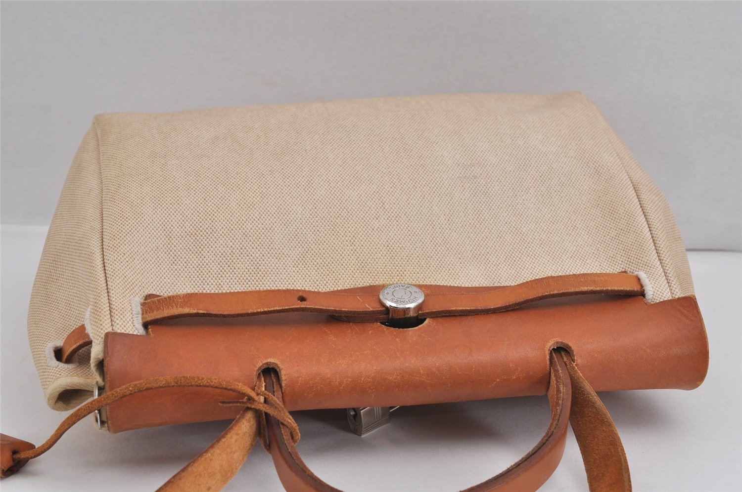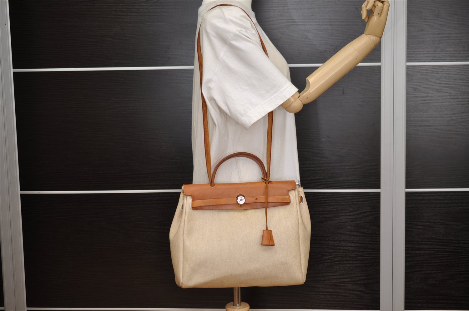 | Auth HERMES Her Bag PM 2 In 1 2Way Hand Bag Canvas Leather White Black | |