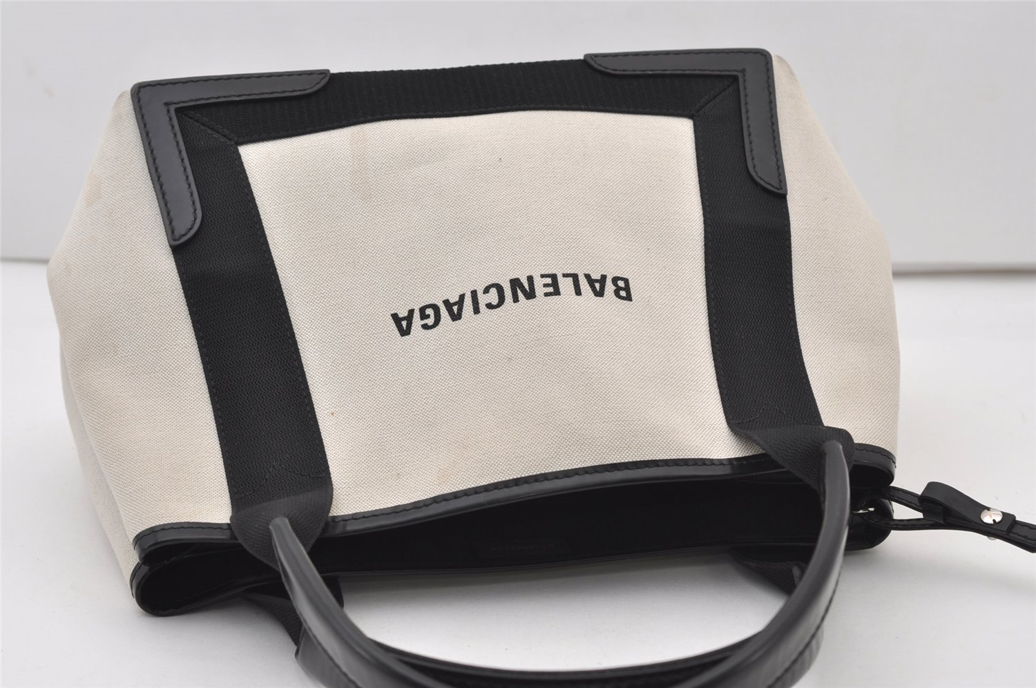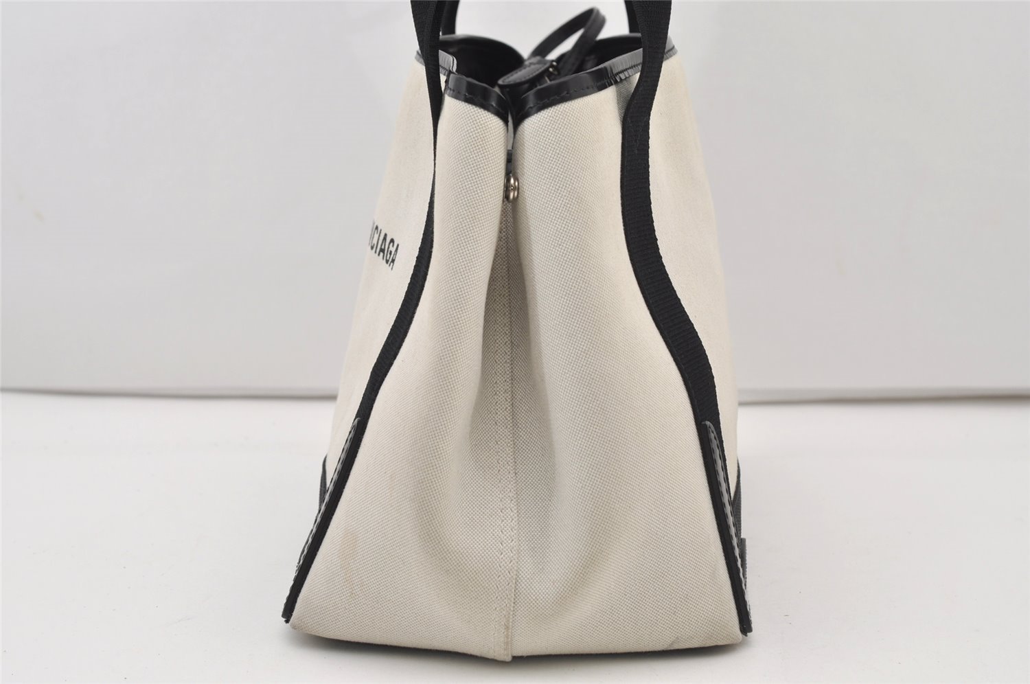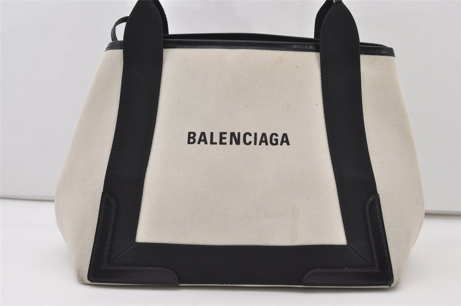 | Authentic BALENCIAGA Navy Caba S Hand Tote Bag Canvas Leather 339933 White | |