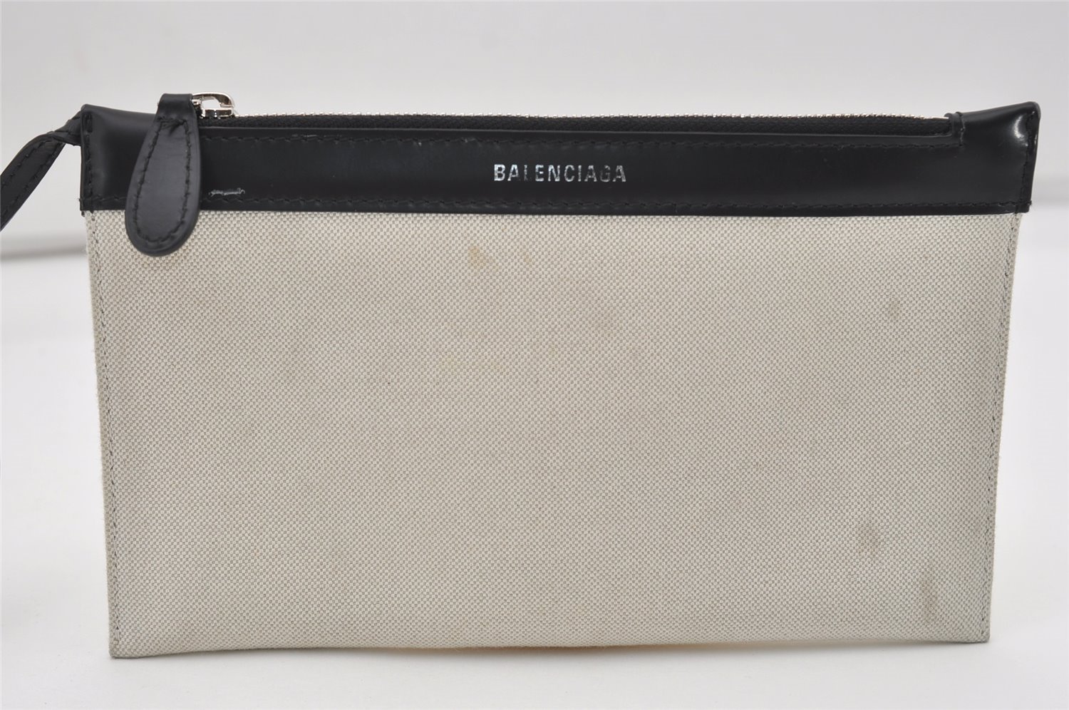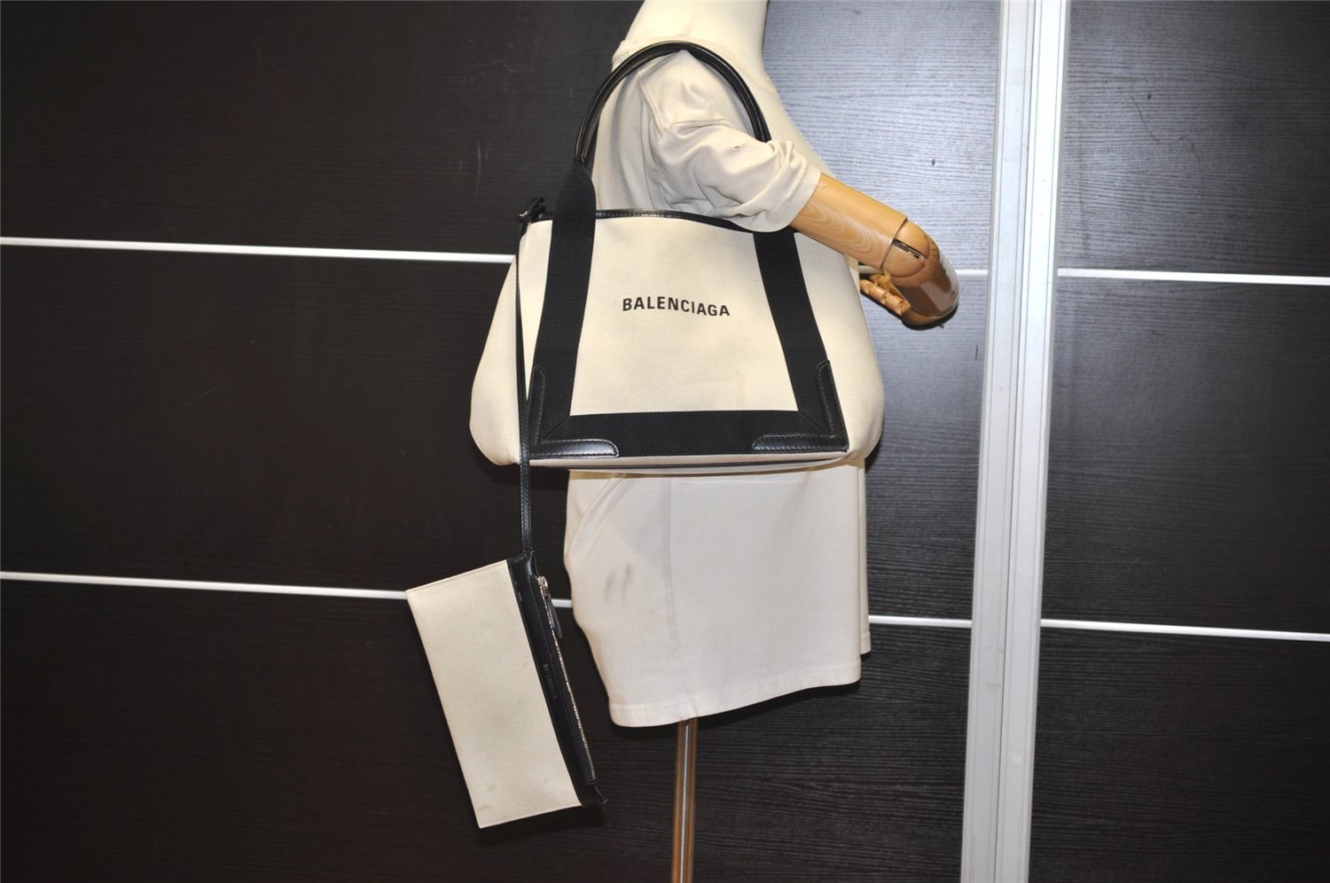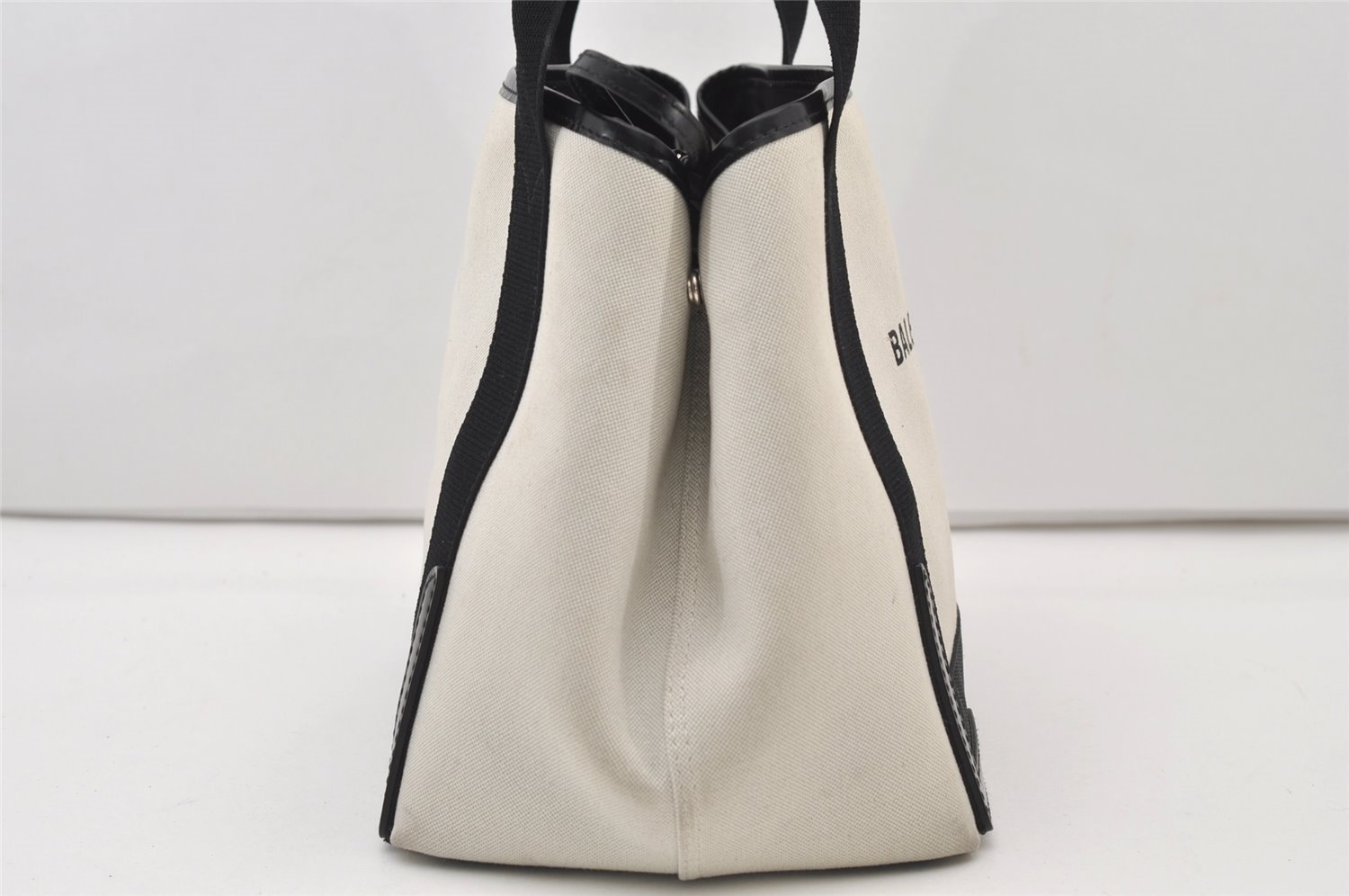 | Authentic BALENCIAGA Navy Caba S Hand Tote Bag Canvas Leather 339933 White | |