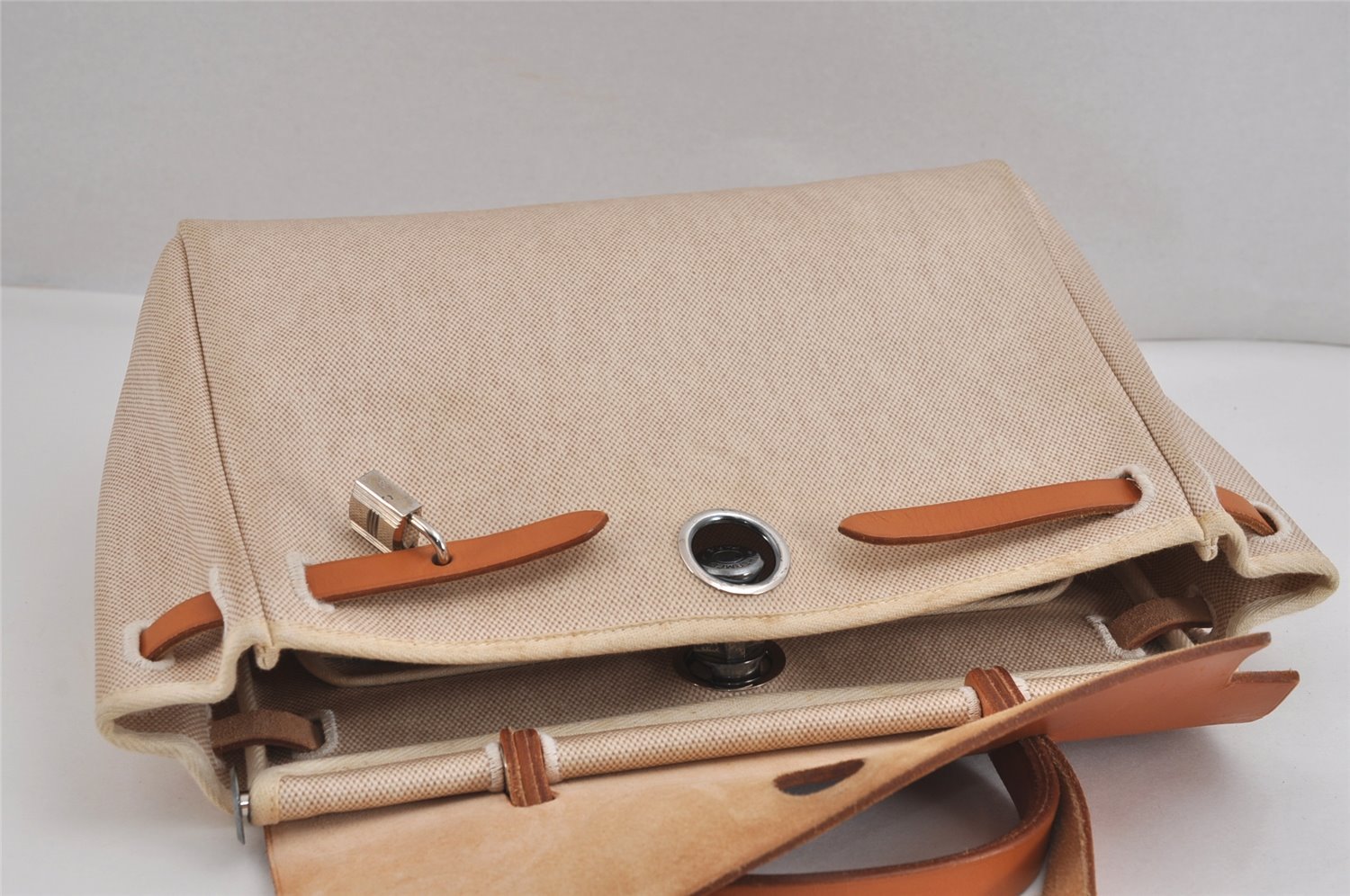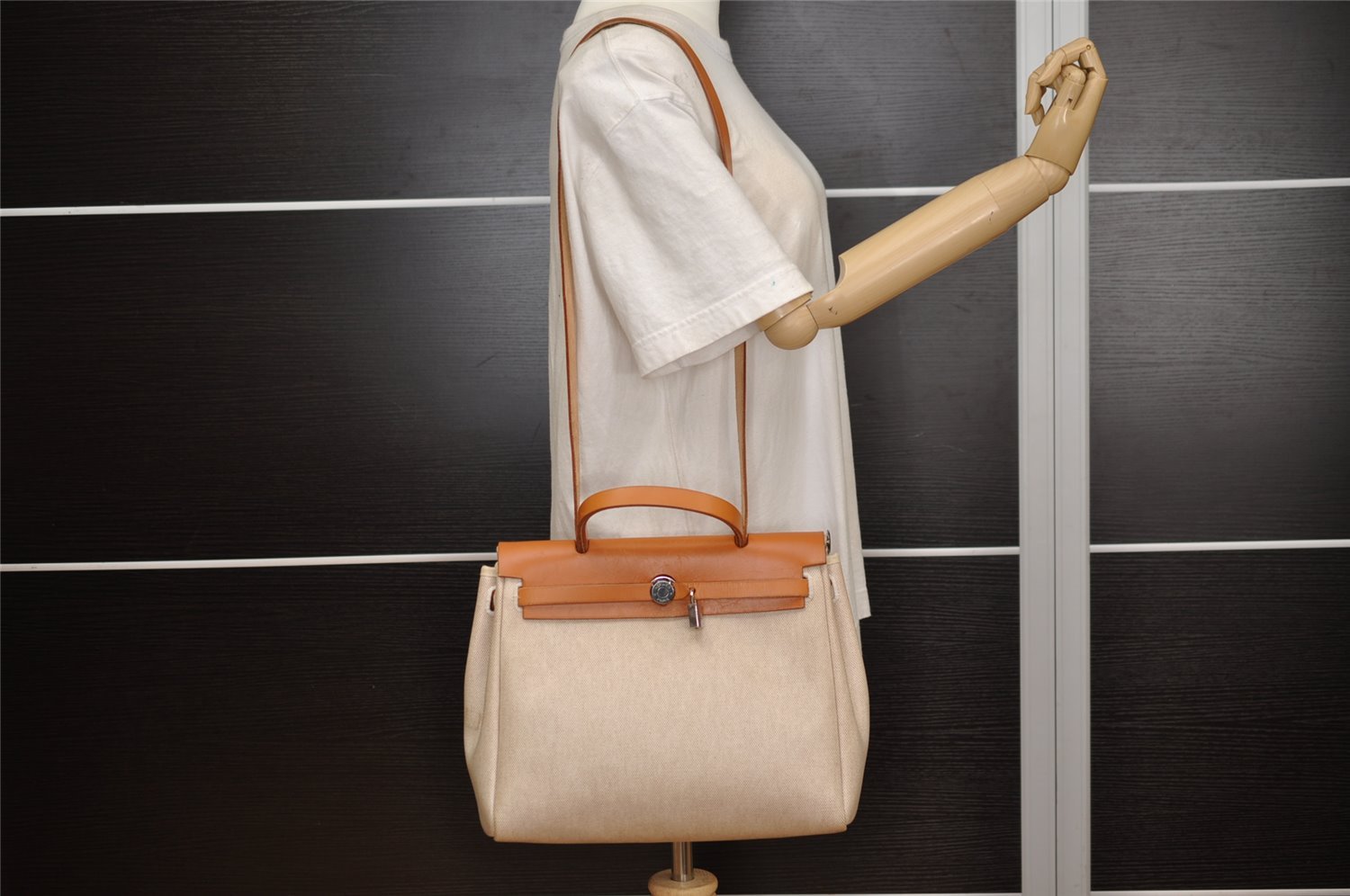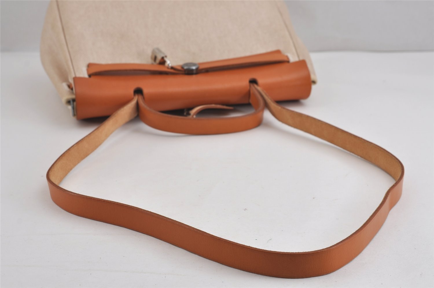 | Authentic HERMES Her Bag PM 2 In 1 2Way Hand Bag Canvas White Black | |