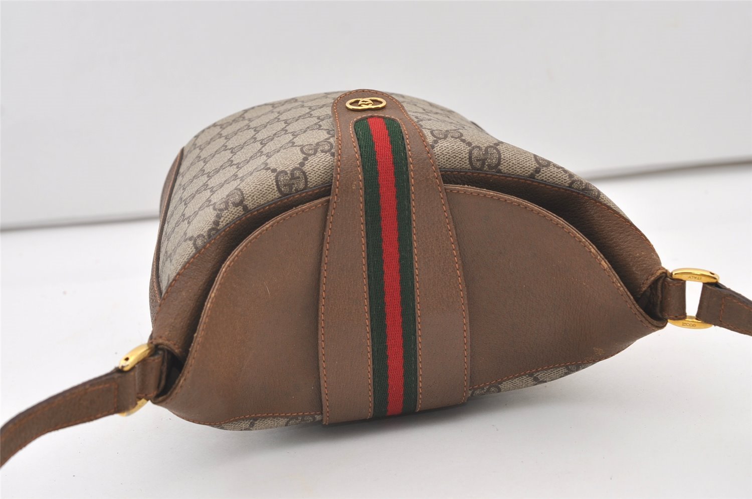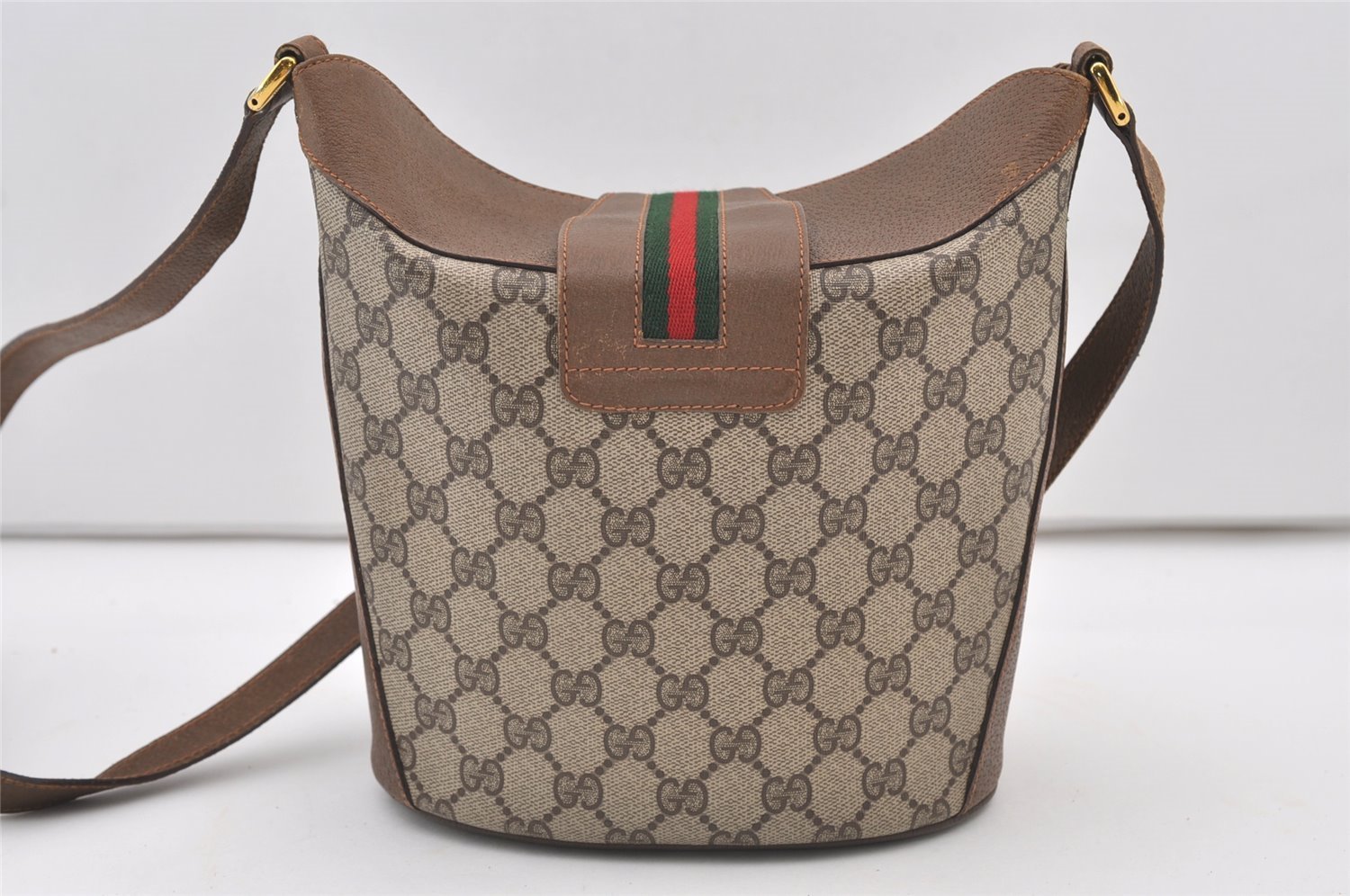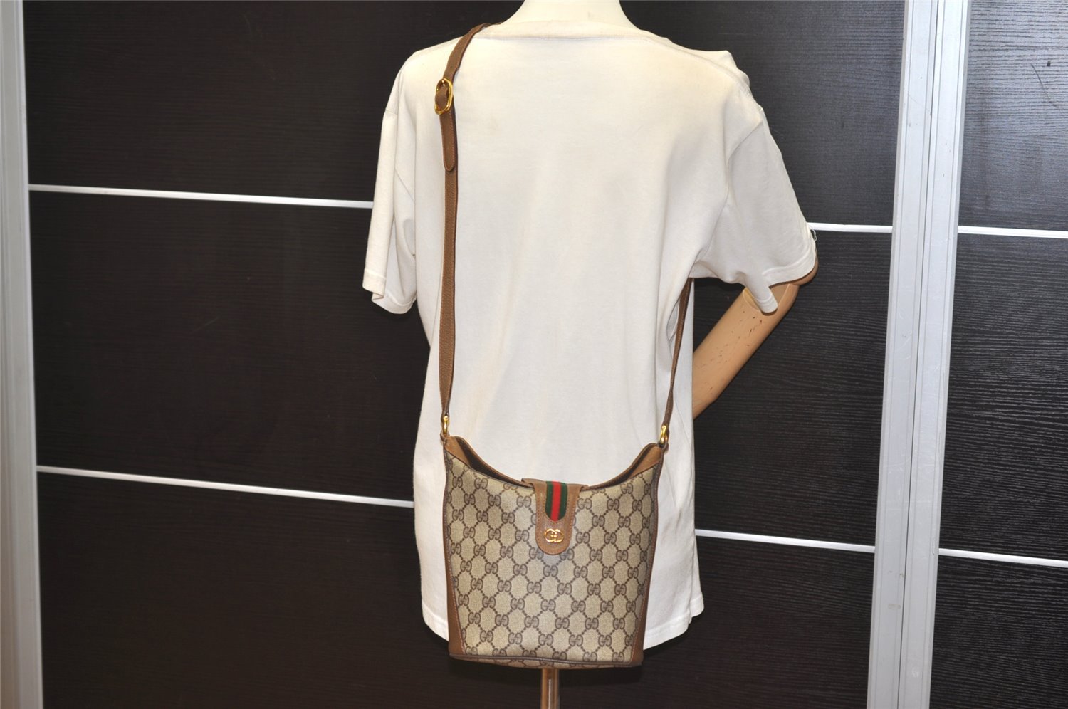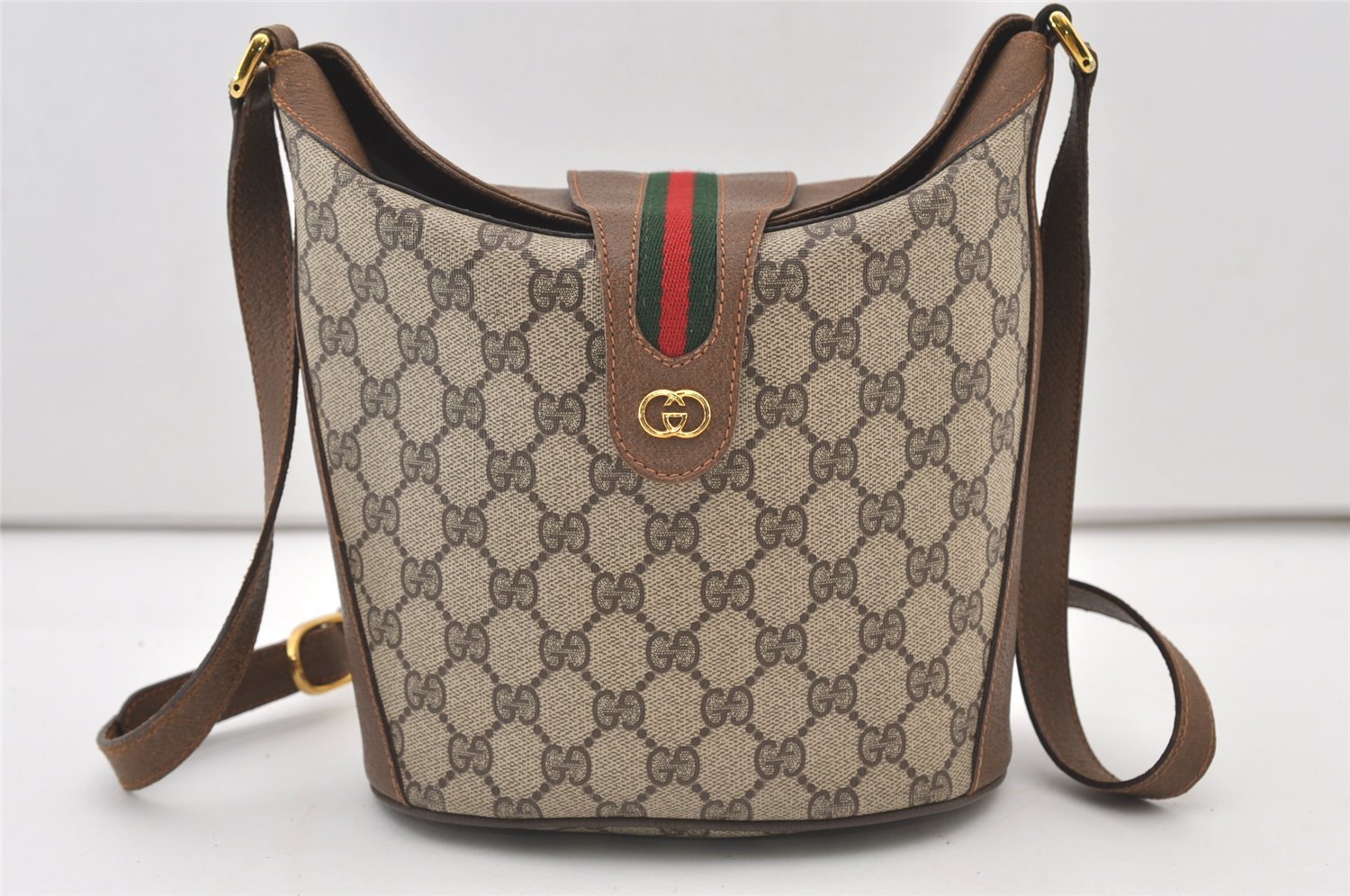 | Authentic GUCCI Web Sherry Line Shoulder Bag GG PVC Leather Brown Junk | |