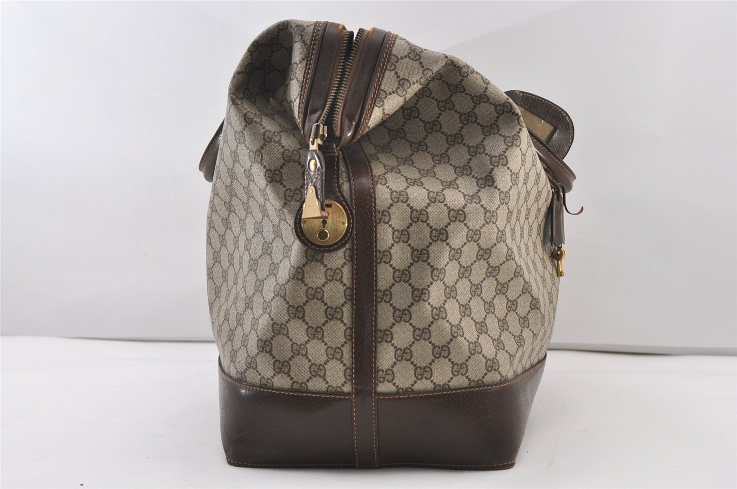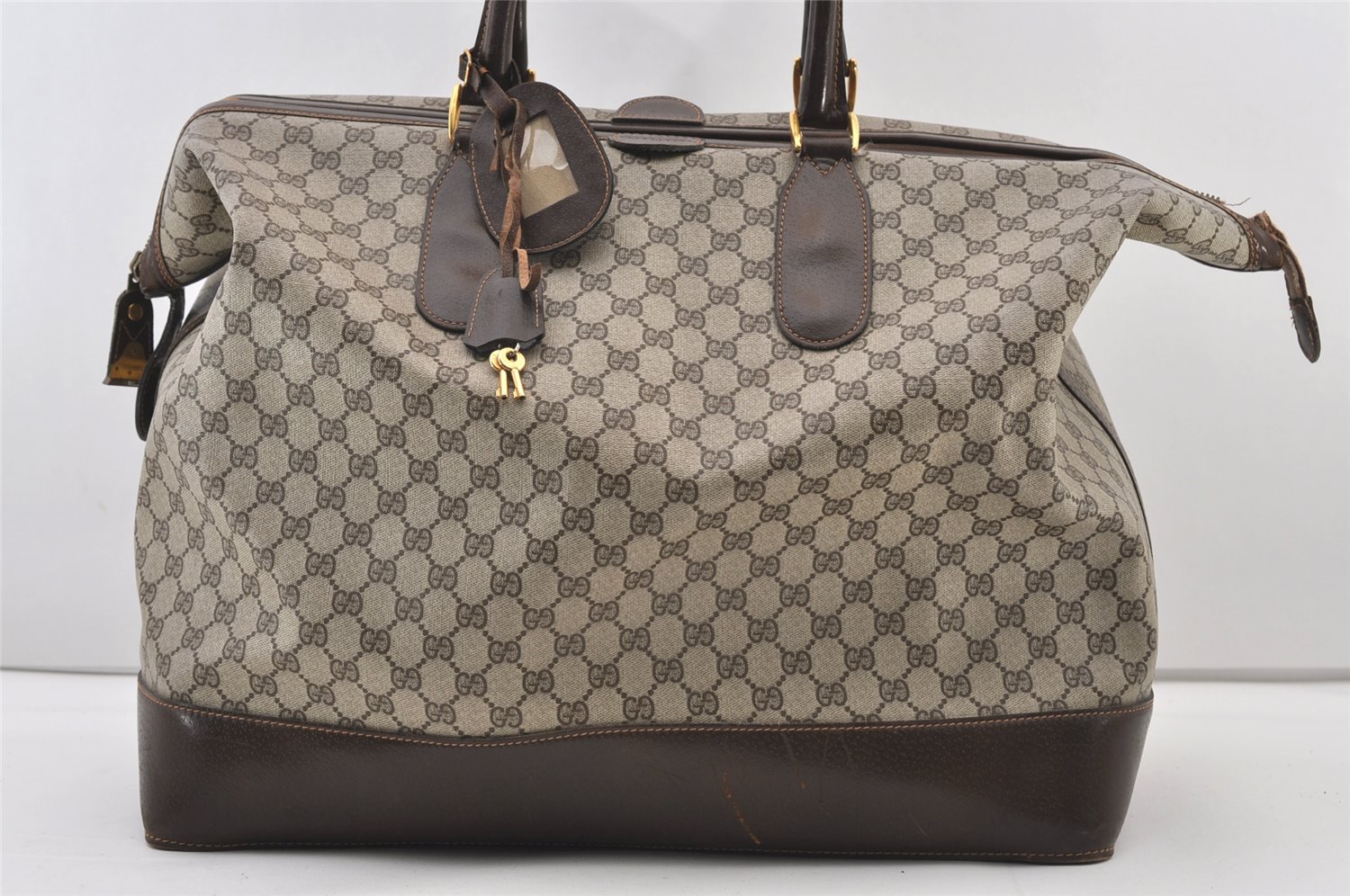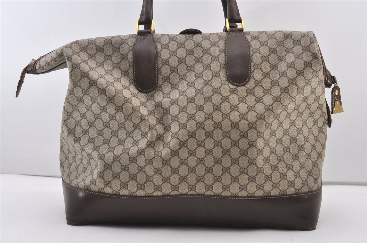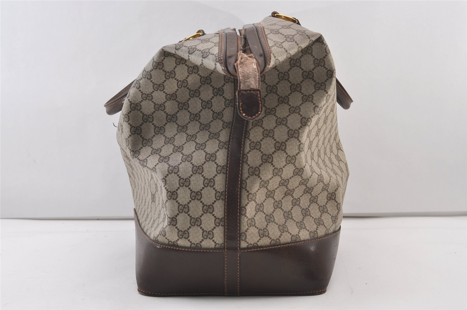 | Authentic GUCCI Vintage Travel Boston Bag GG PVC Leather Brown Junk | |