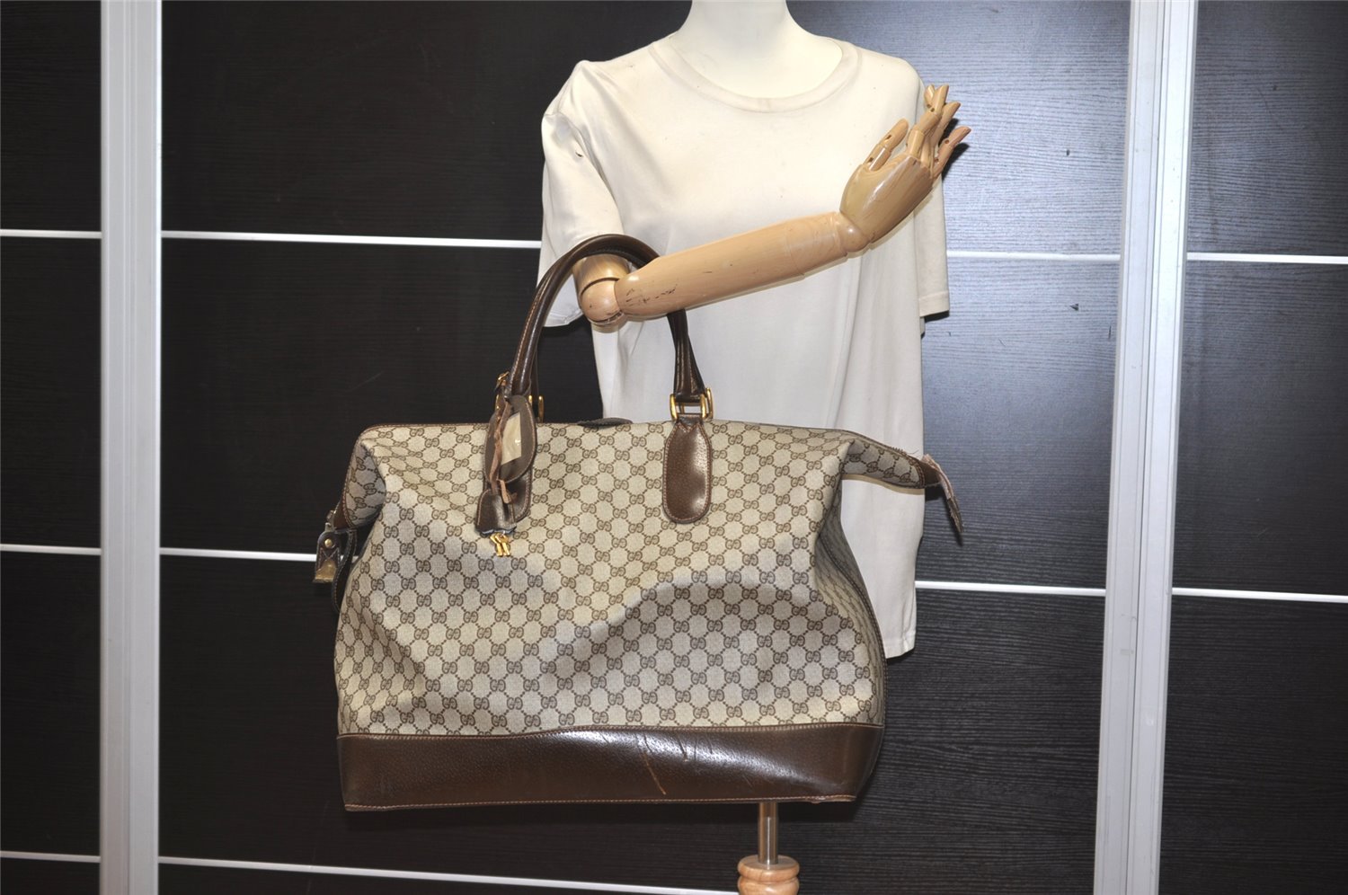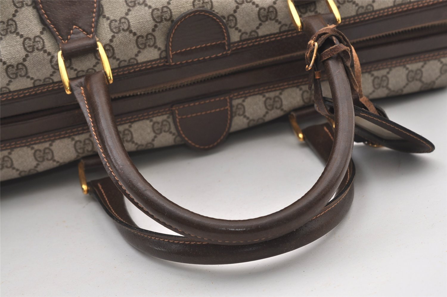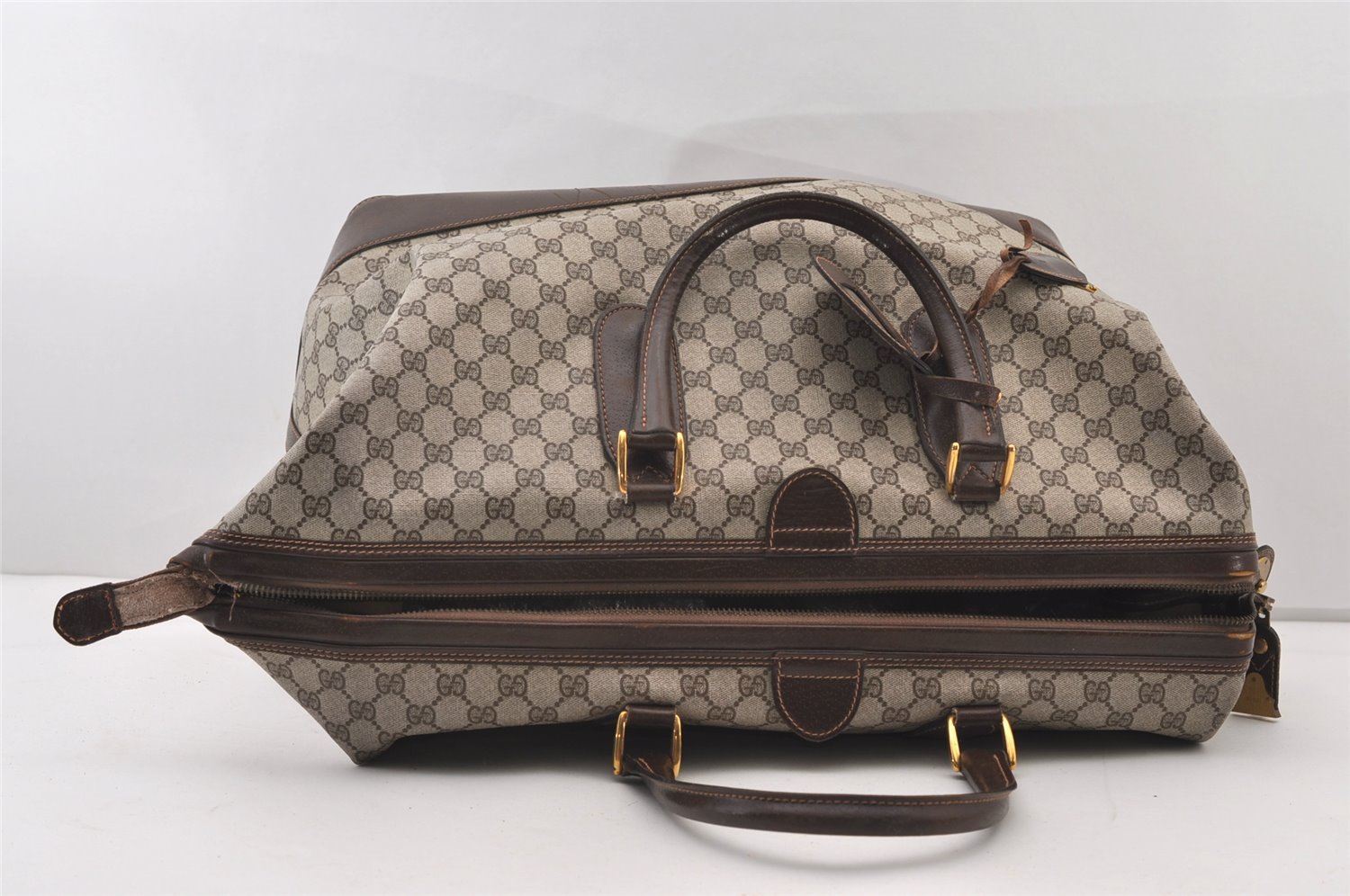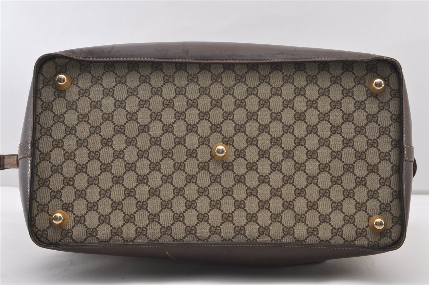 | Authentic GUCCI Vintage Travel Boston Bag GG PVC Leather Brown Junk | |