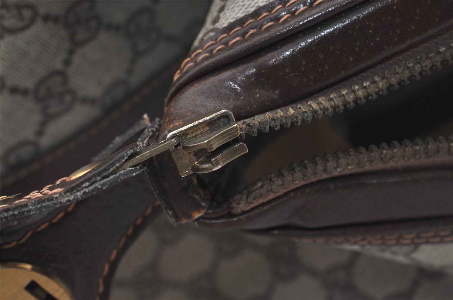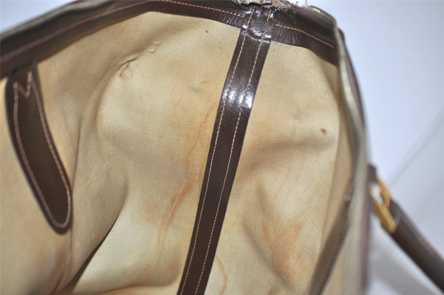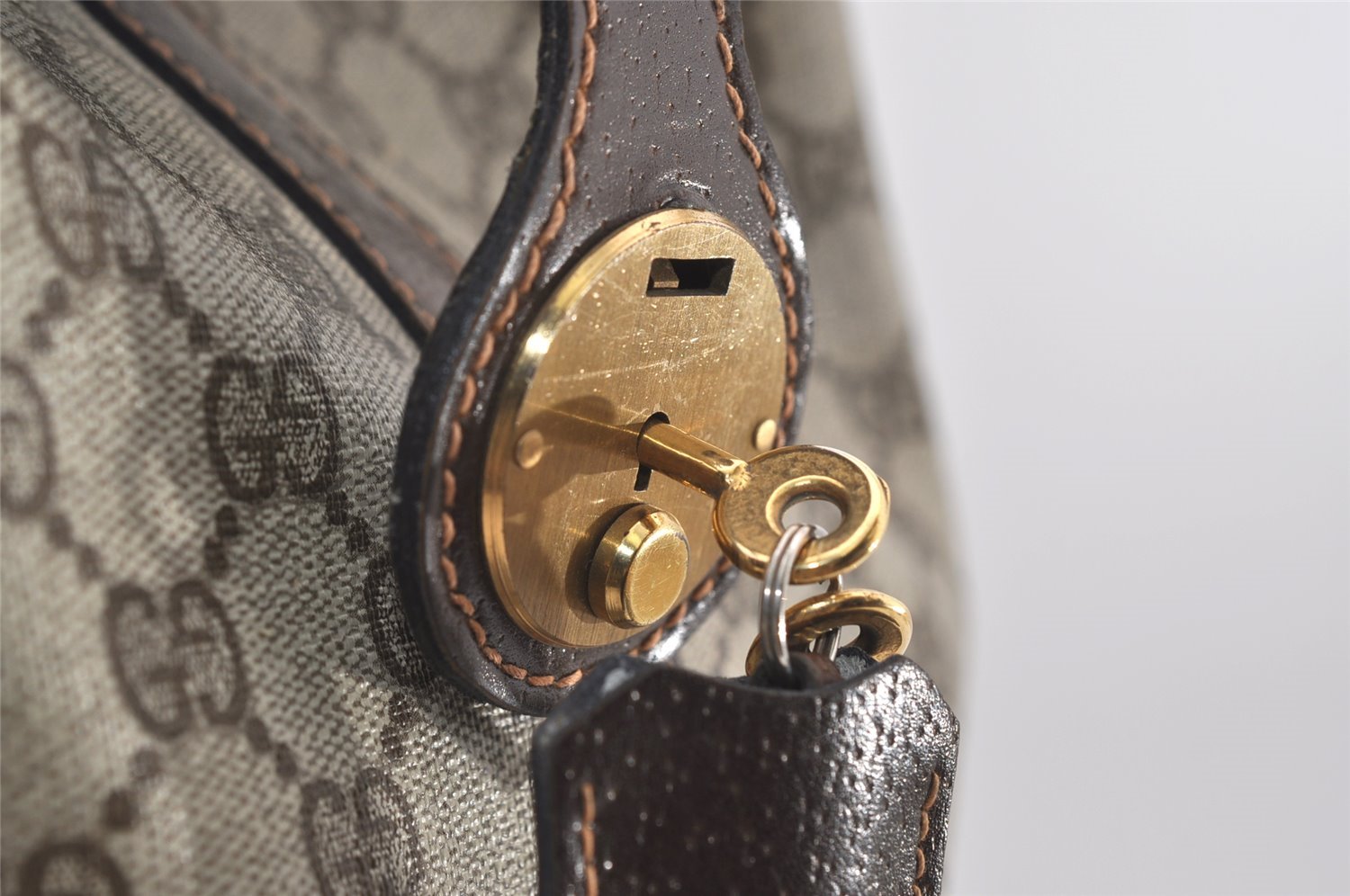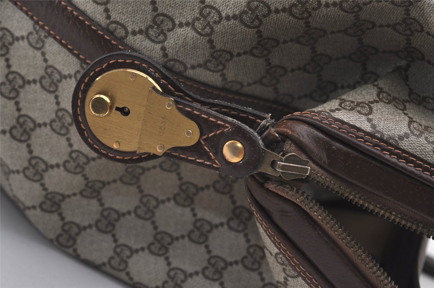 | Authentic GUCCI Vintage Travel Boston Bag GG PVC Leather Brown Junk | |