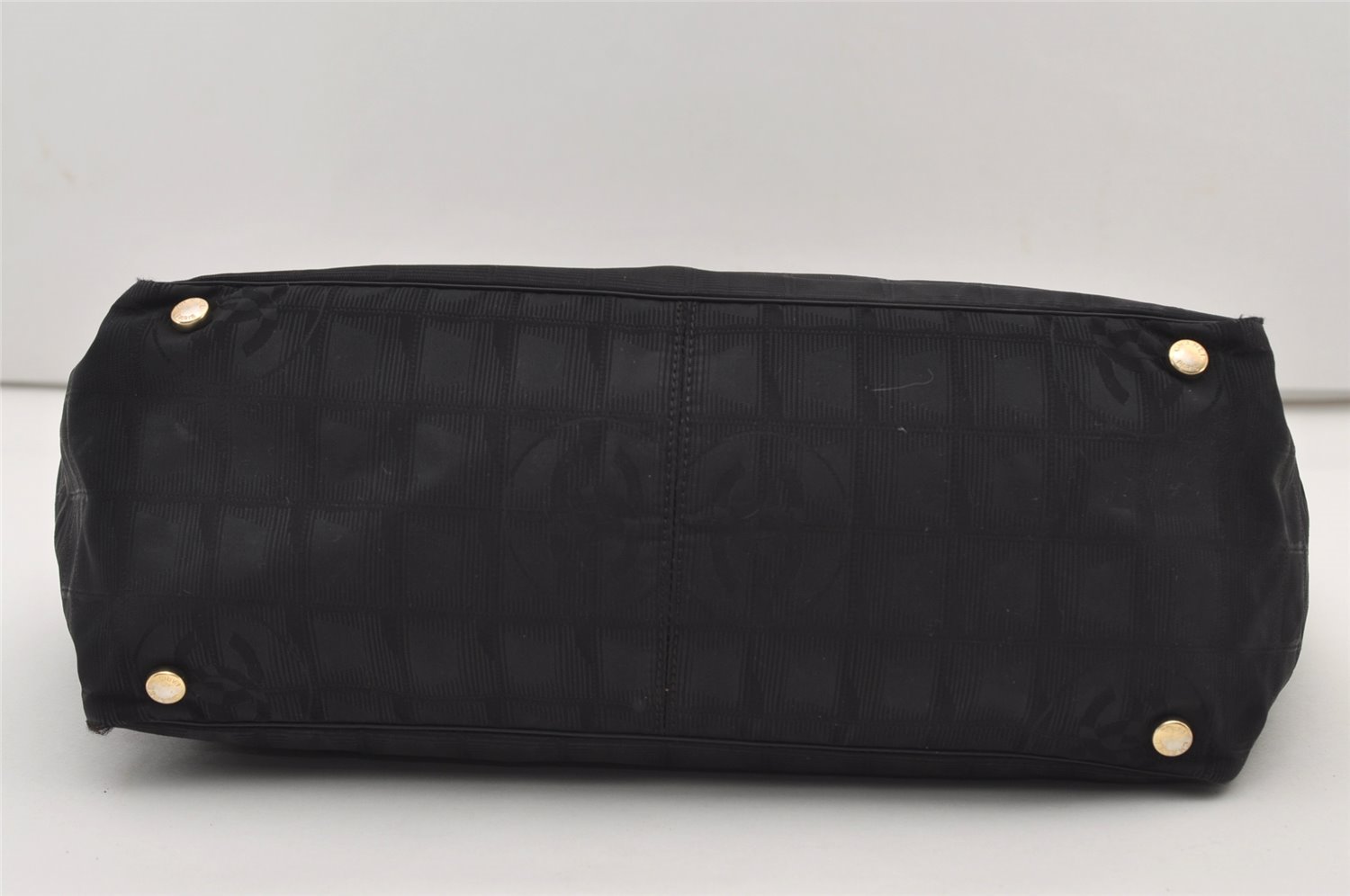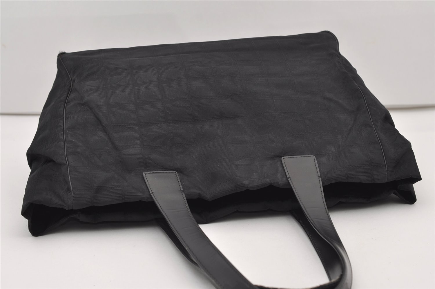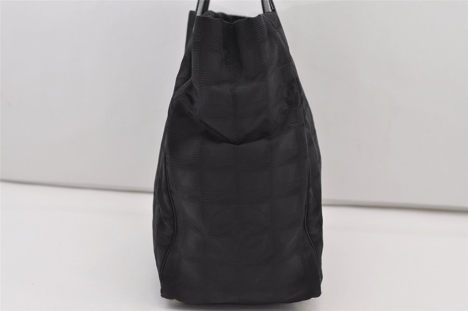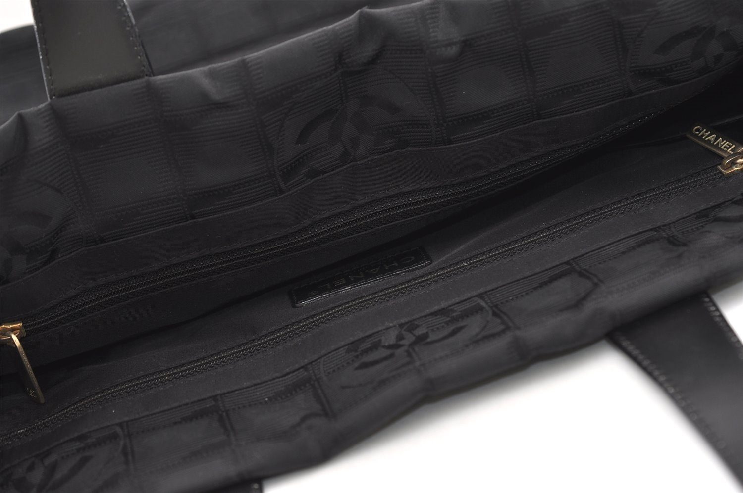 | Authentic CHANEL New Travel Line Shoulder Tote Bag Nylon Leather Black | |