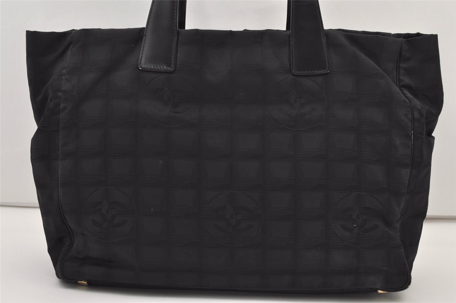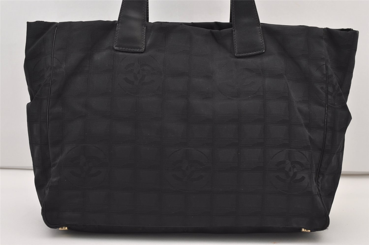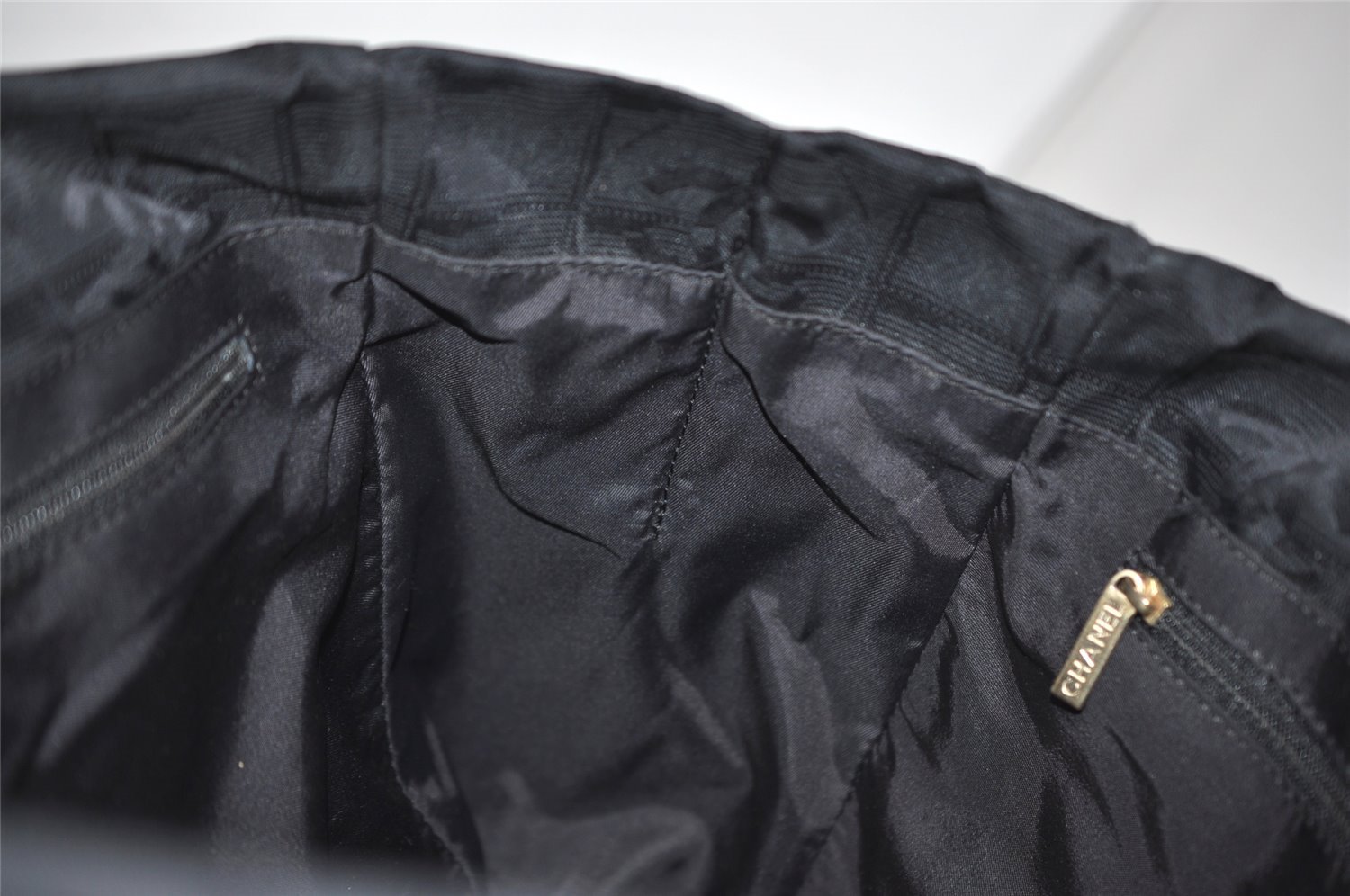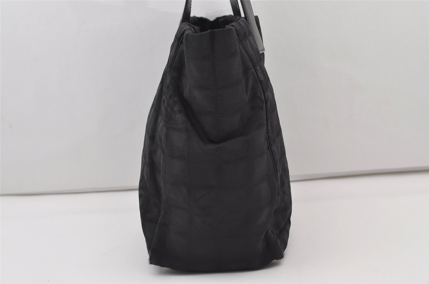 | Authentic CHANEL New Travel Line Shoulder Tote Bag Nylon Leather Black | |