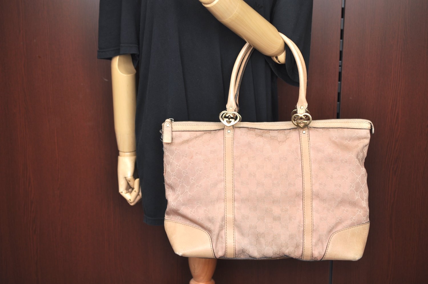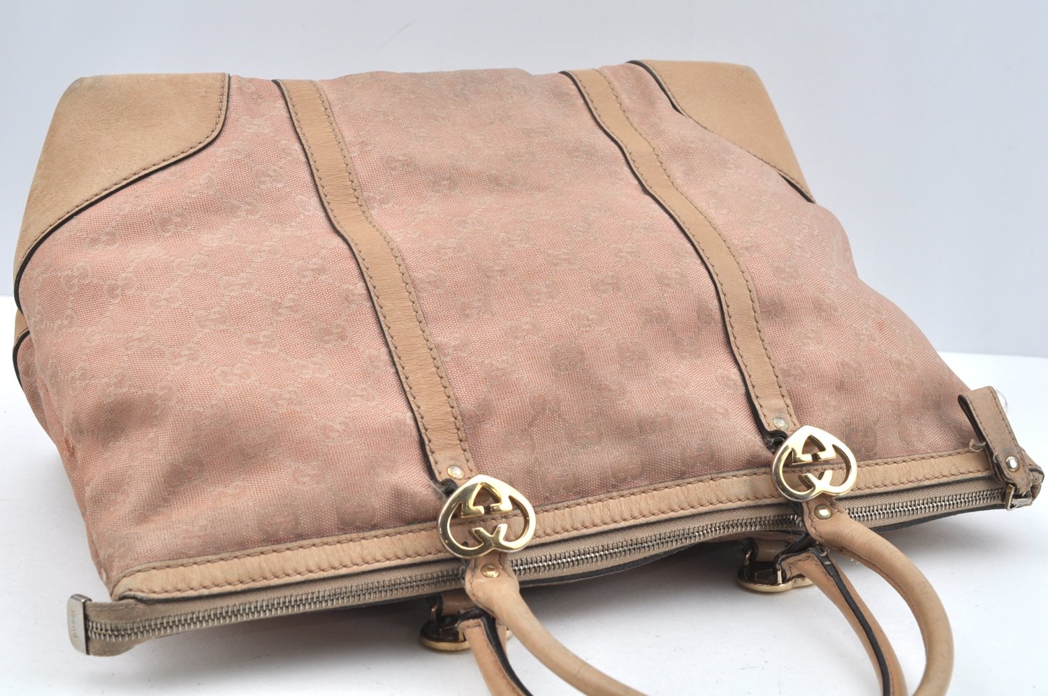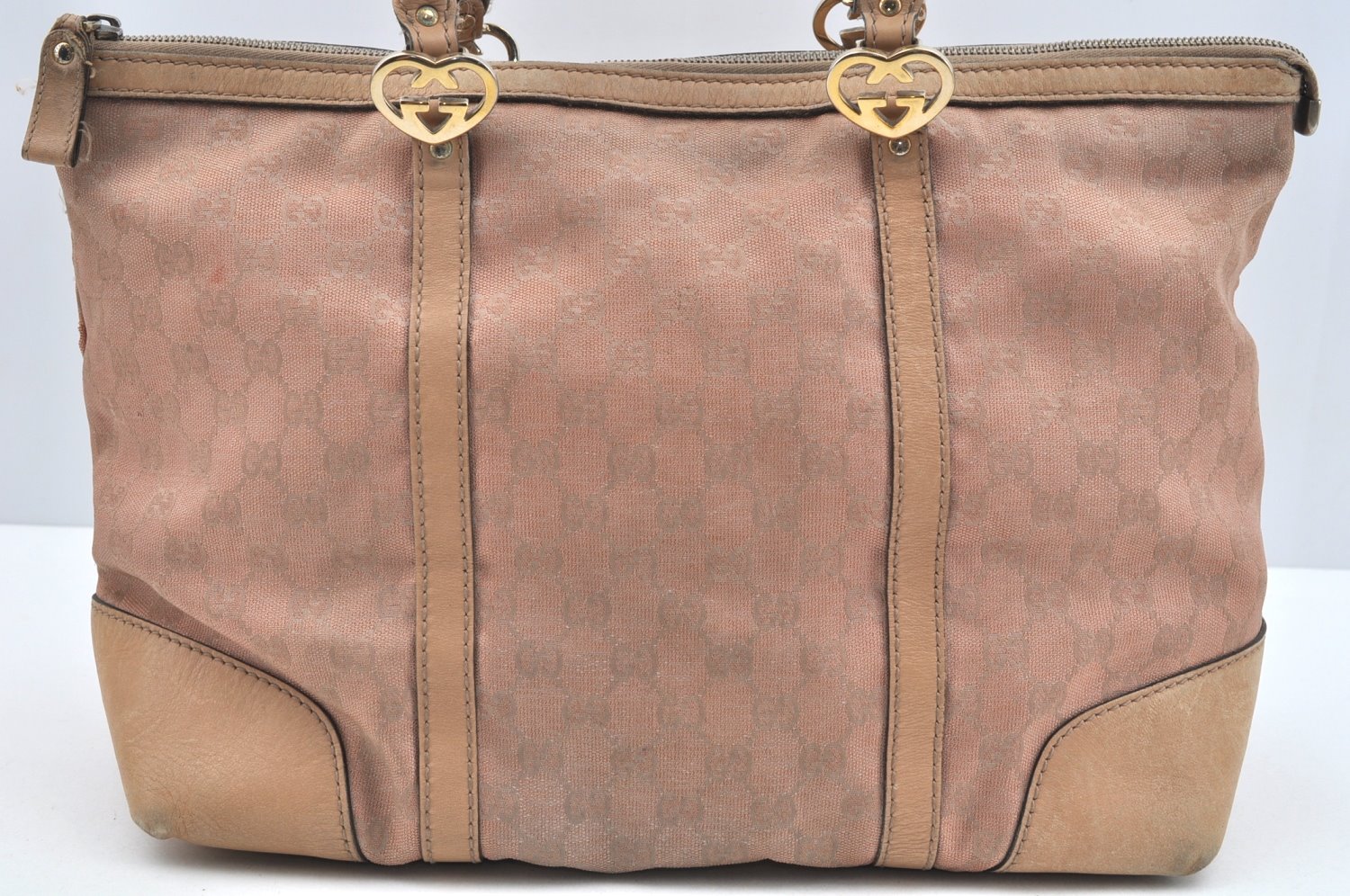 | Authentic GUCCI Lovely Heart Tote Hand Bag GG Canvas Leather 257068 Beige | |