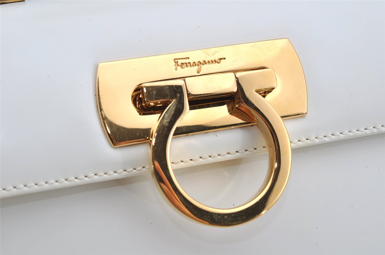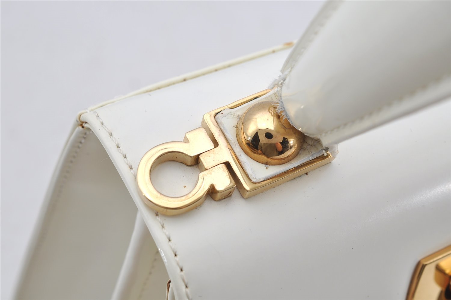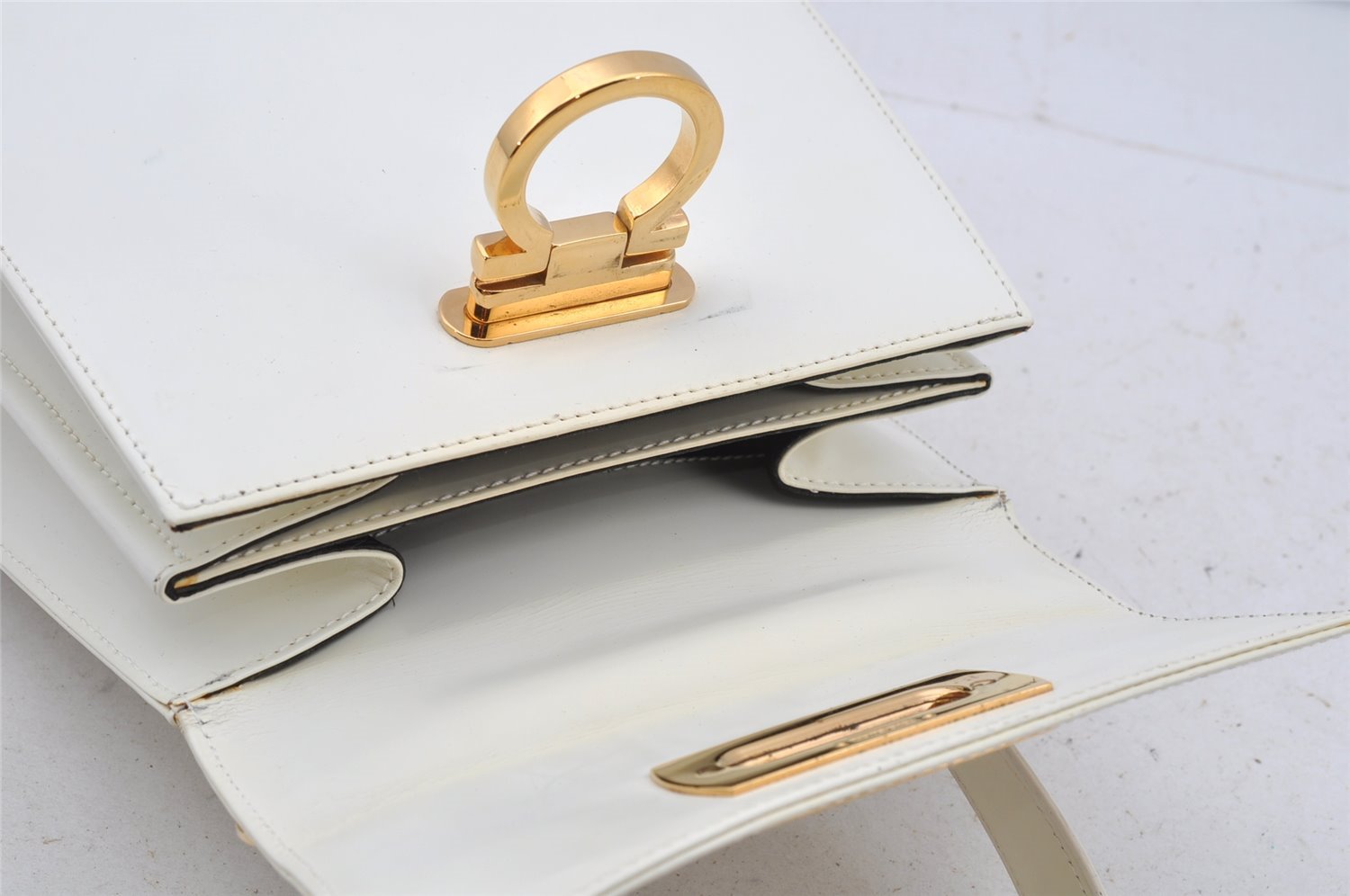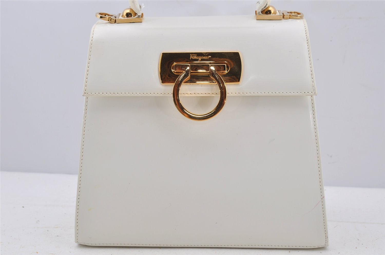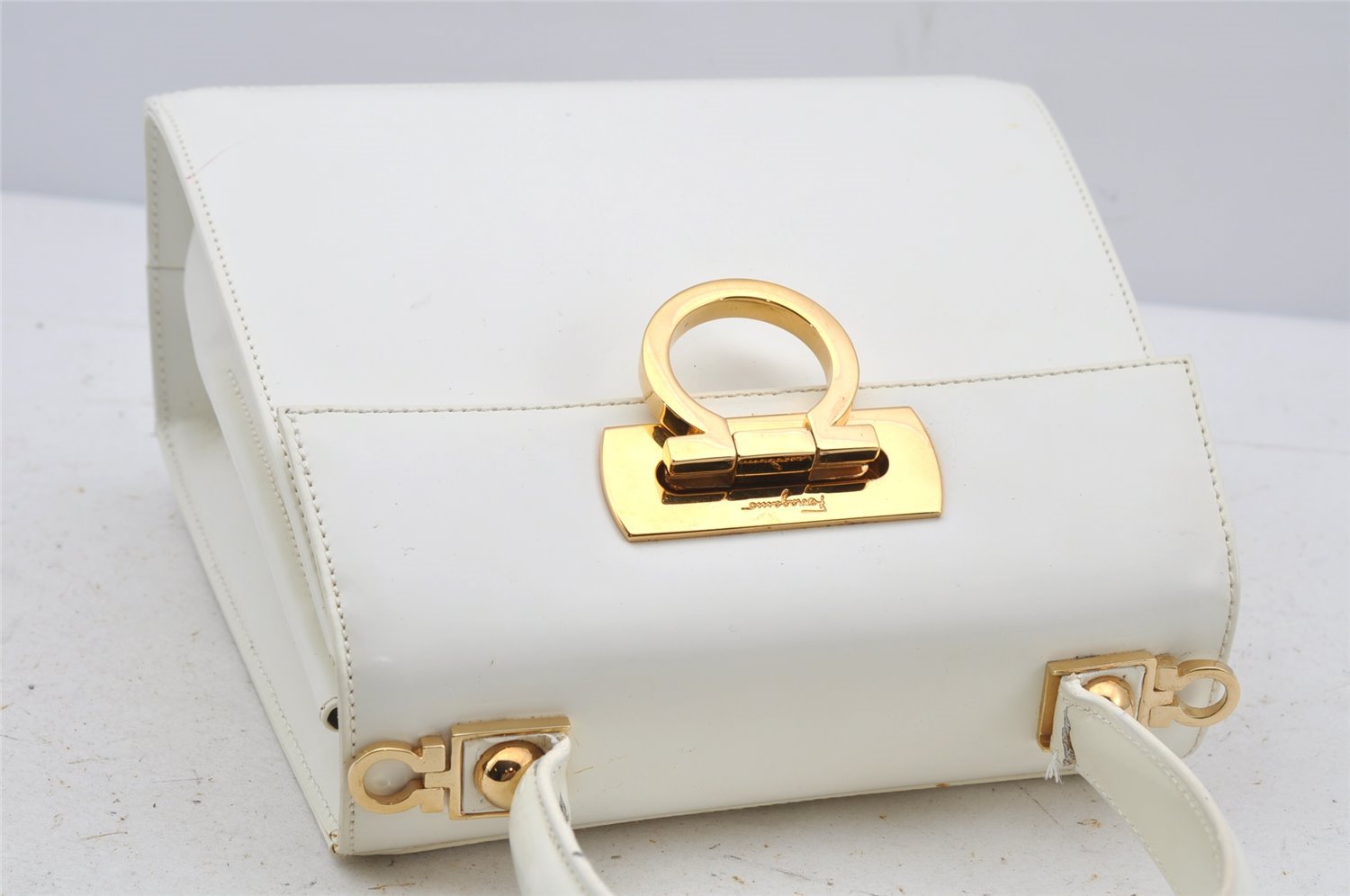 | Authentic Salvatore Ferragamo Gancini Leather 2Way Hand Bag White Junk | |
