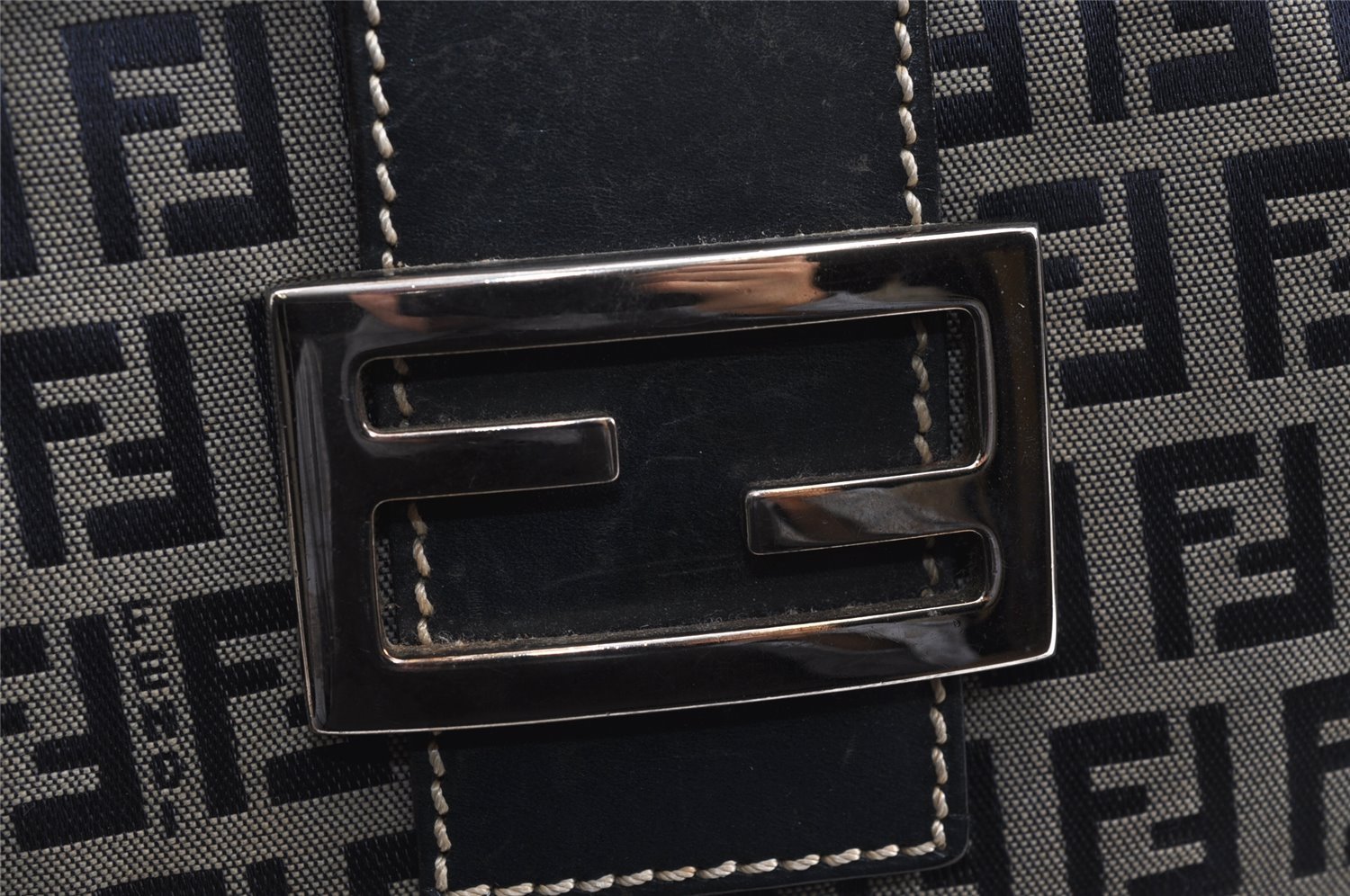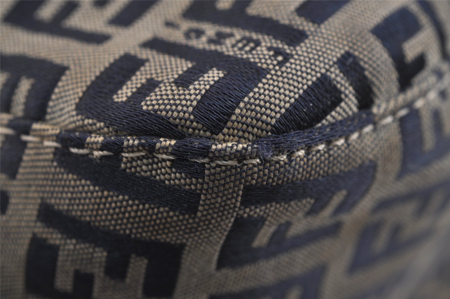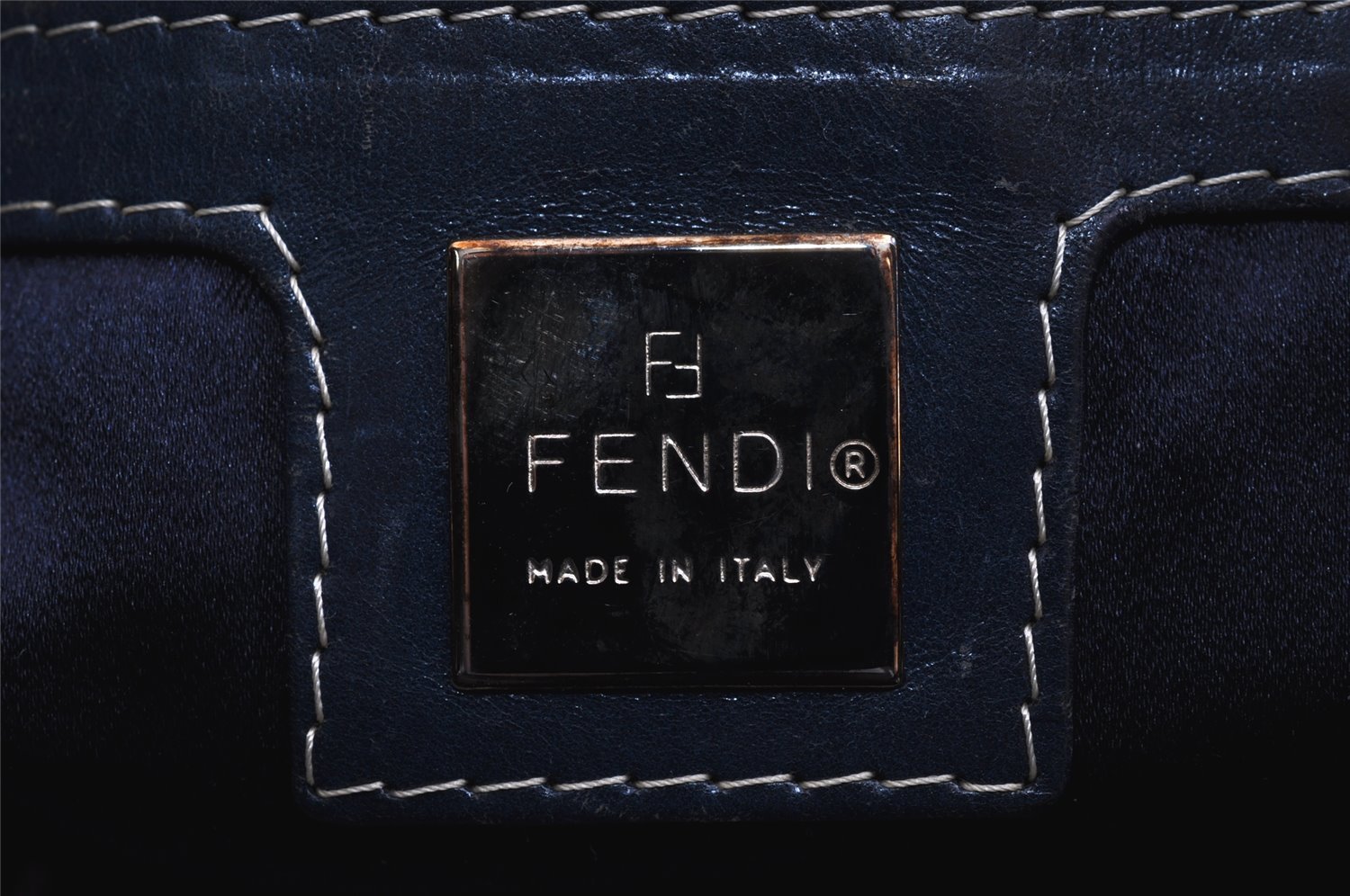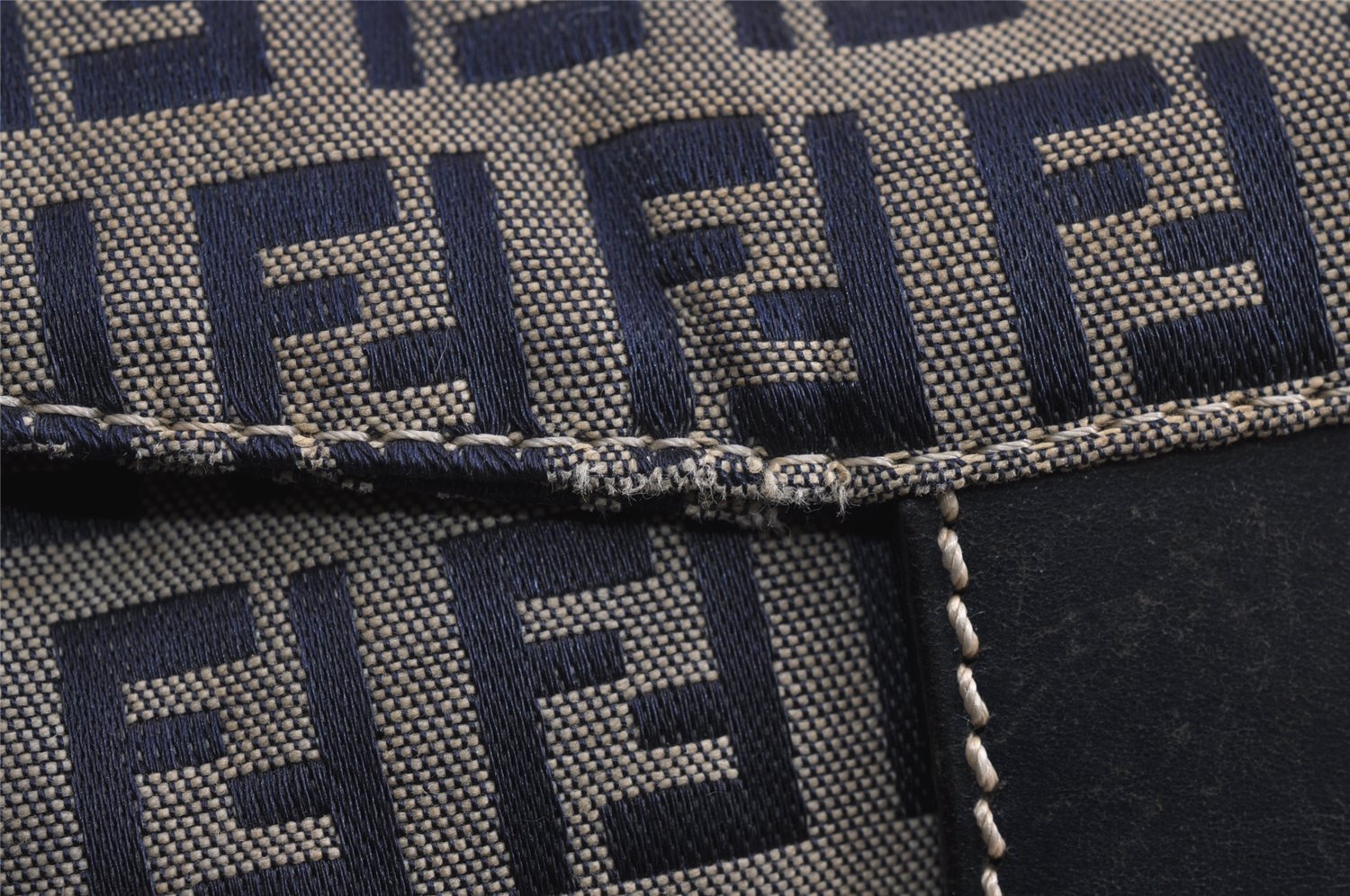 | Authentic FENDI Zucchino Mamma Baguette Shoulder Bag Canvas Leather Navy | |