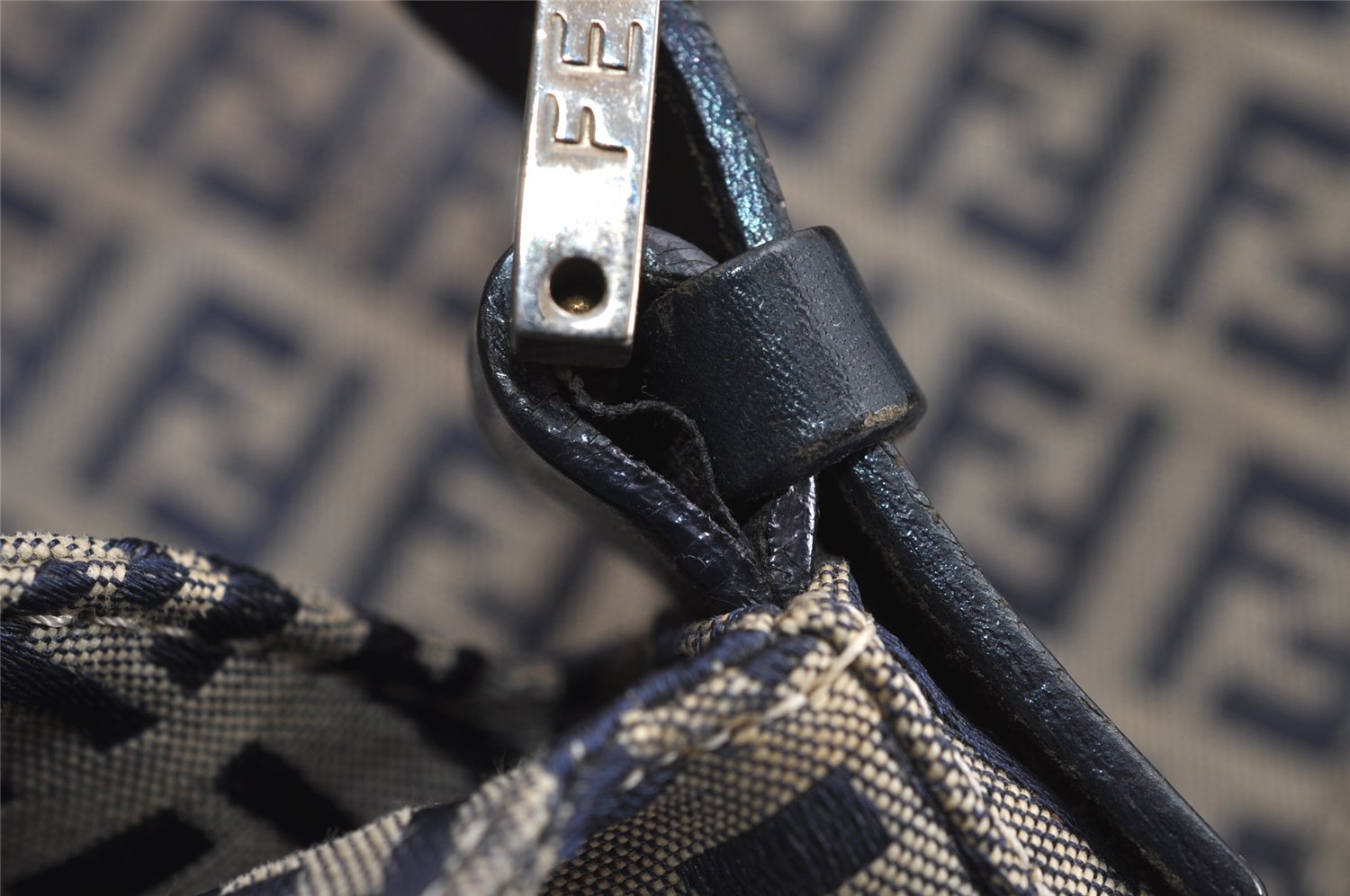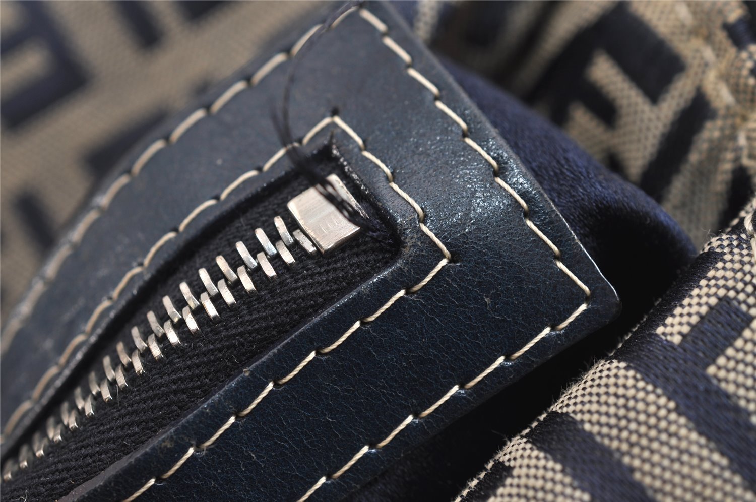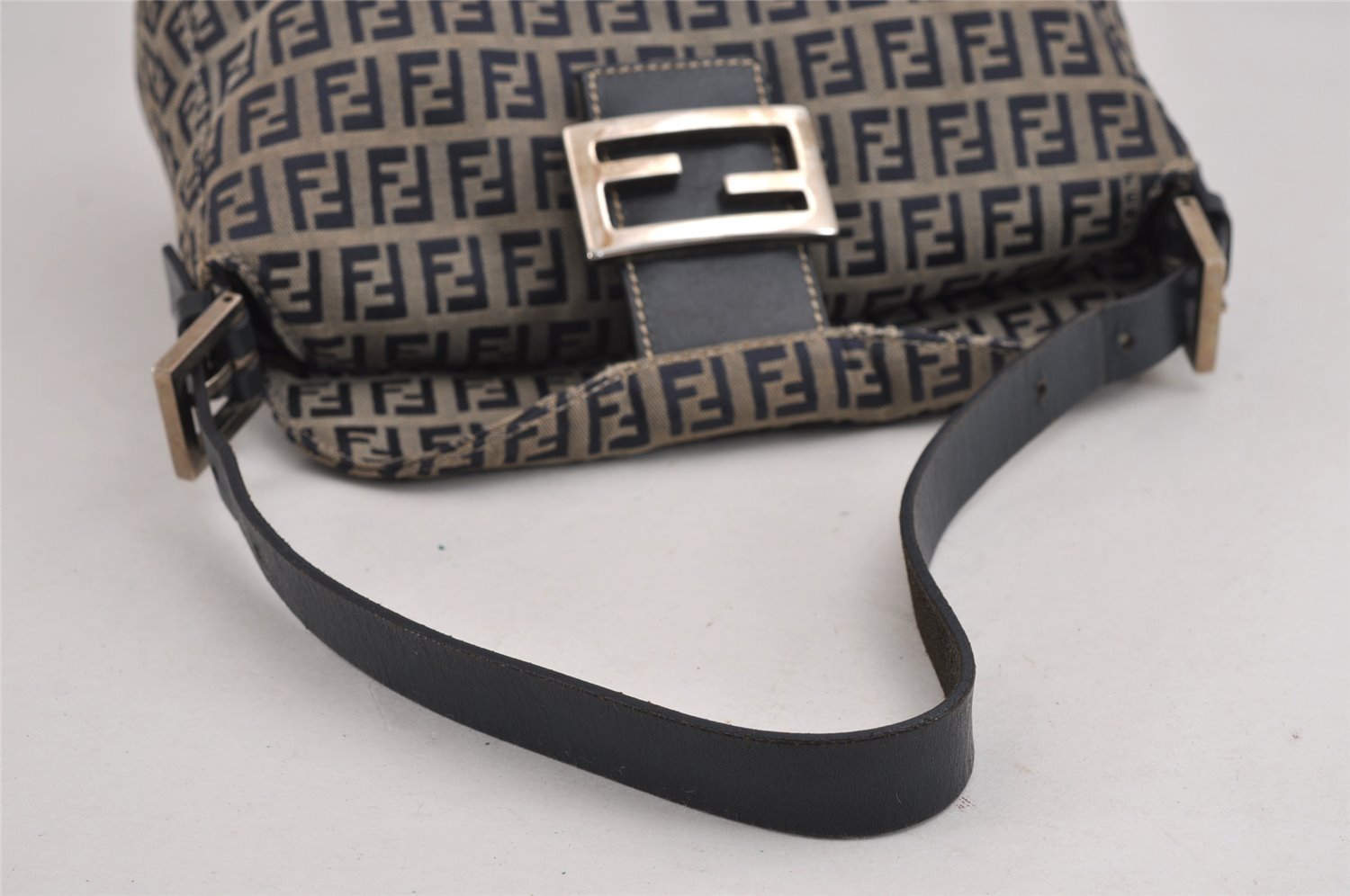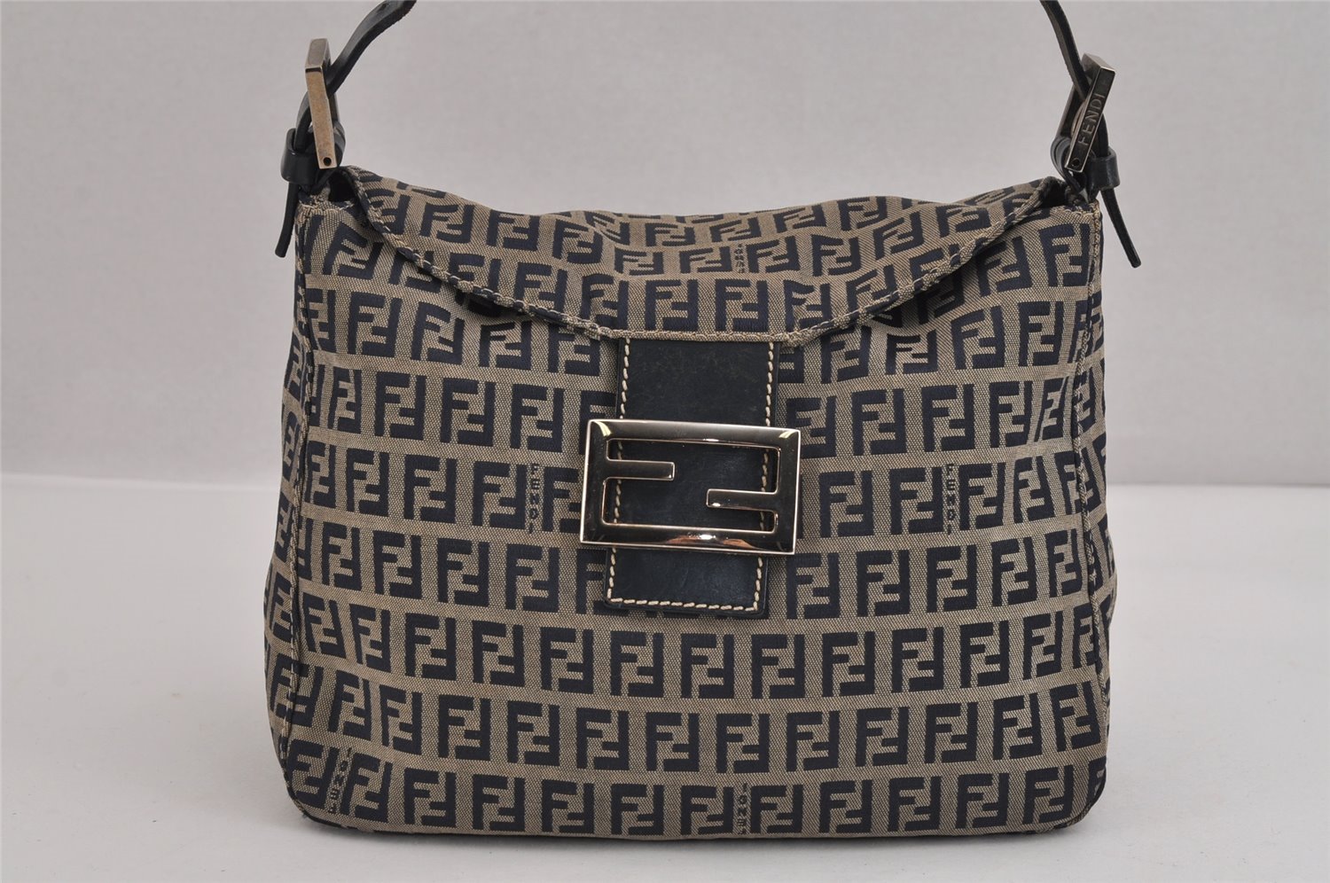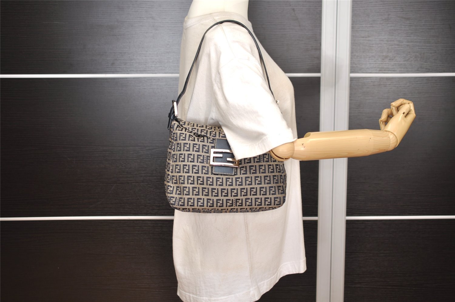 | Authentic FENDI Zucchino Mamma Baguette Shoulder Bag Canvas Leather Navy | |