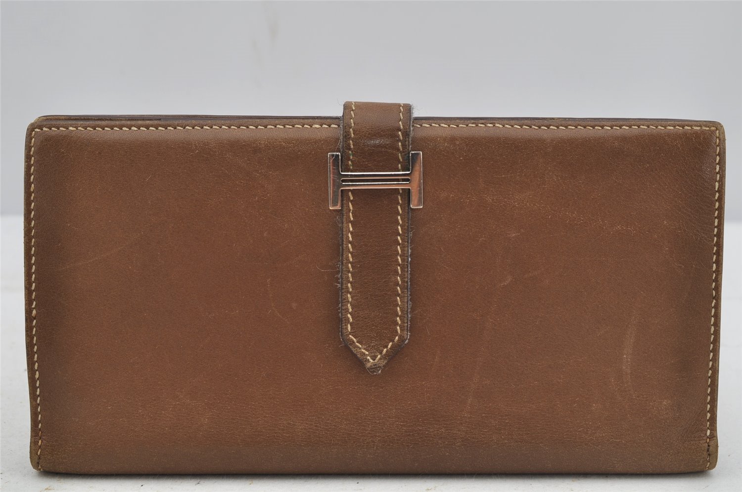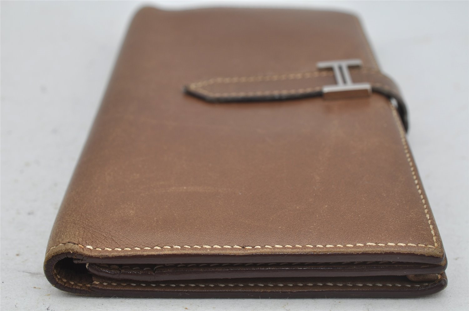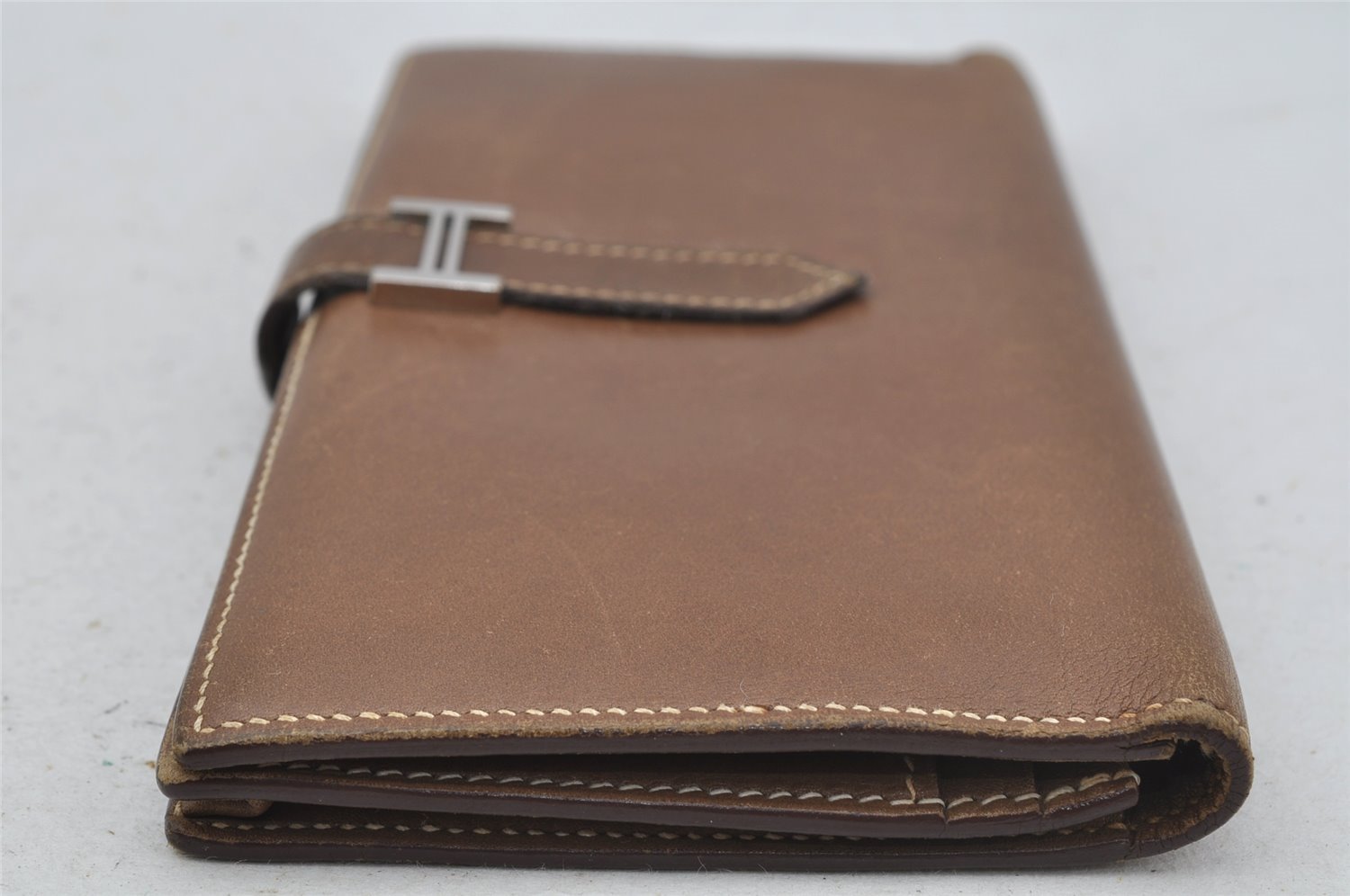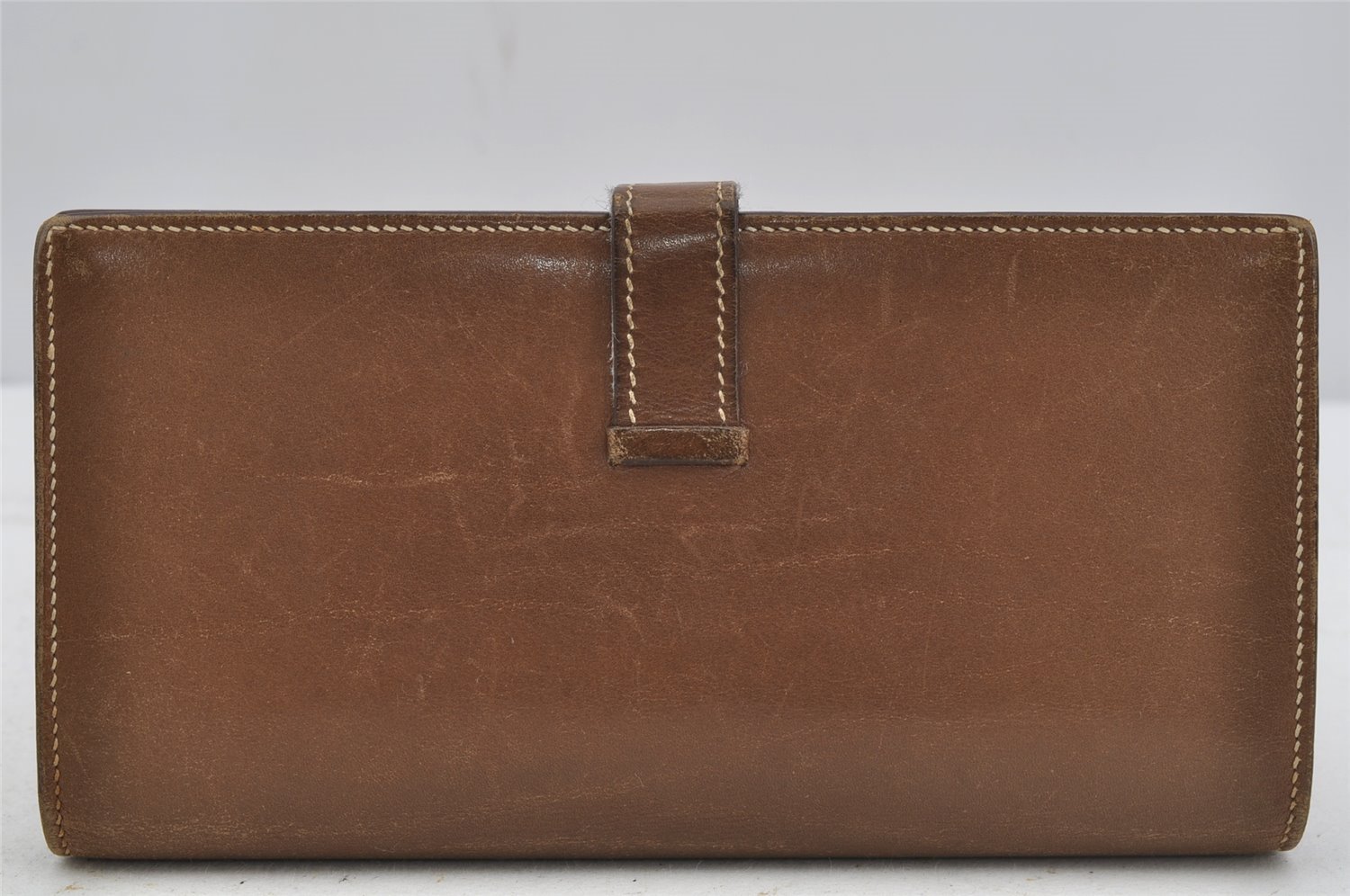 | Authentic HERMES Bearn Soufflet Leather Long Wallet Purse Brown Box | |