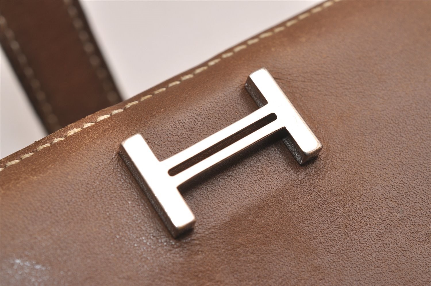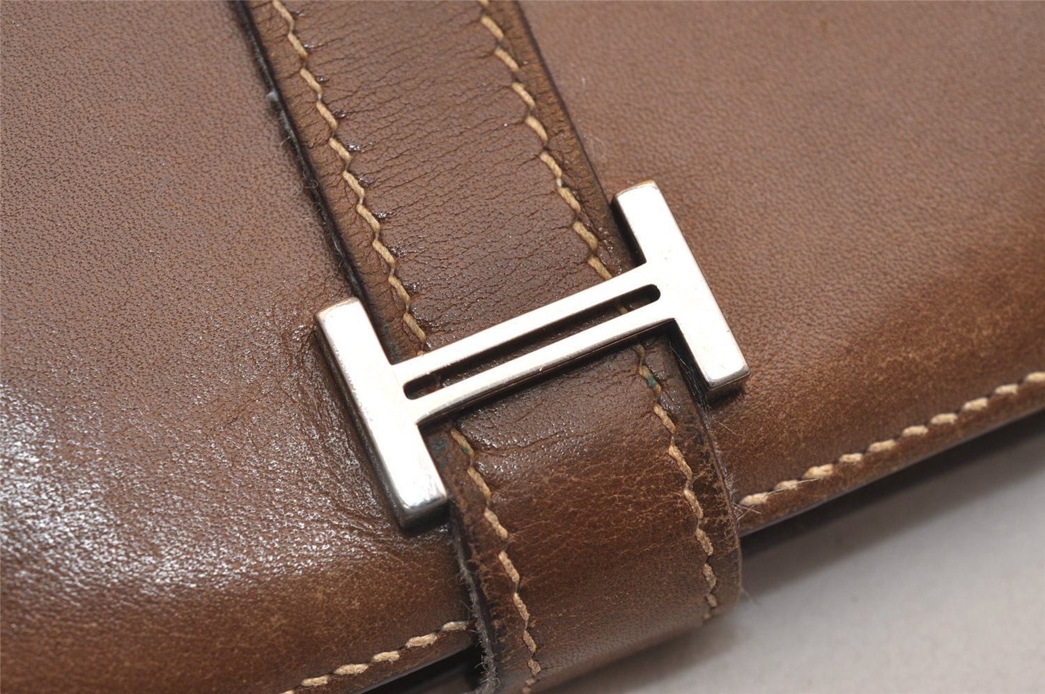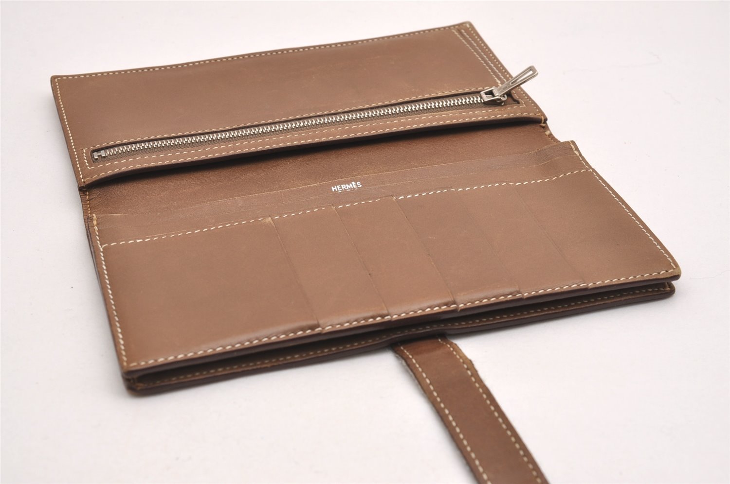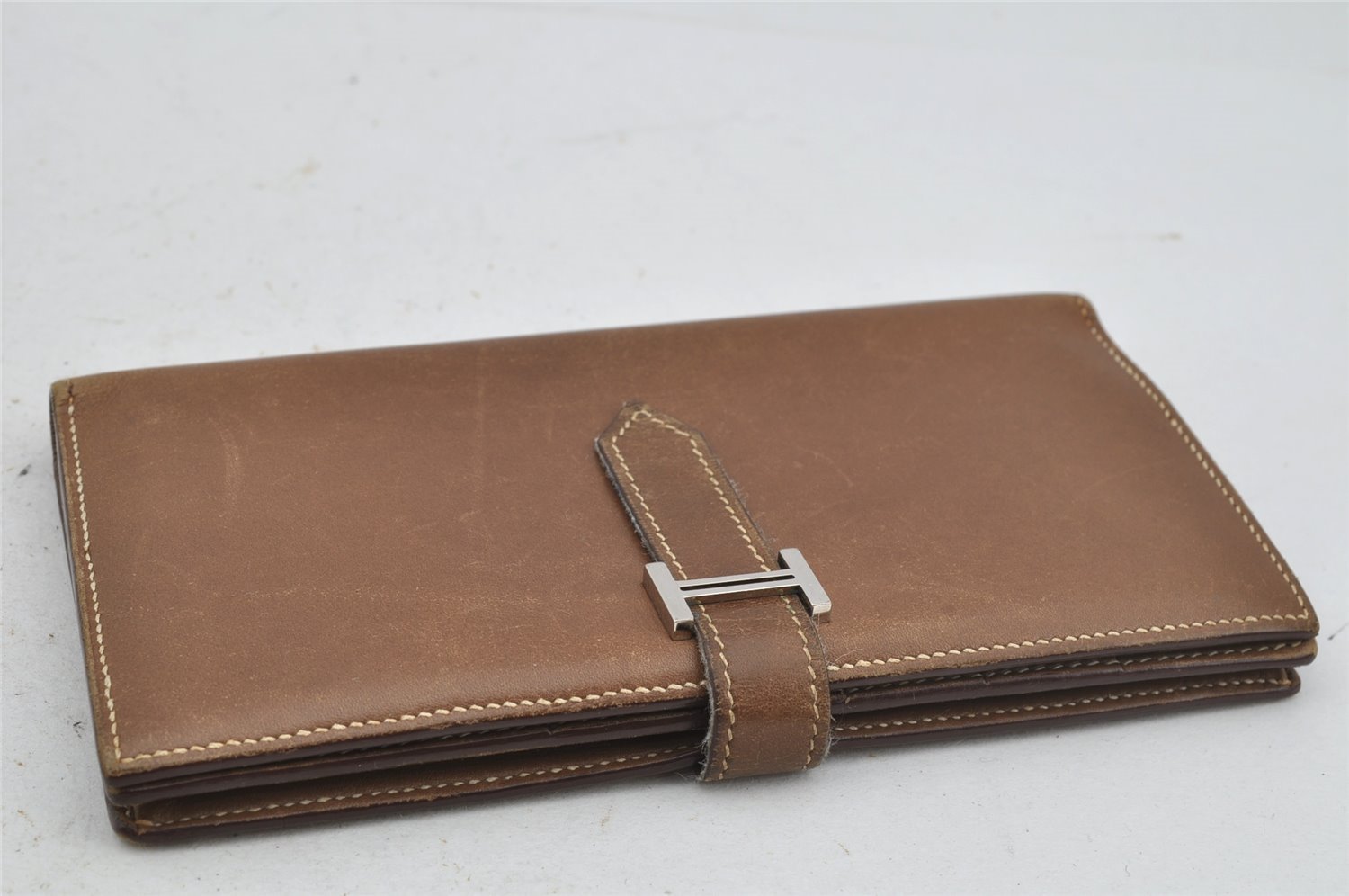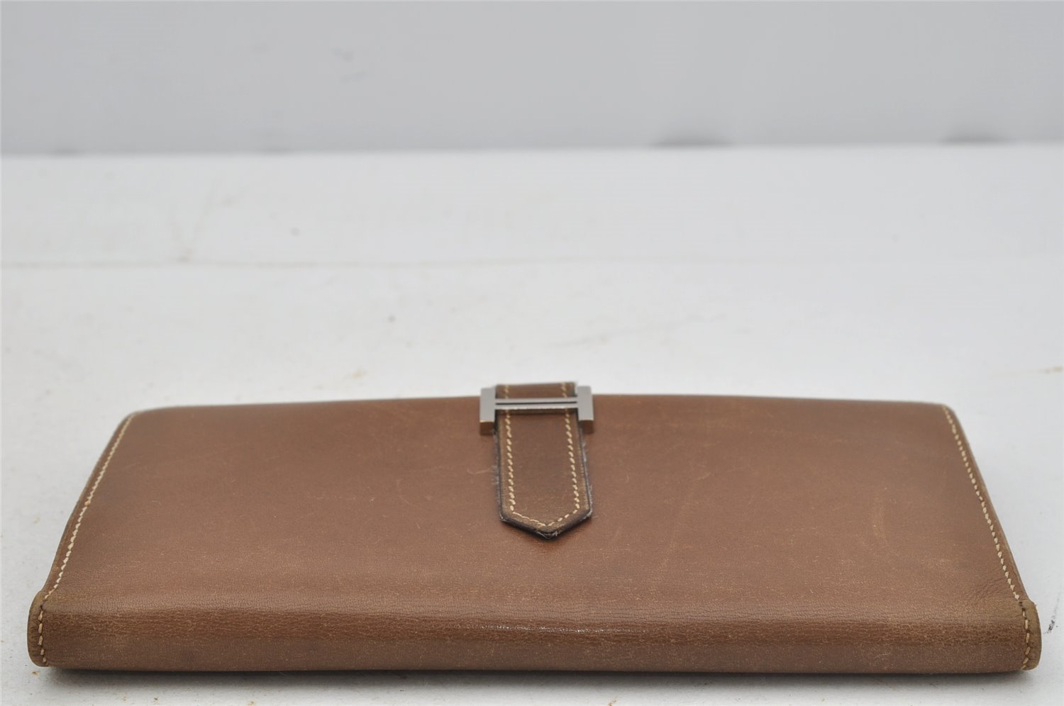 | Authentic HERMES Bearn Soufflet Leather Long Wallet Purse Brown Box | |