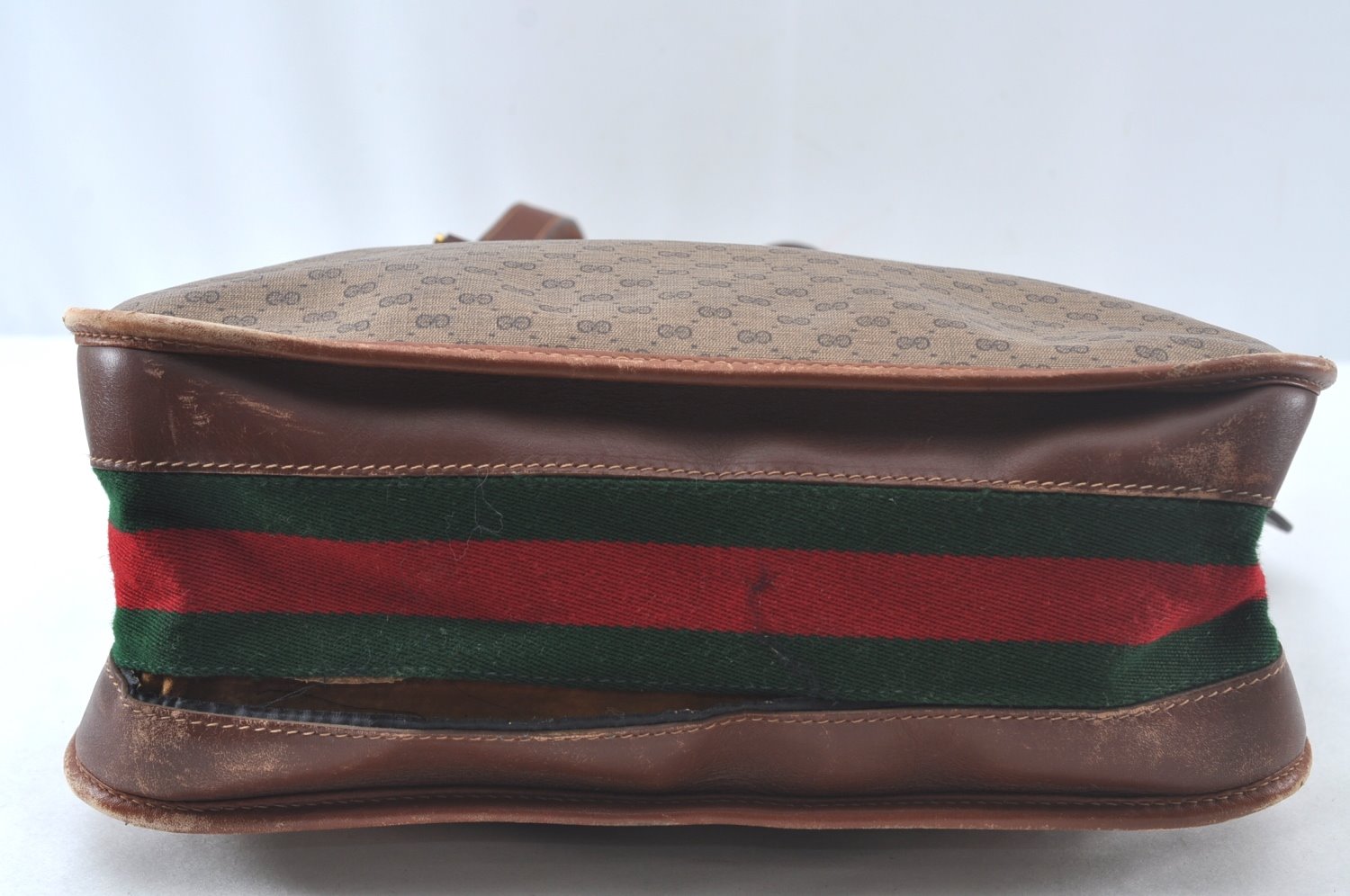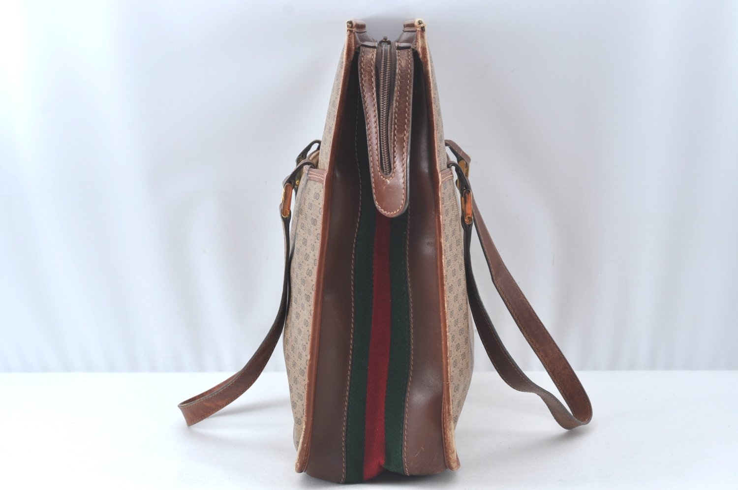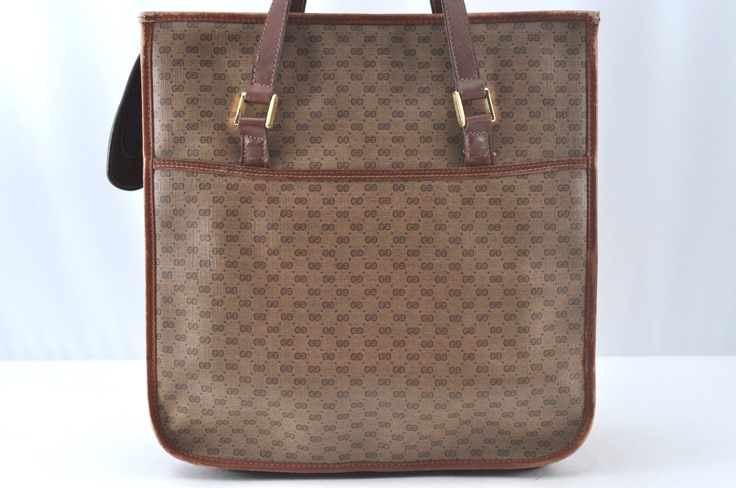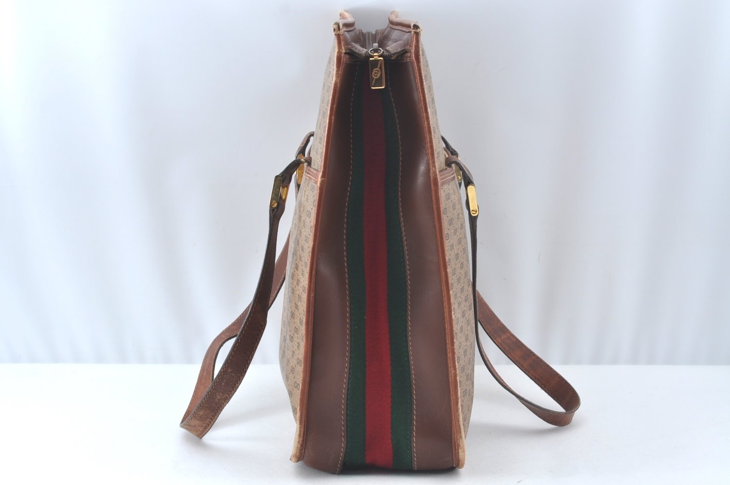 | Authentic GUCCI Web Sherry Line Micro GG Tote Bag PVC Leather Brown Junk | |