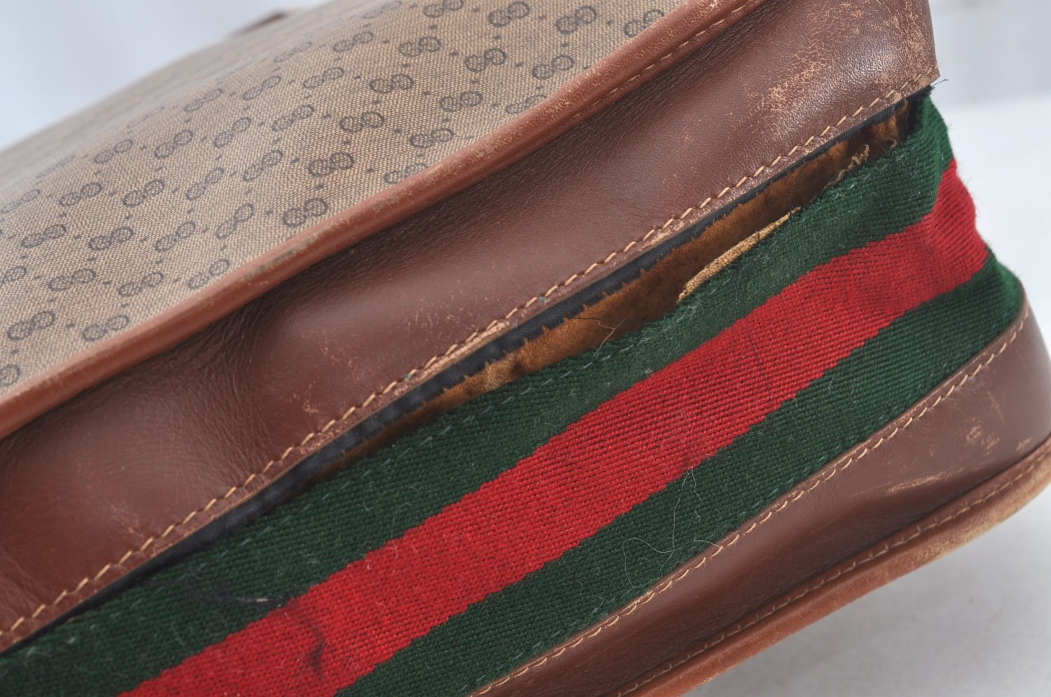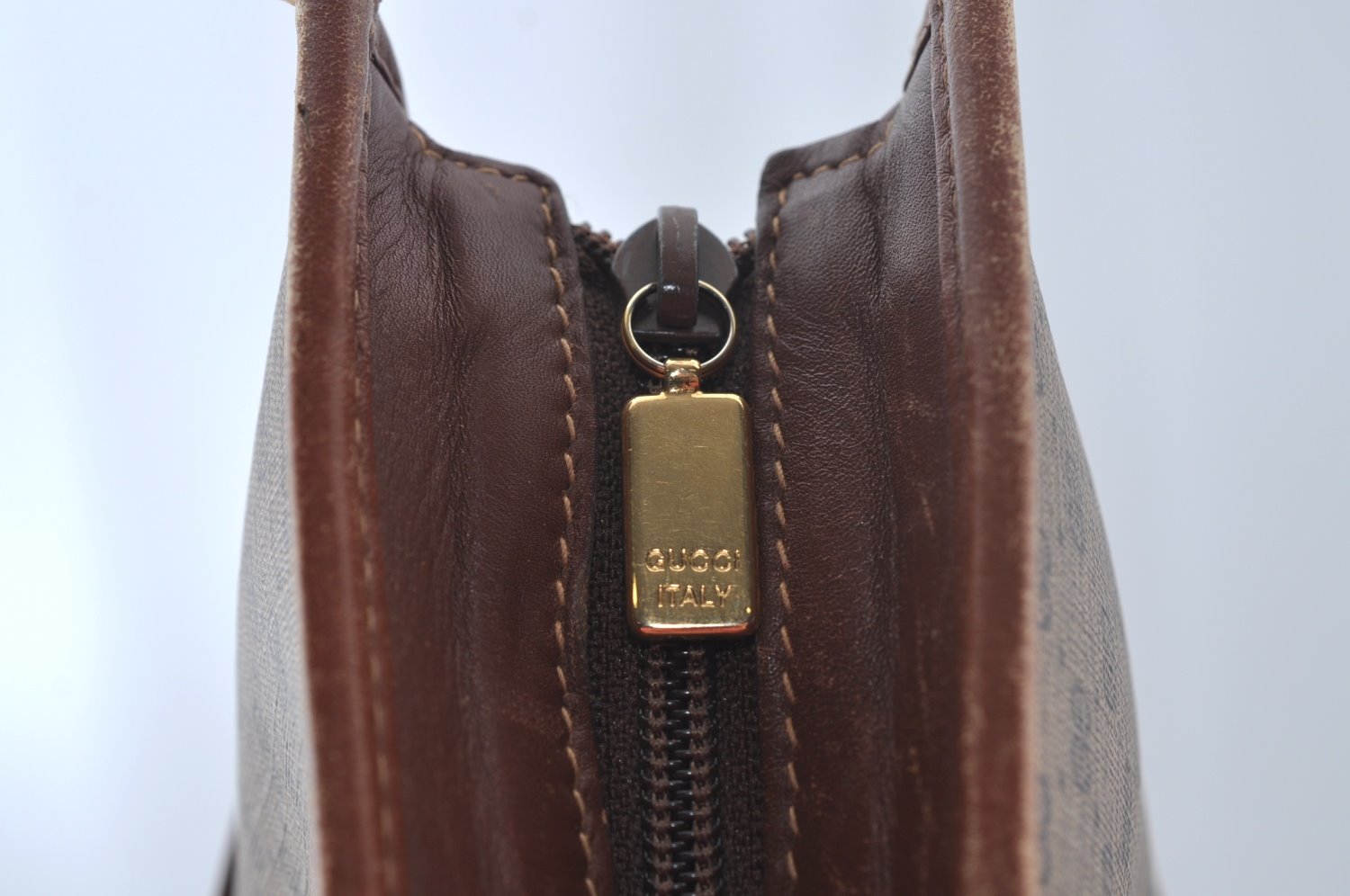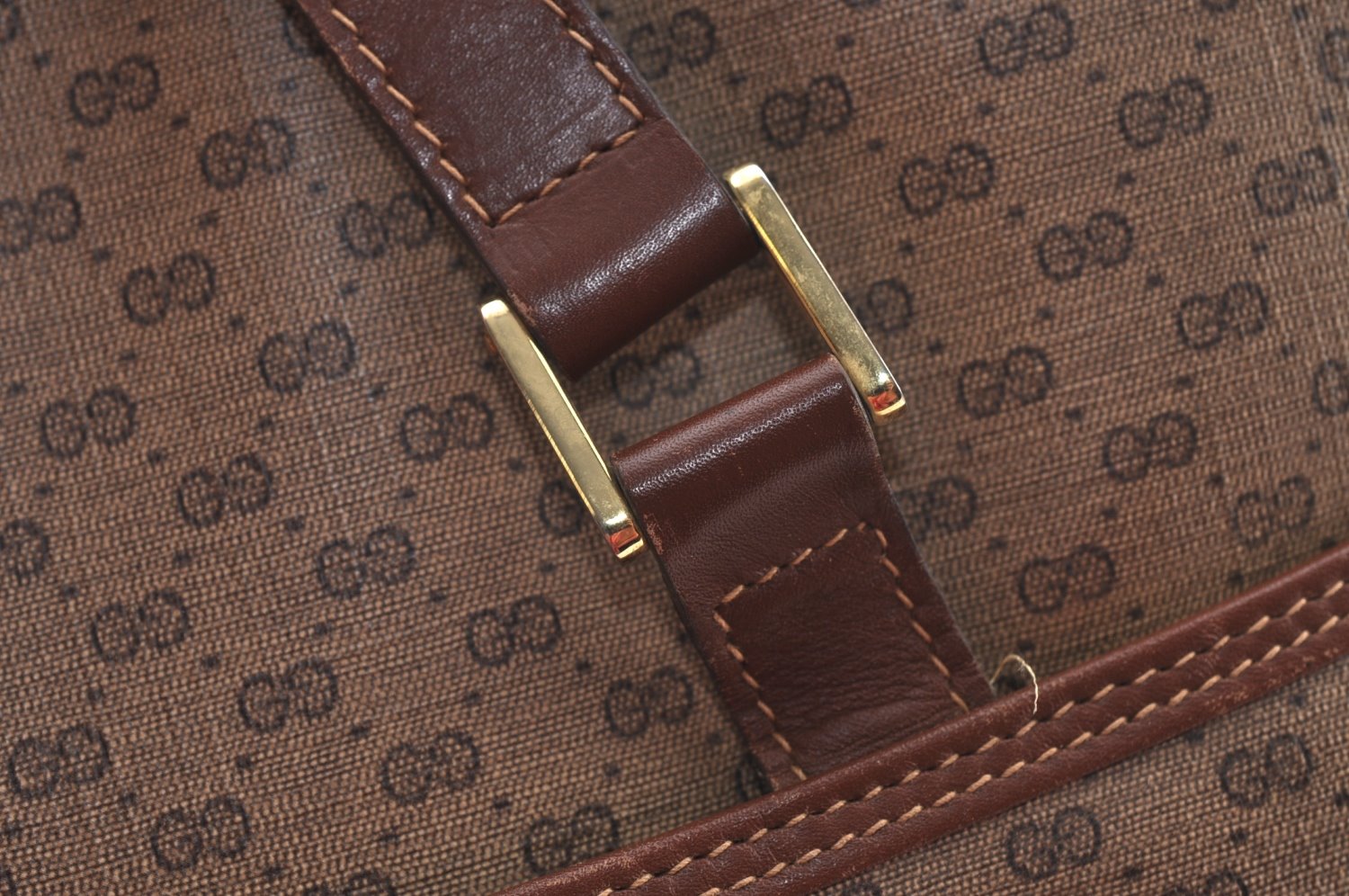 | Authentic GUCCI Web Sherry Line Micro GG Tote Bag PVC Leather Brown Junk | |