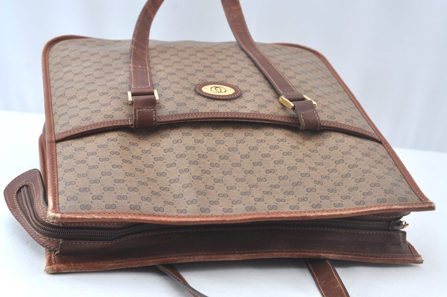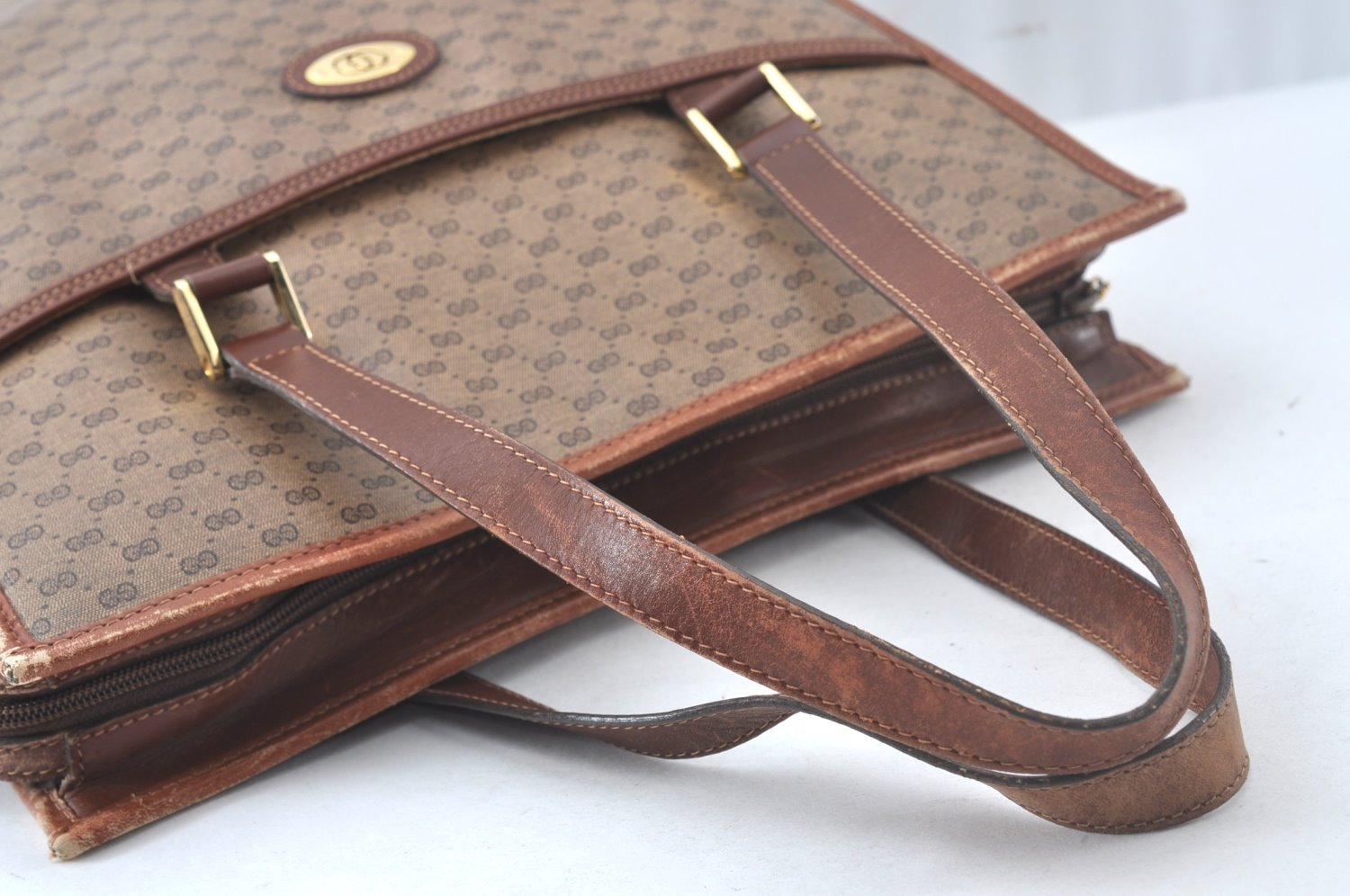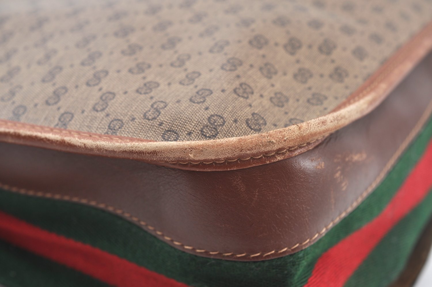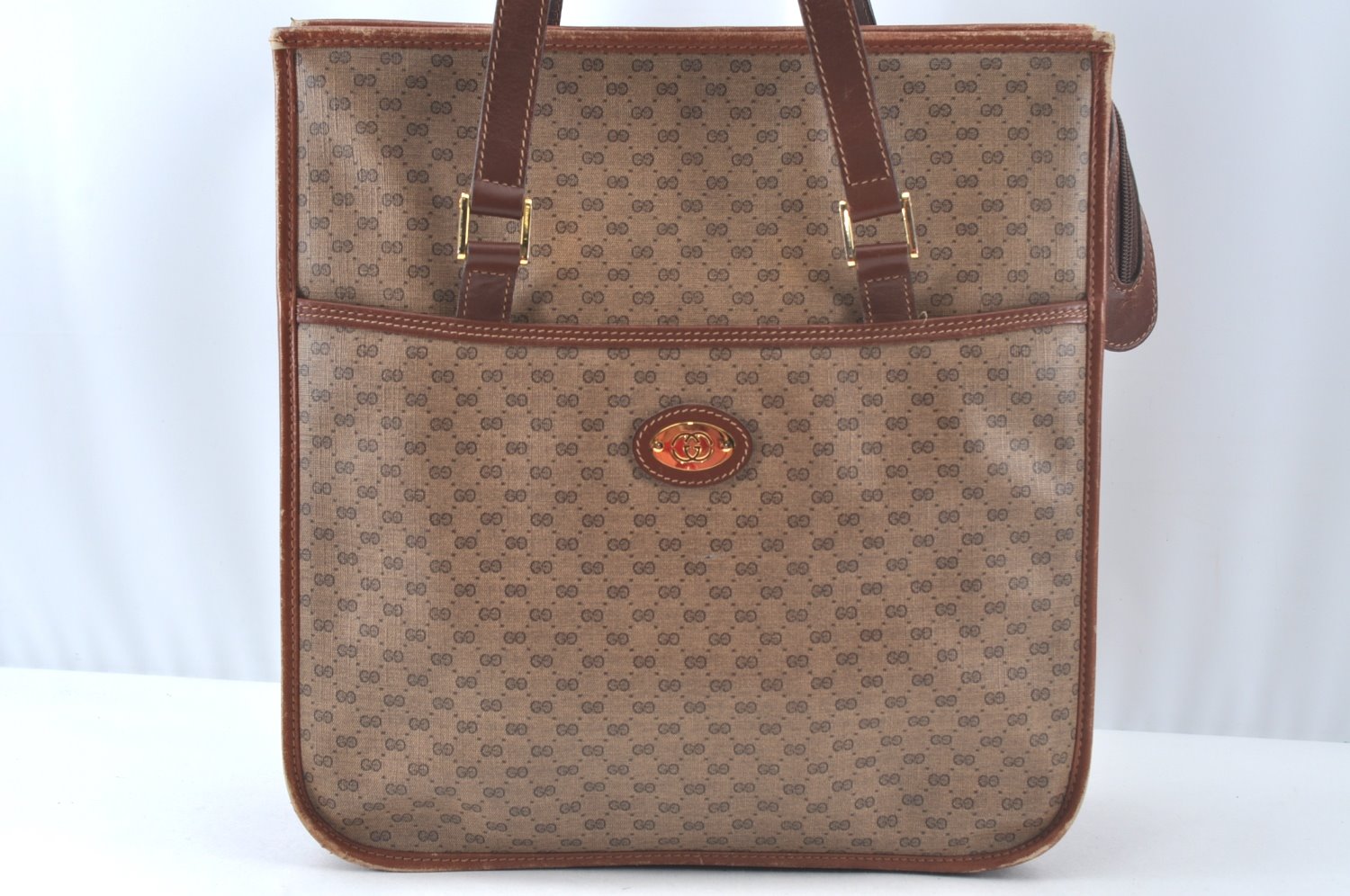 | Authentic GUCCI Web Sherry Line Micro GG Tote Bag PVC Leather Brown Junk | |