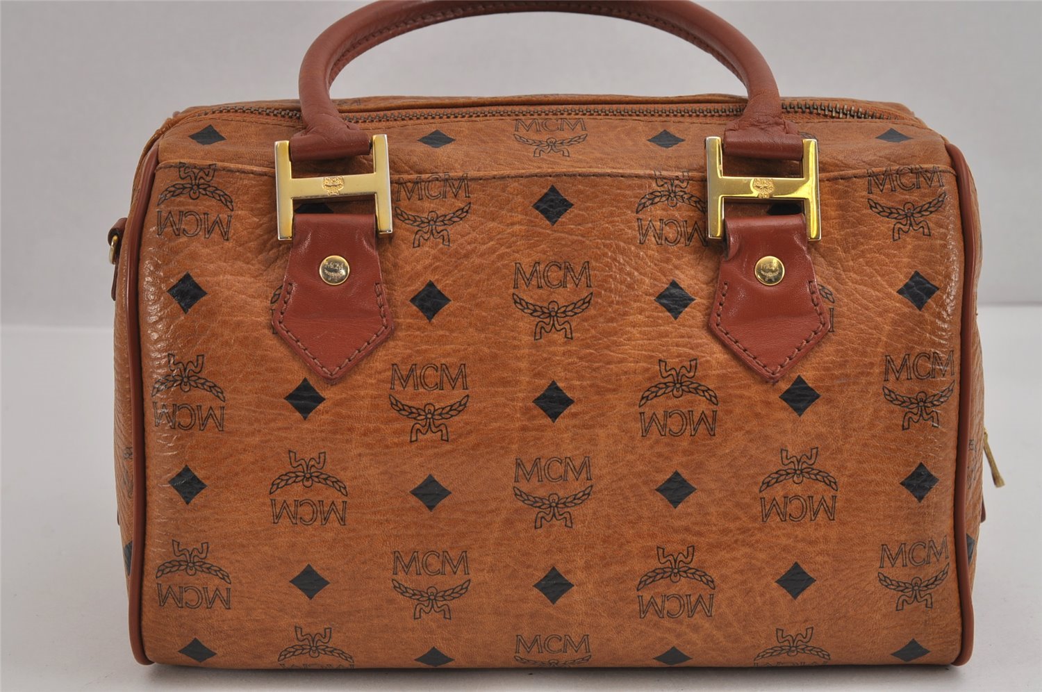 | Authentic MCM Visetos Leather Vintage 2Way Shoulder Hand Bag Purse Brown | |