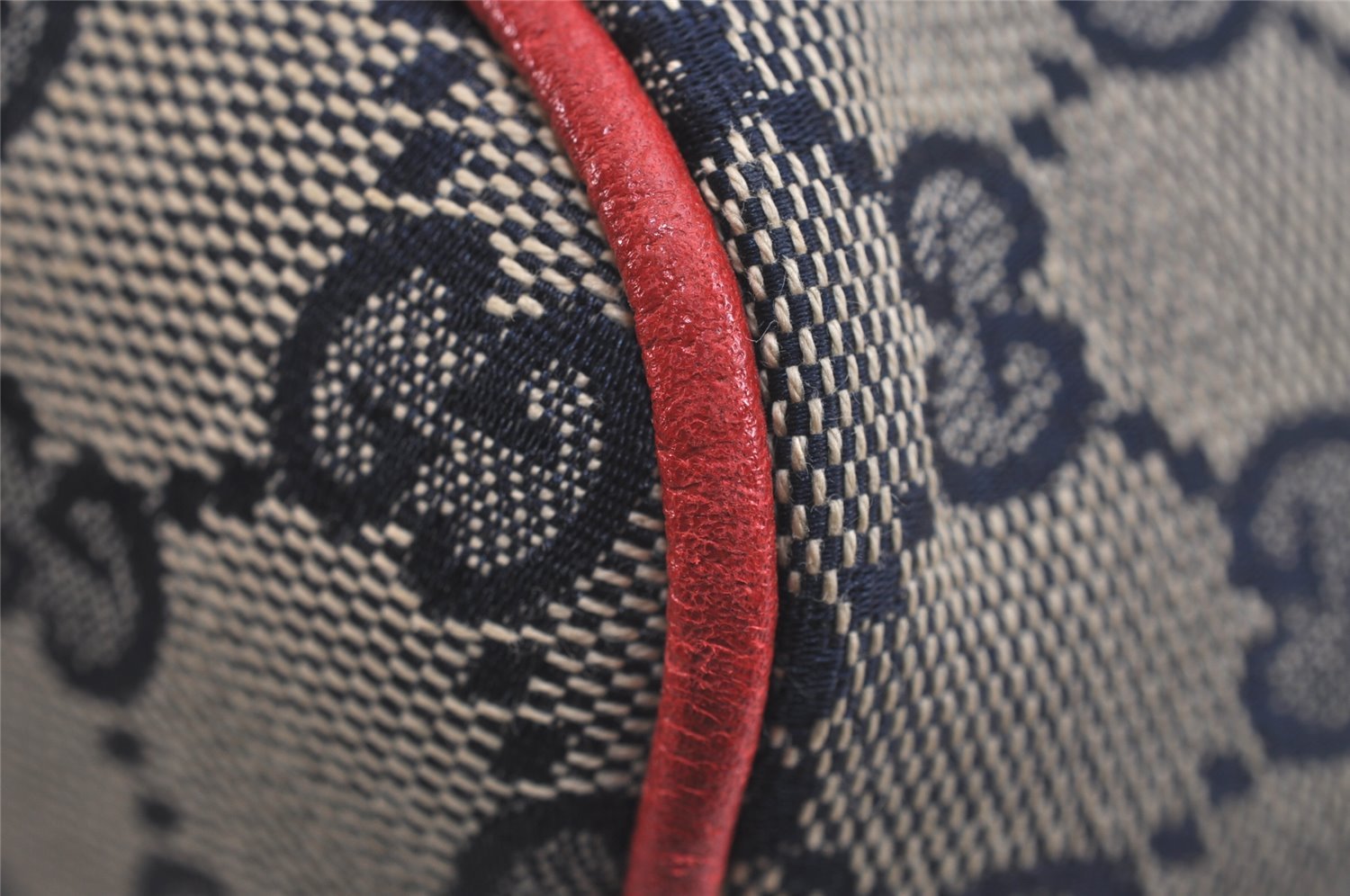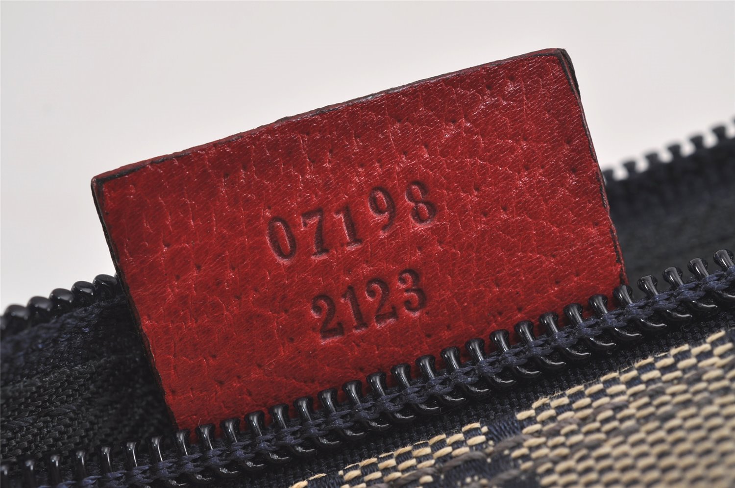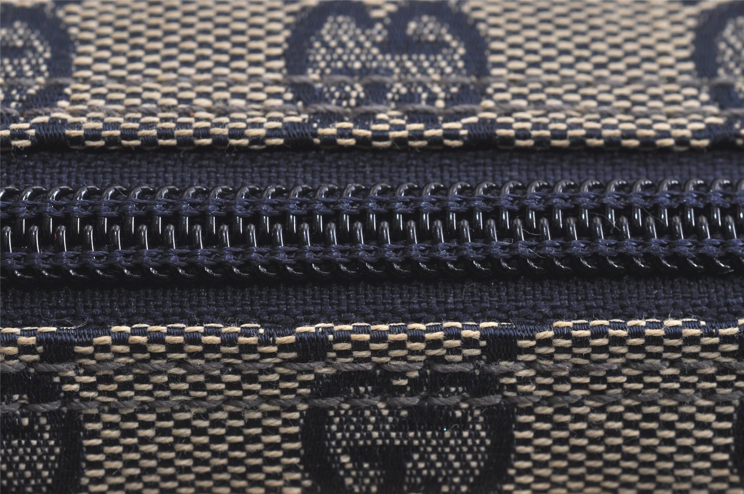| Authentic GUCCI Hand Bag Pouch Purse GG Canvas Leather 07198 Navy Blue | |