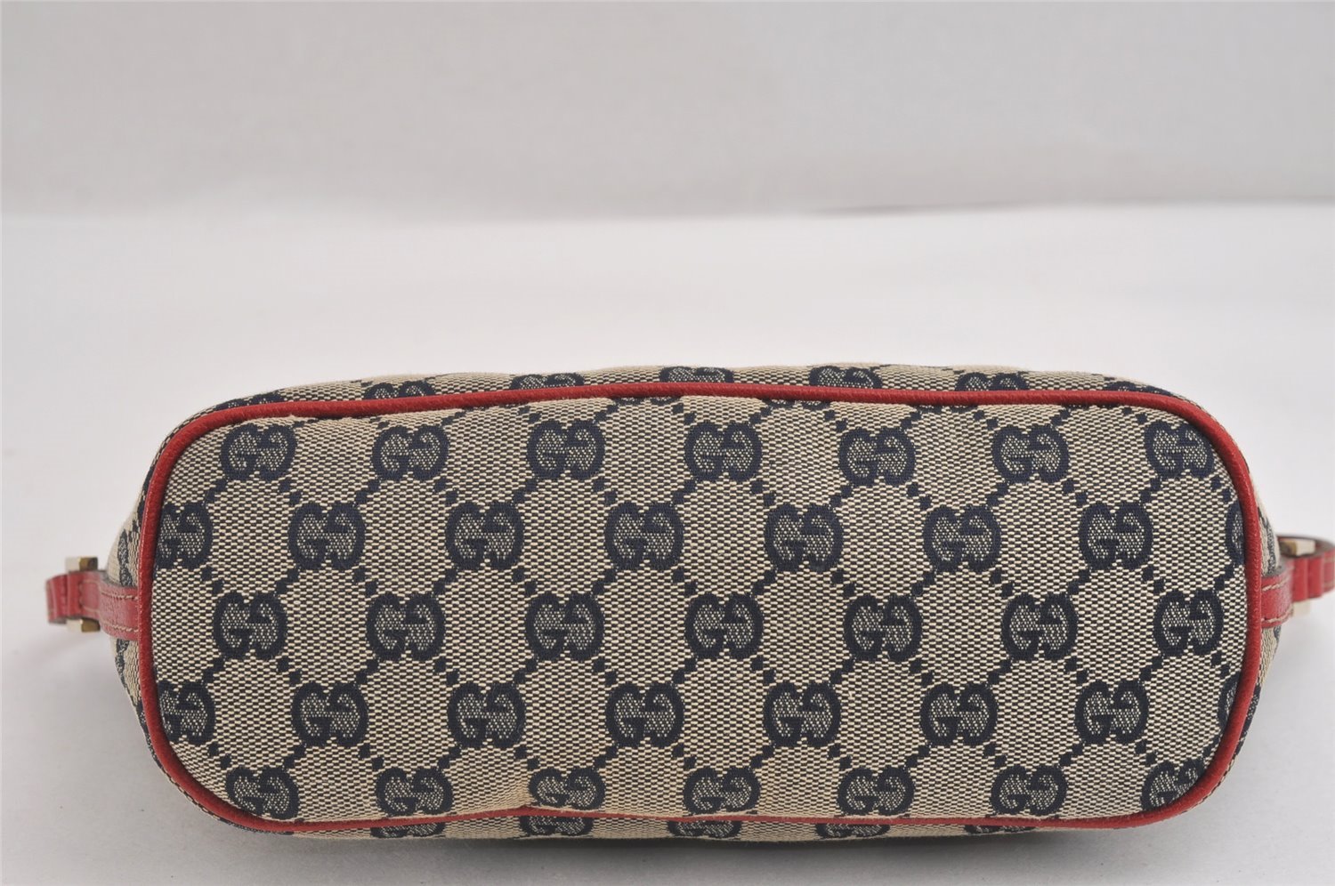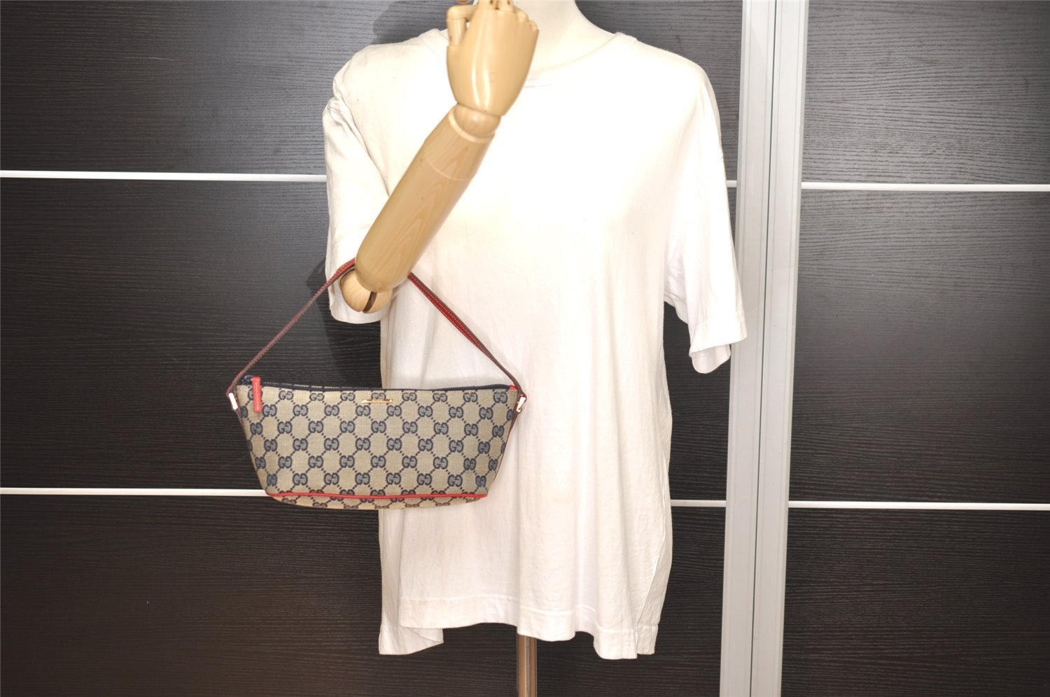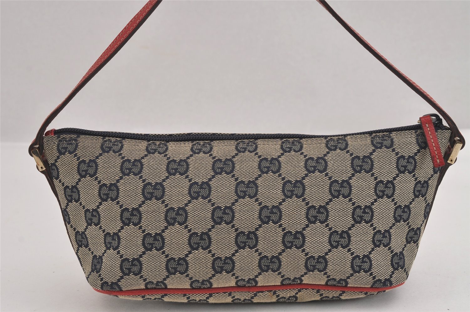 | Authentic GUCCI Hand Bag Pouch Purse GG Canvas Leather 07198 Navy Blue | |
