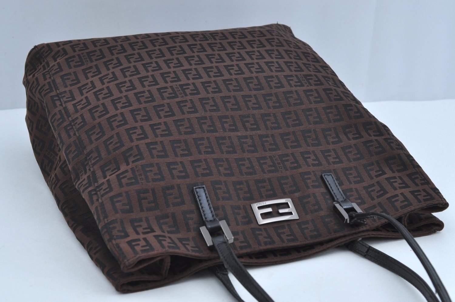 | Authentic FENDI Zucchino Shoulder Tote Bag Purse Canvas Leather Brown Junk | |
