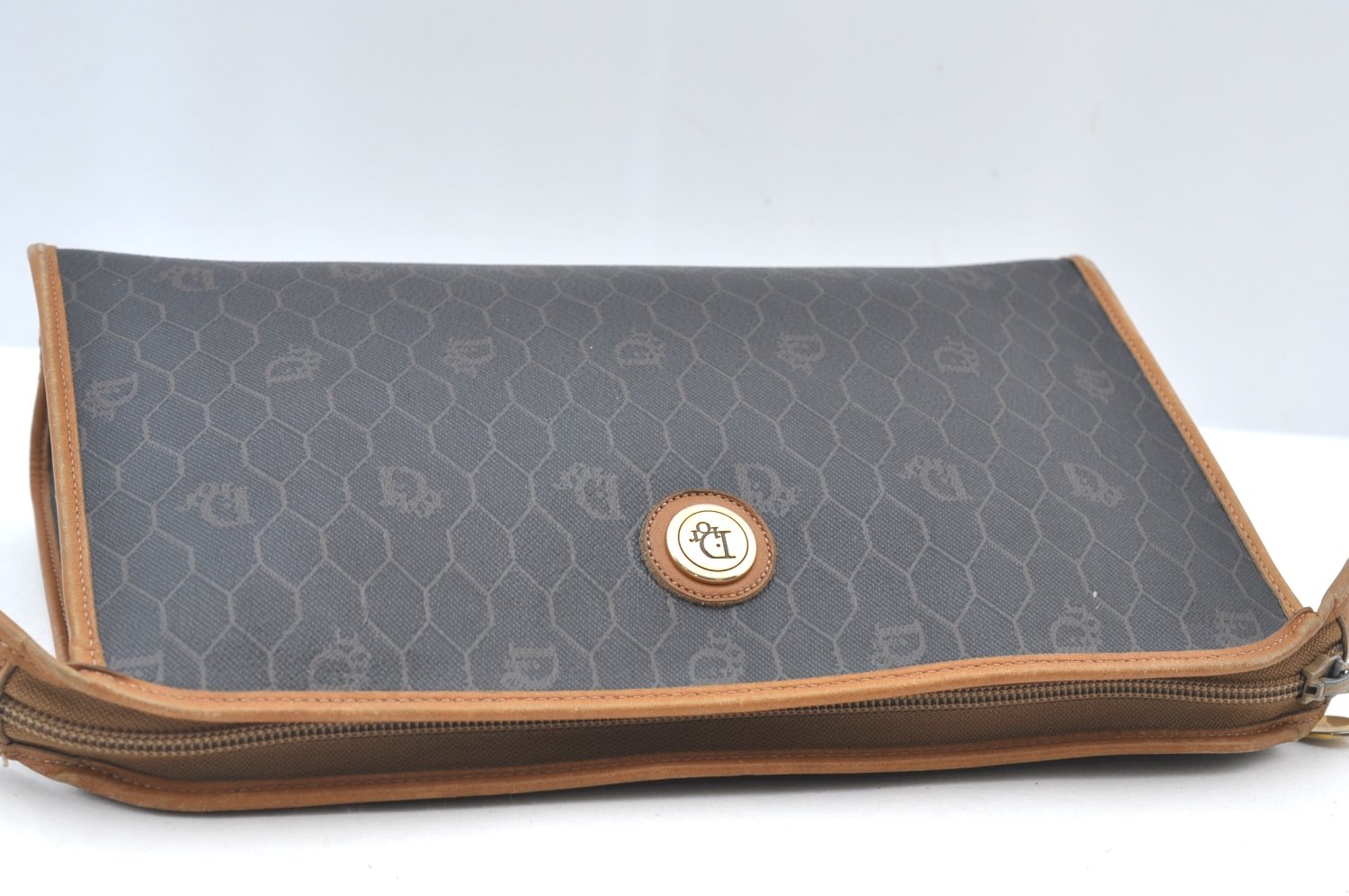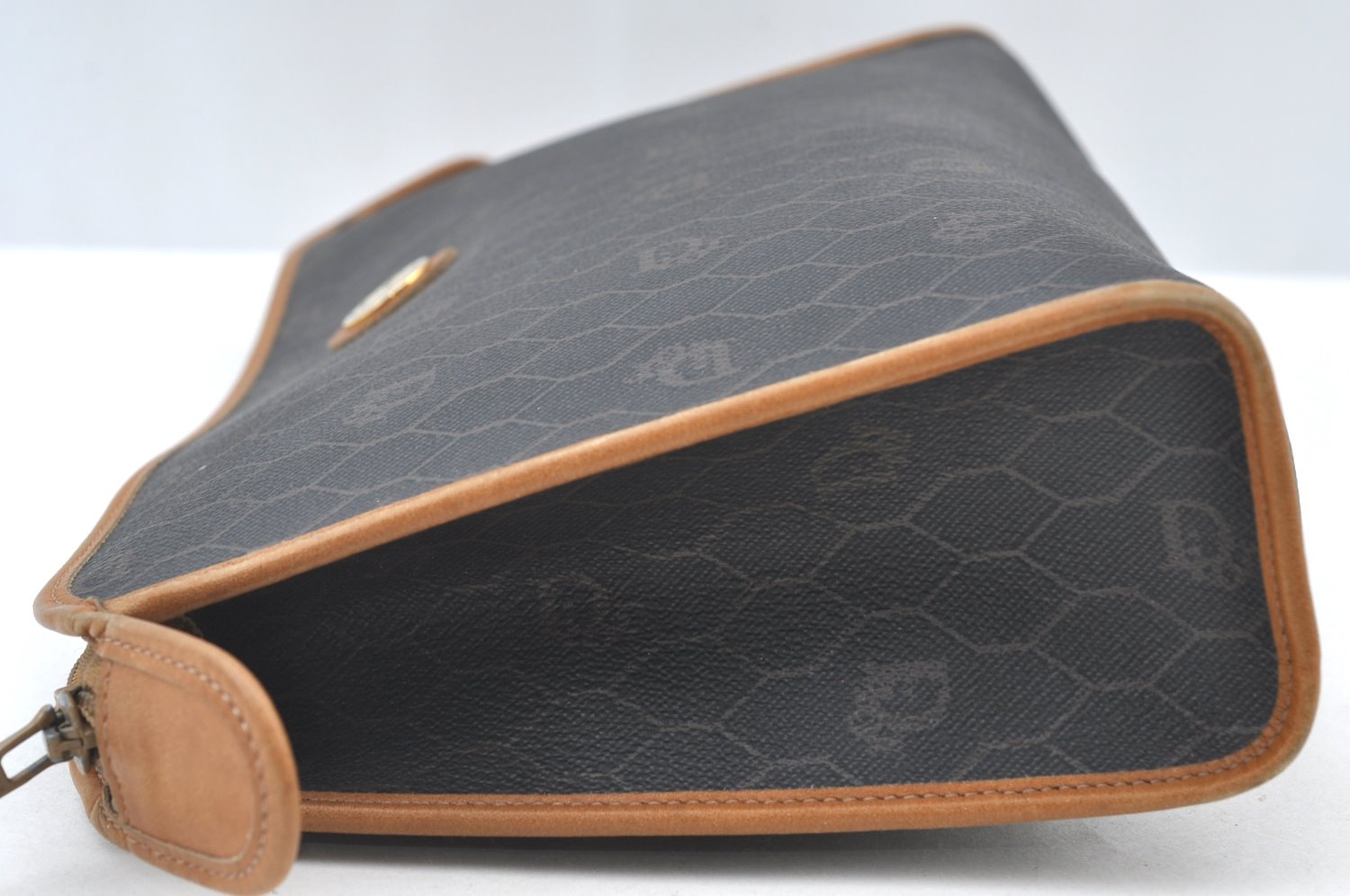 | Auth Christian Dior Honeycomb Clutch Hand Bag Purse PVC Leather Black CD | |