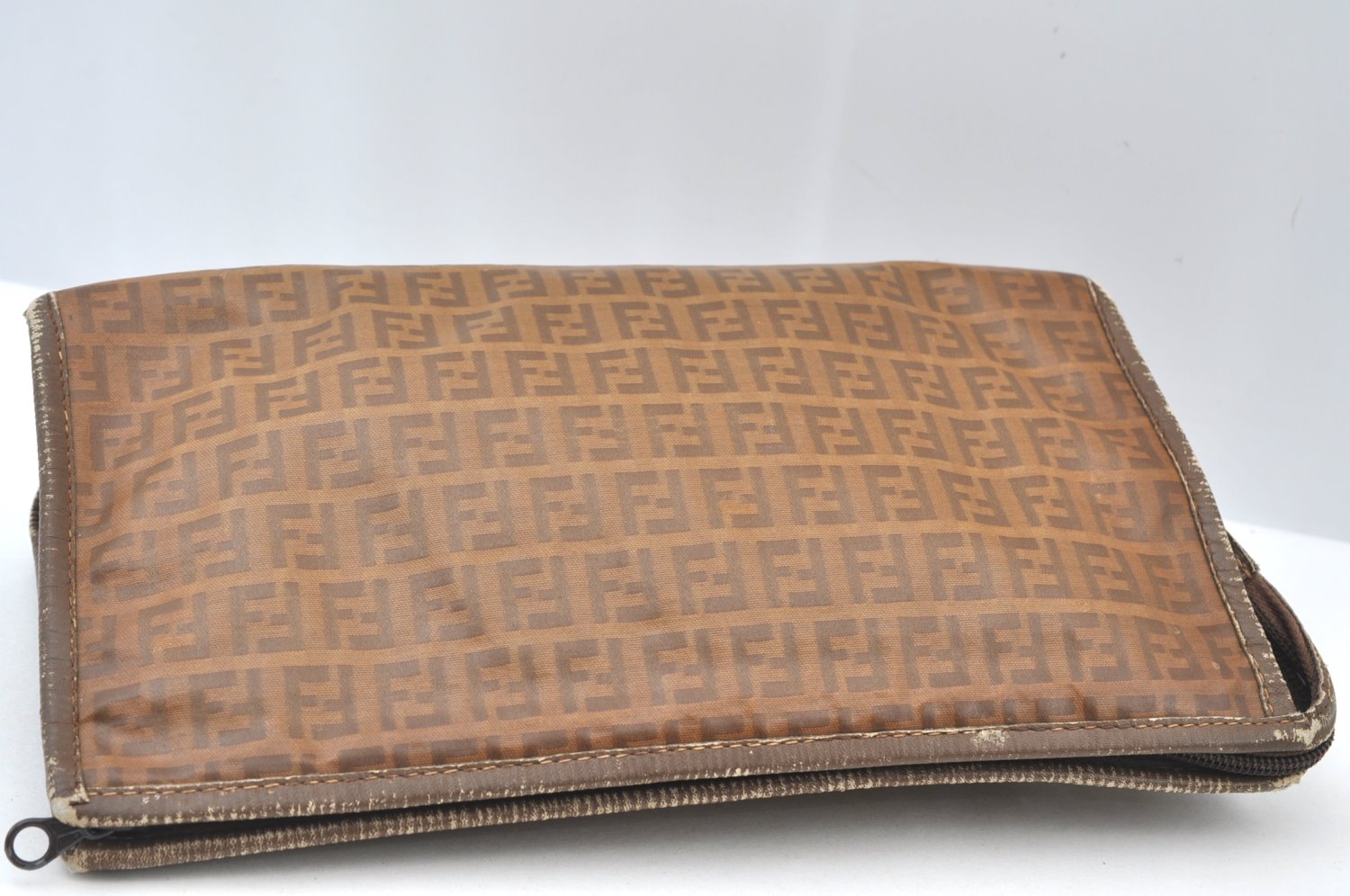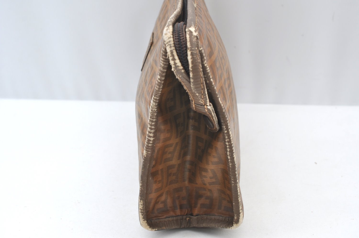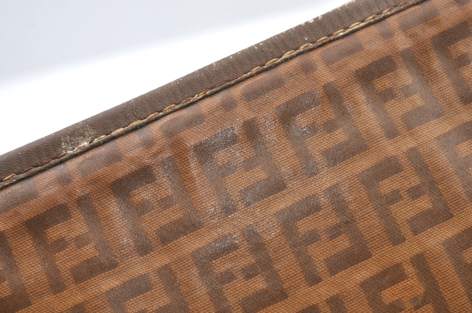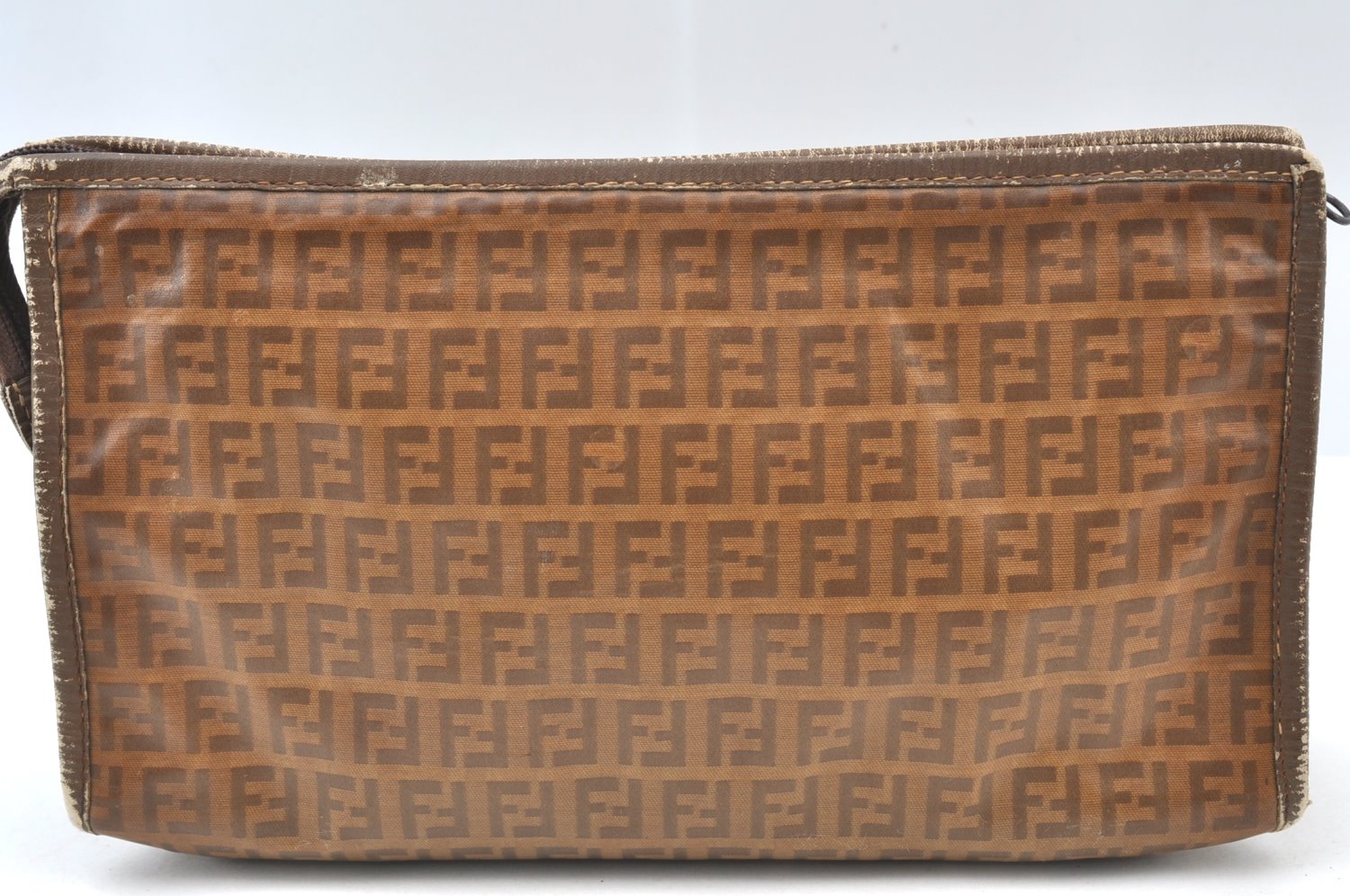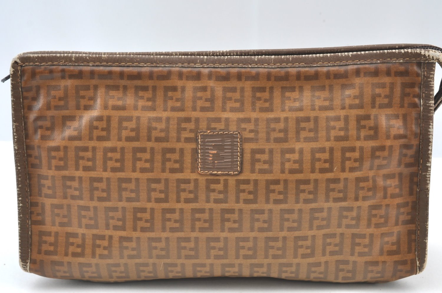 | Authentic FENDI Vintage Zucchino Clutch Hand Bag Purse PVC Leather Brown | |