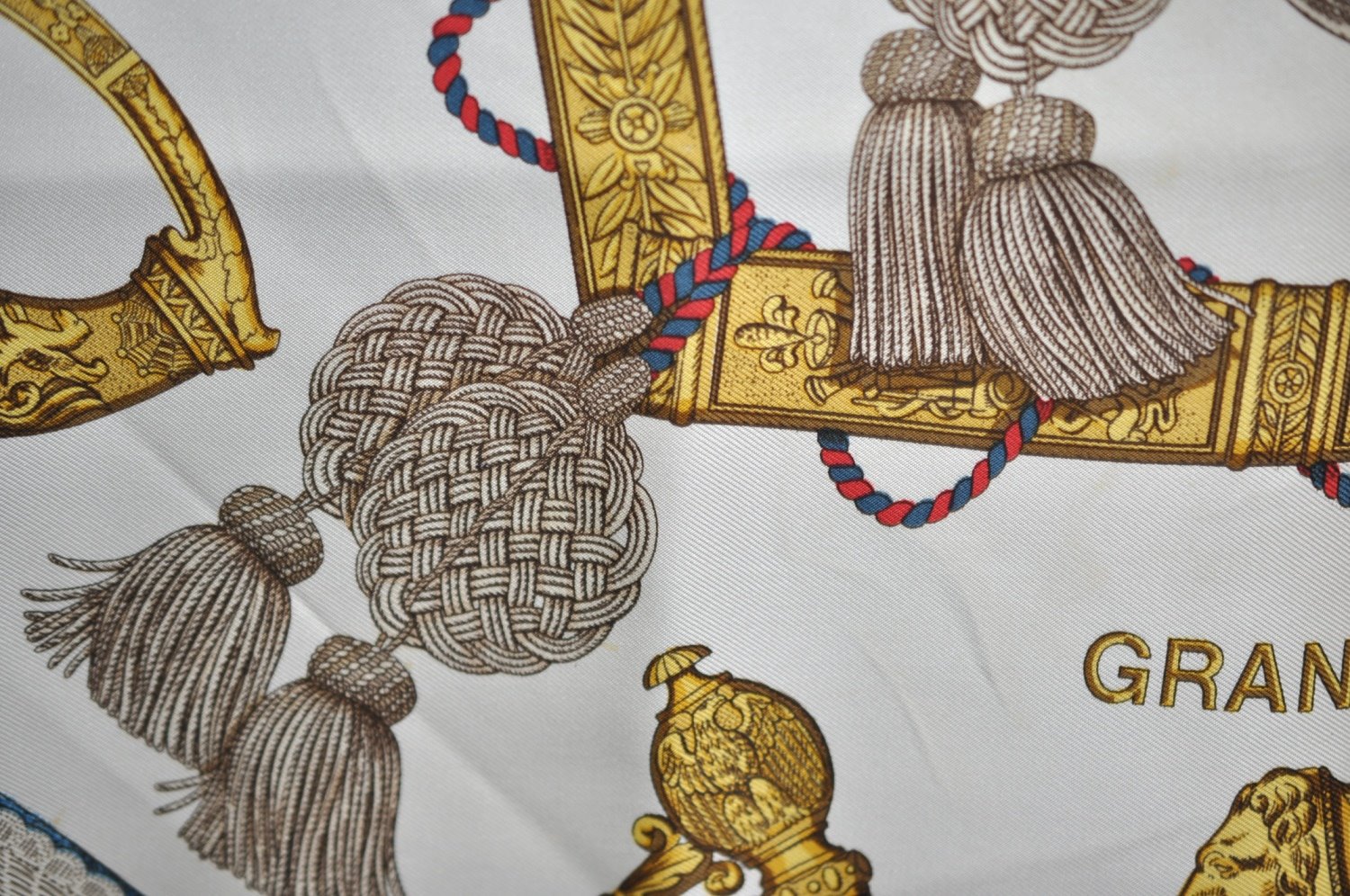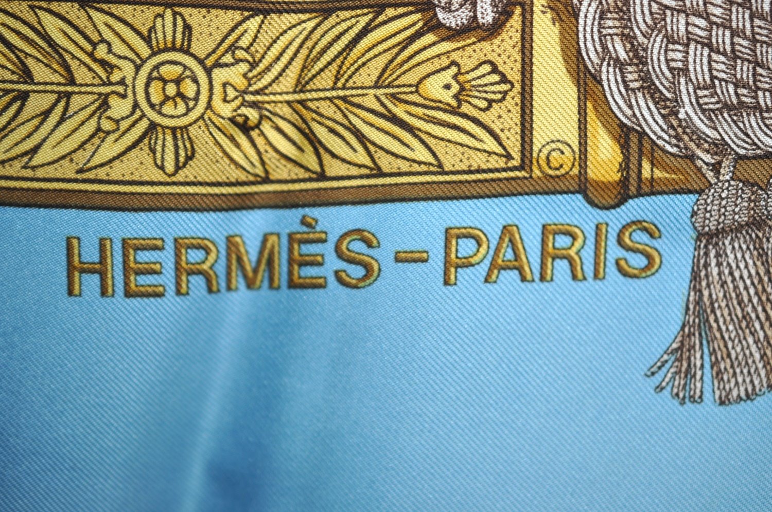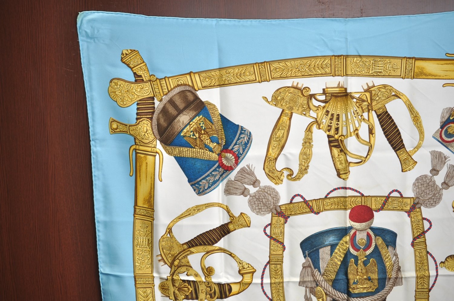 | Authentic HERMES Carre 90 Scarf "GRAND UNIFORME" Silk Light Blue | |