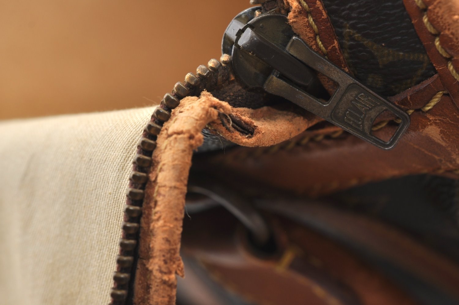 | Others | This item is old model so zipper was made in ECLAIR.Outside leather part is torn. |