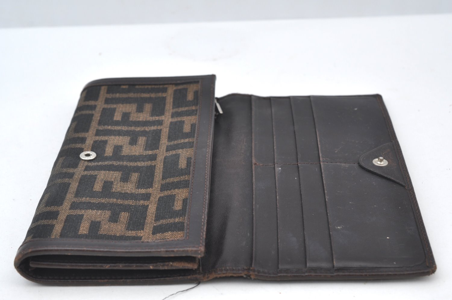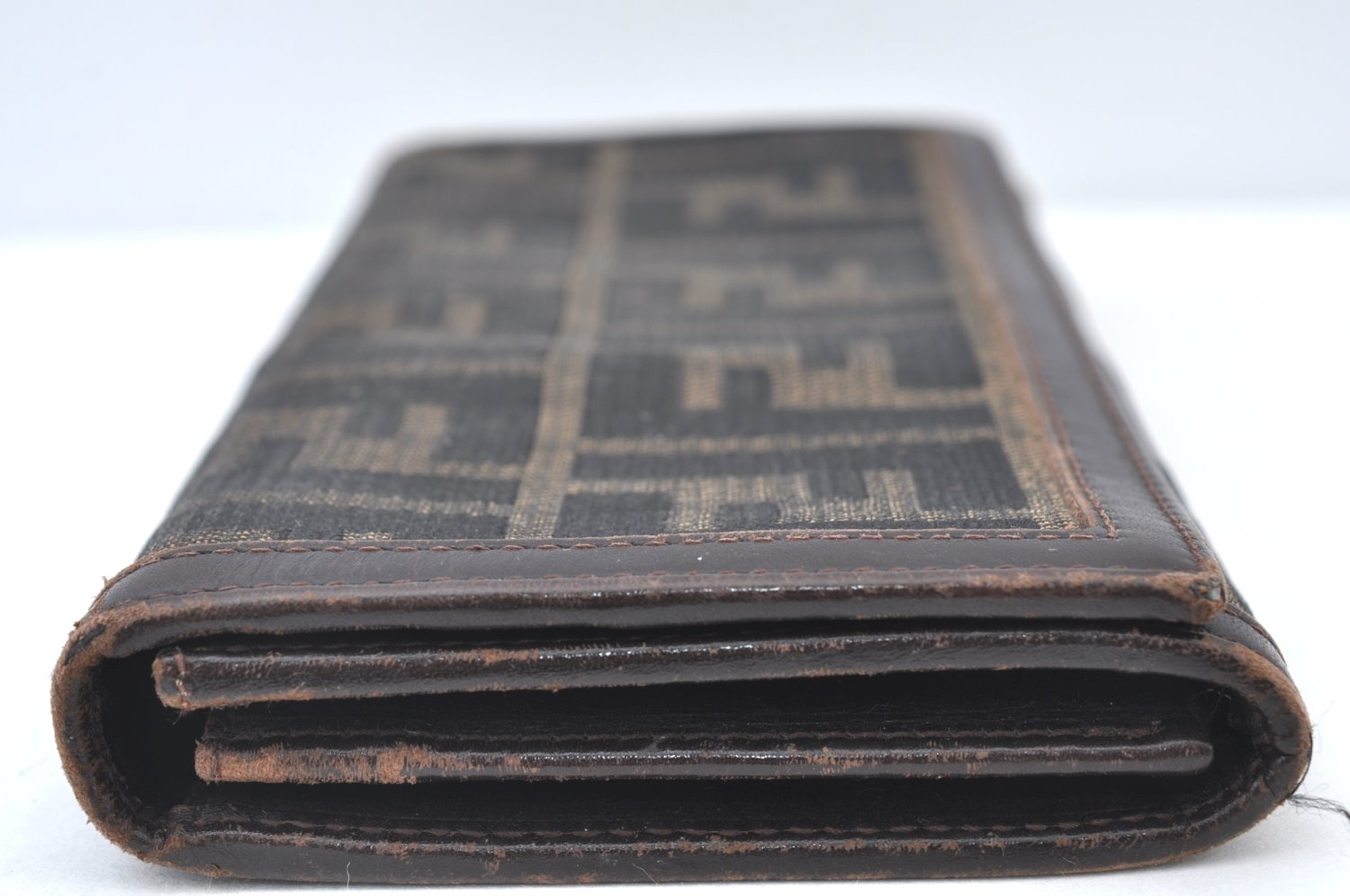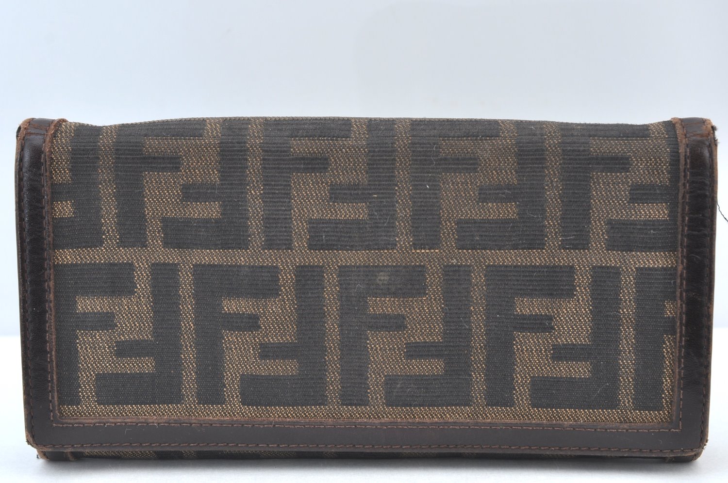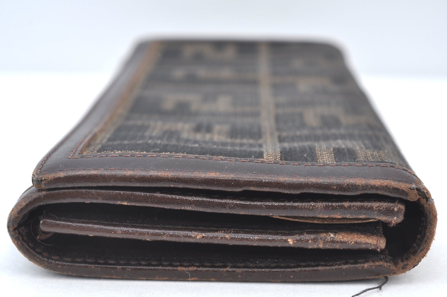 | Authentic FENDI Zucca Long Wallet Purse Canvas Leather Brown | |